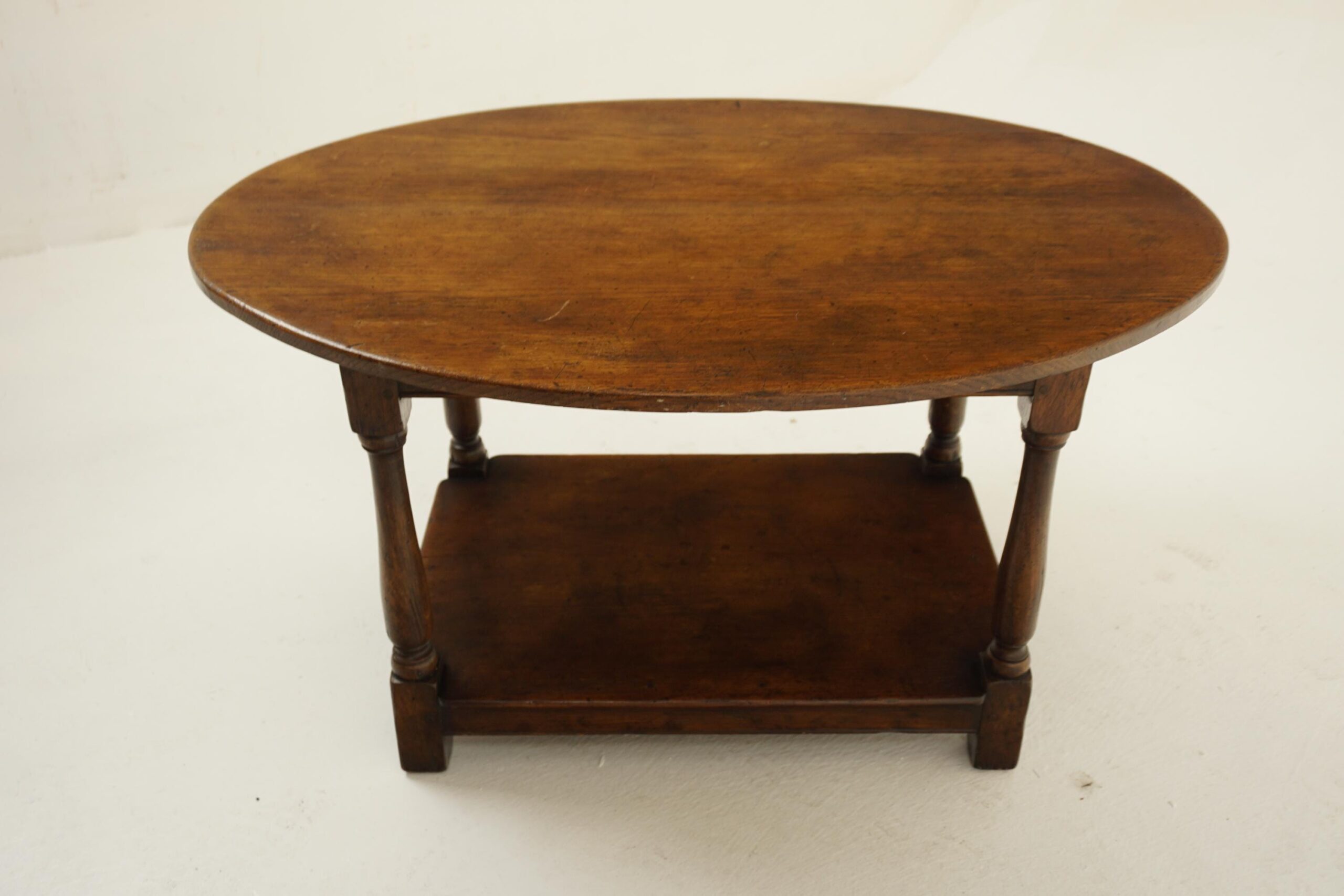18th Century Style Oak Oval Coffee Table, Pegged- Scotland 1950 F-1308