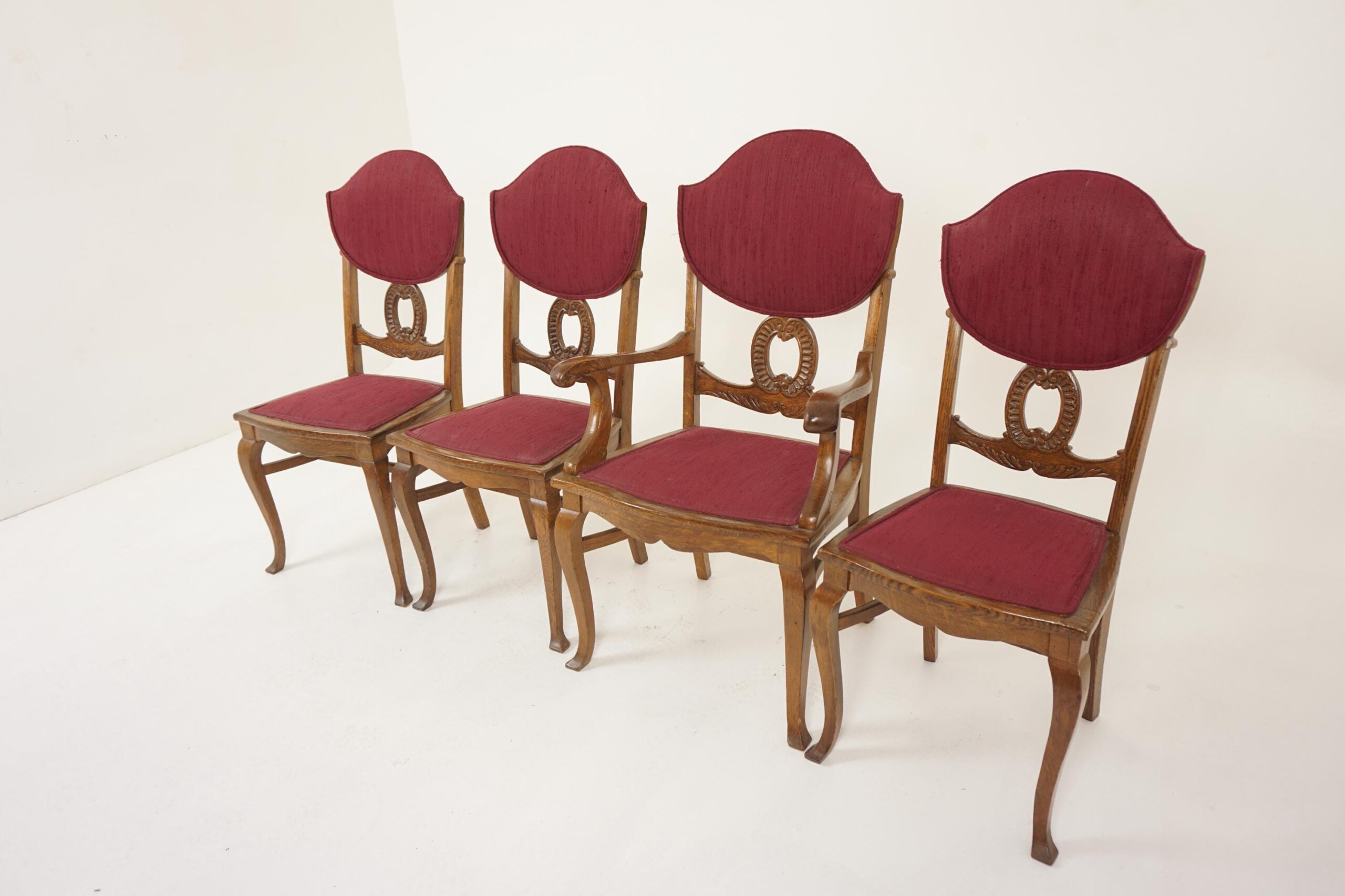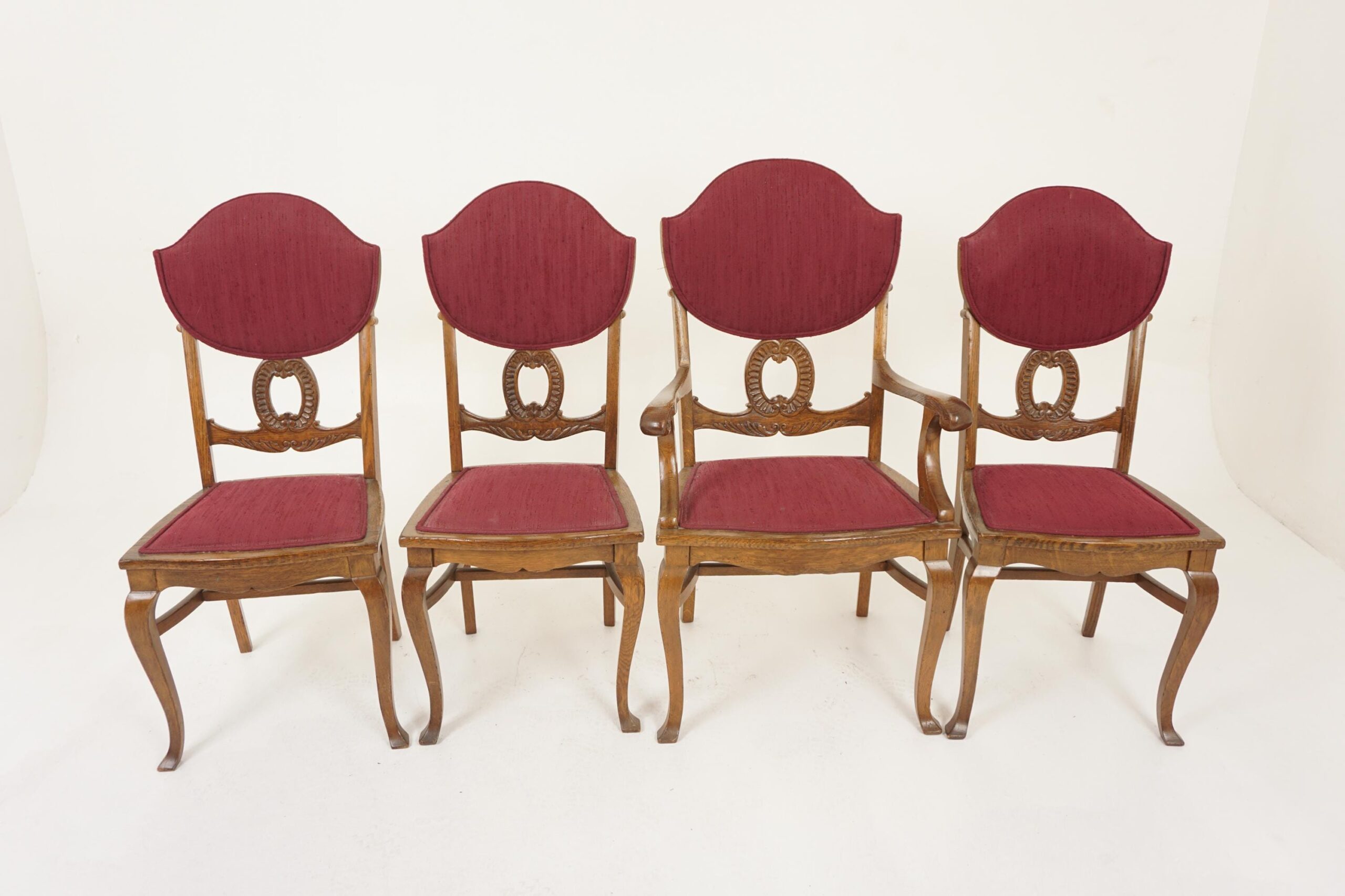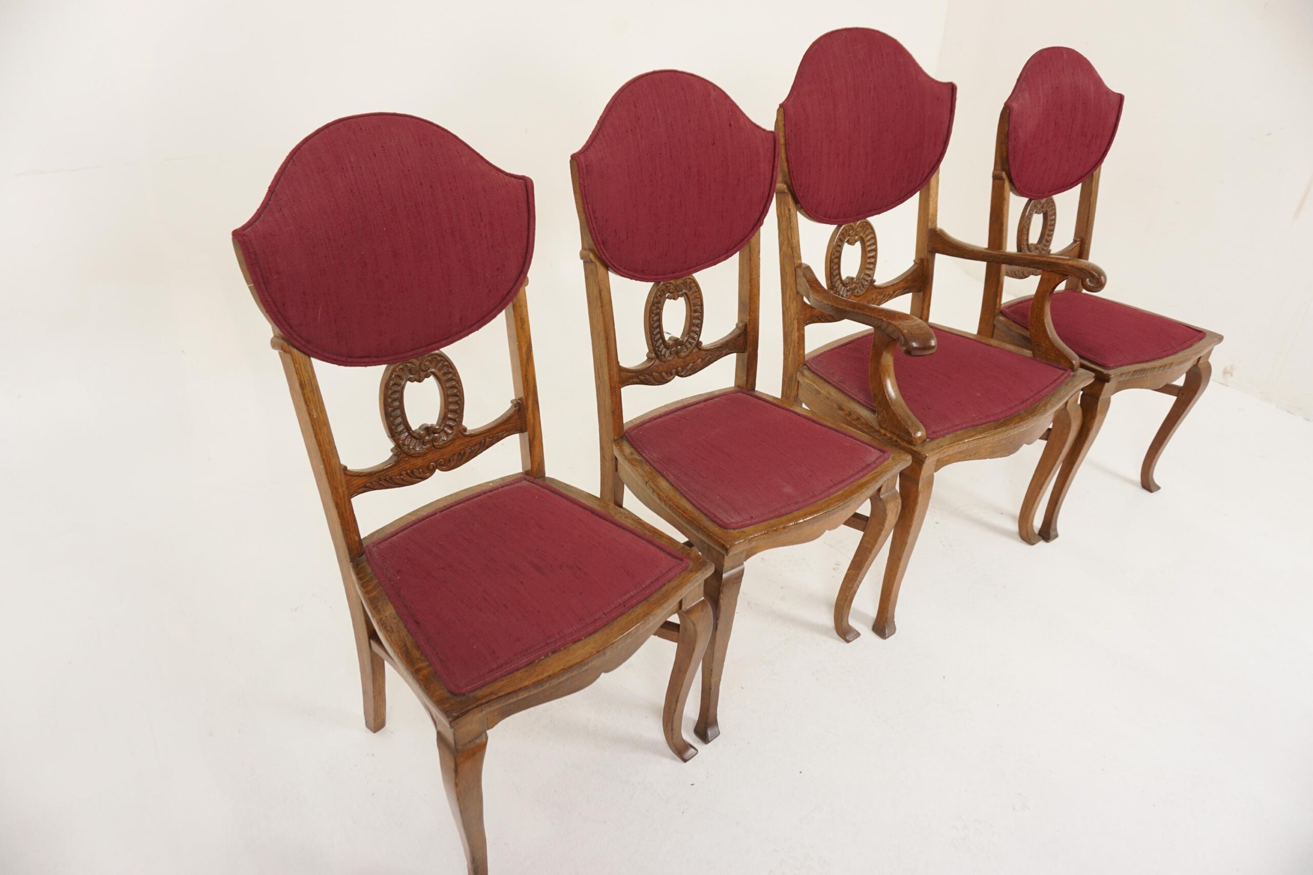 4 Antique Tiger Oak American Dining Chairs, Upholstered Seats, 3 + 1, America 1910, H1198