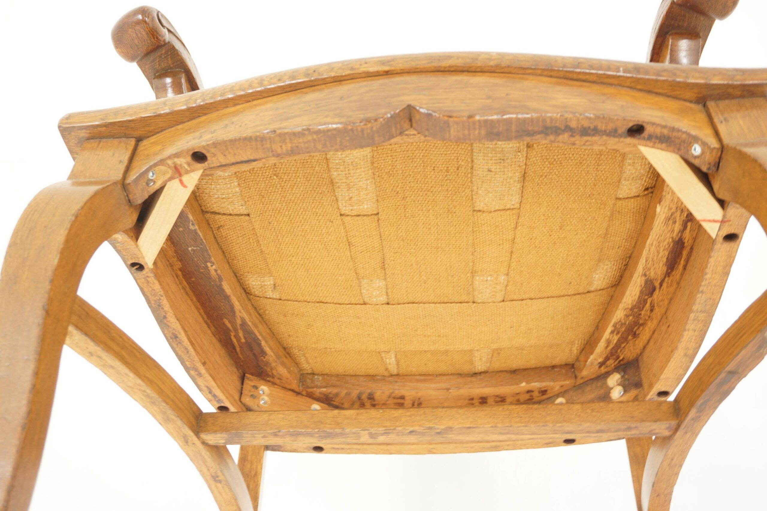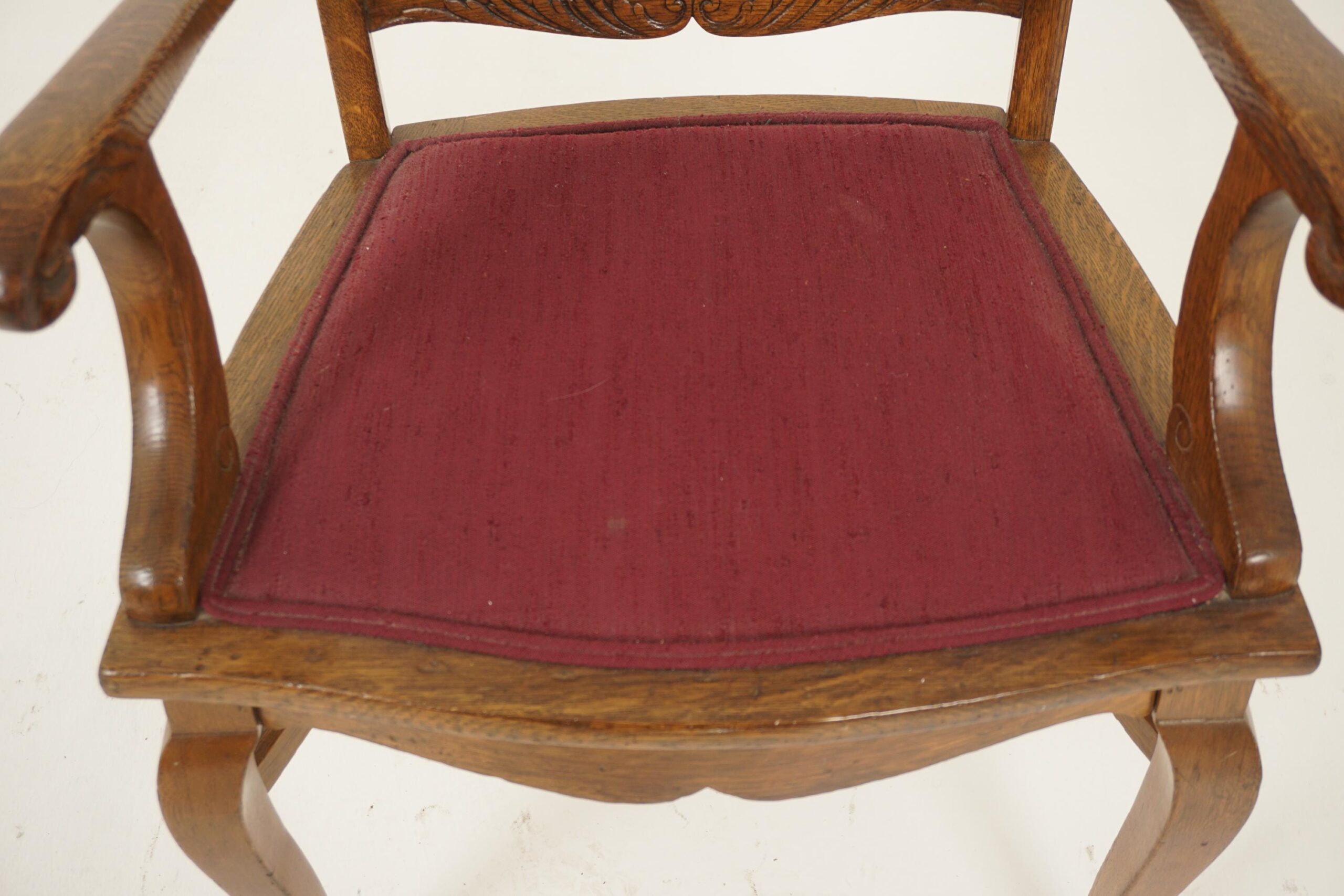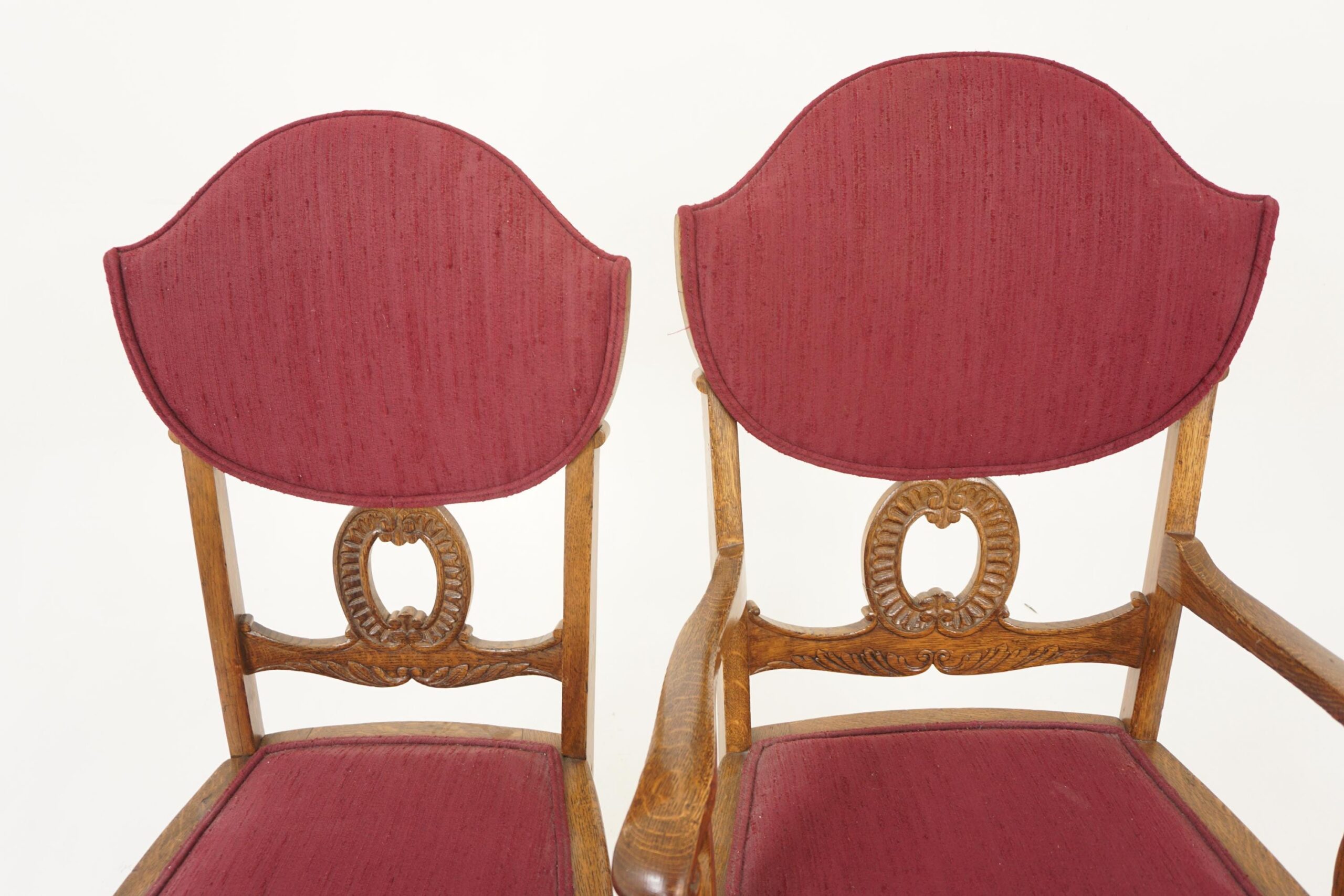 4 Antique Tiger Oak American Dining Chairs, Upholstered Seats, 3 + 1, America 1910, H1198