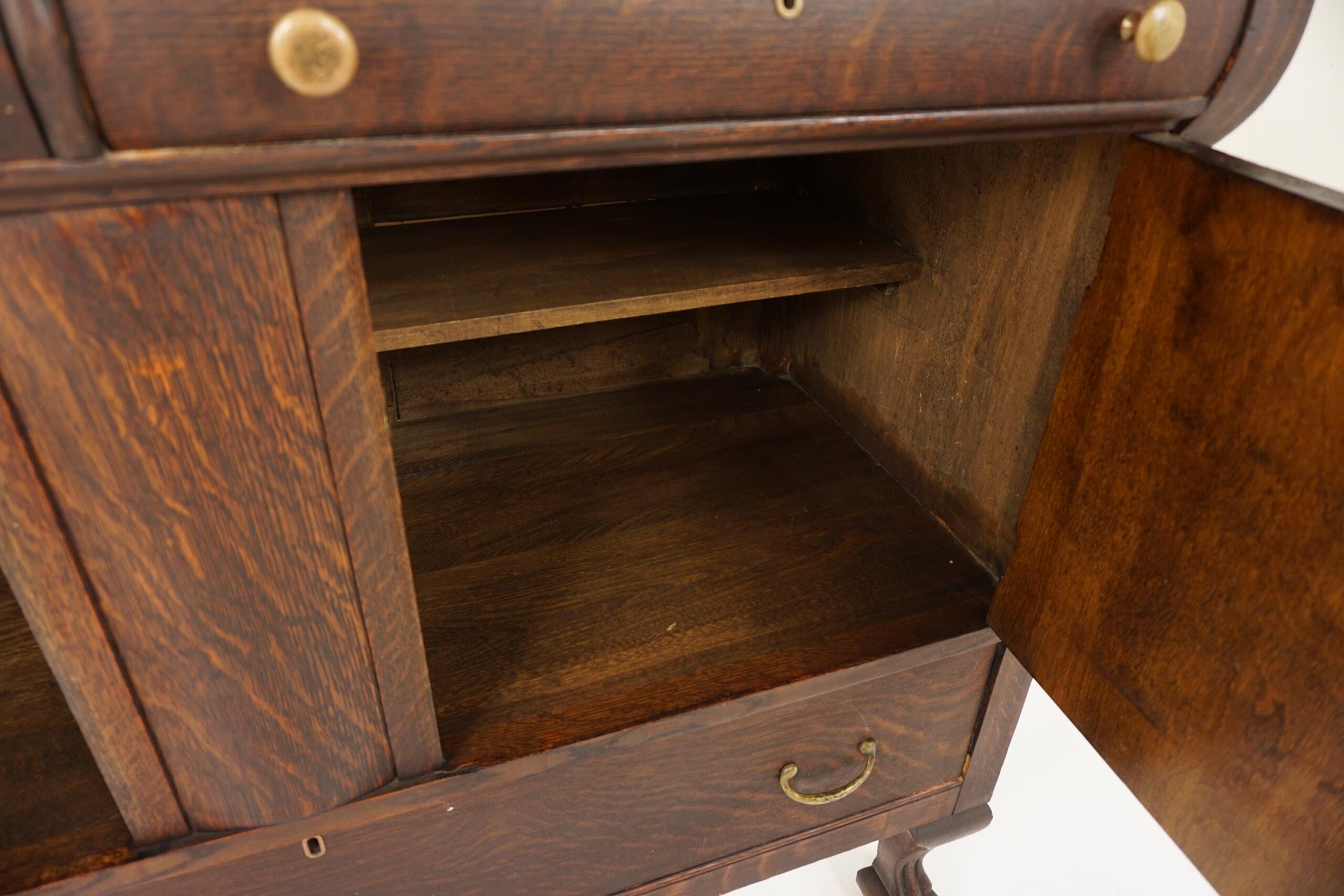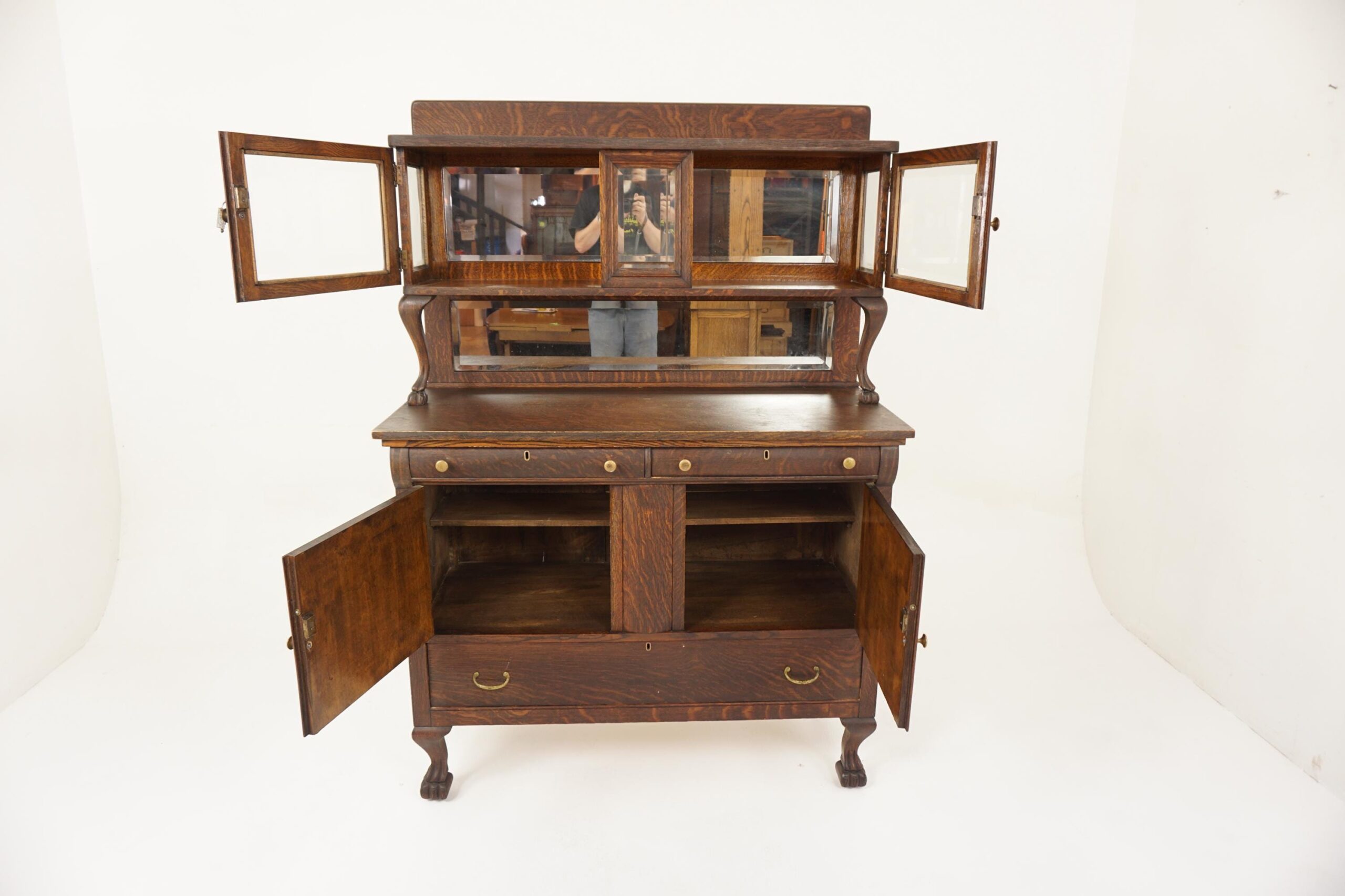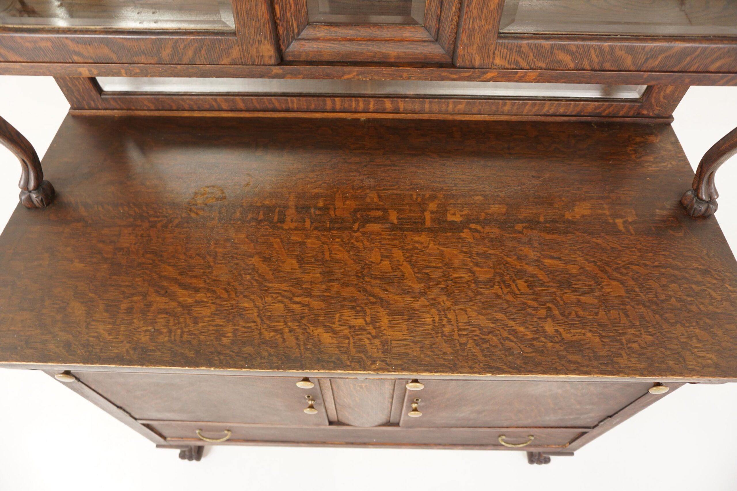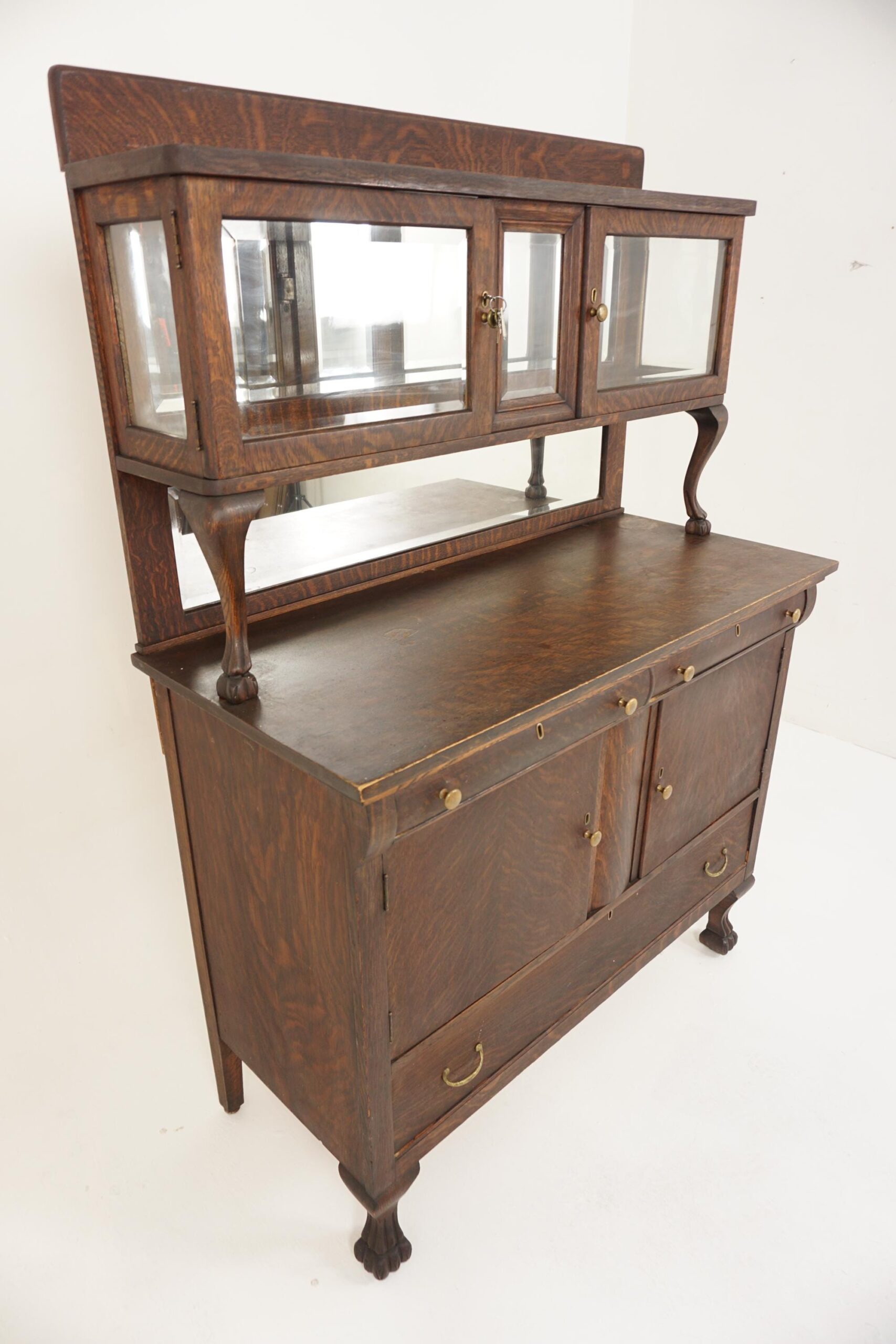 American Empire Quarter Sawn Oak Buffet, Sideboard, Hutch with China Cabinet on top American 1910 F-1244