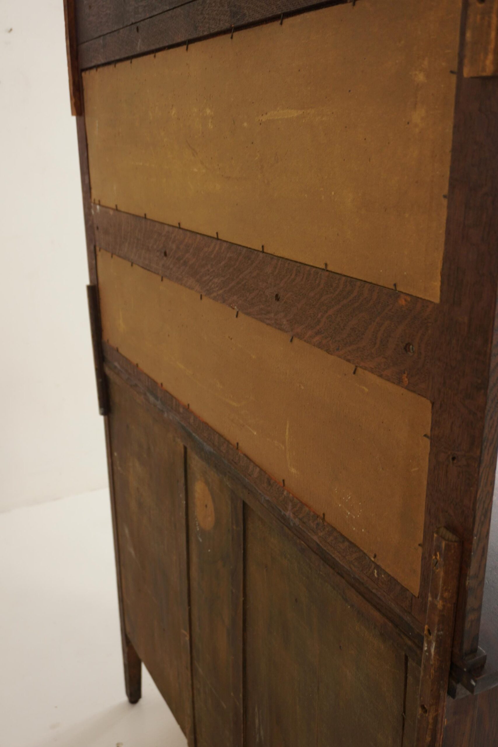 Pair of cupboard doors that open to reveal single shelf interior Below is a large full length drawer All original hardware and working lock and key