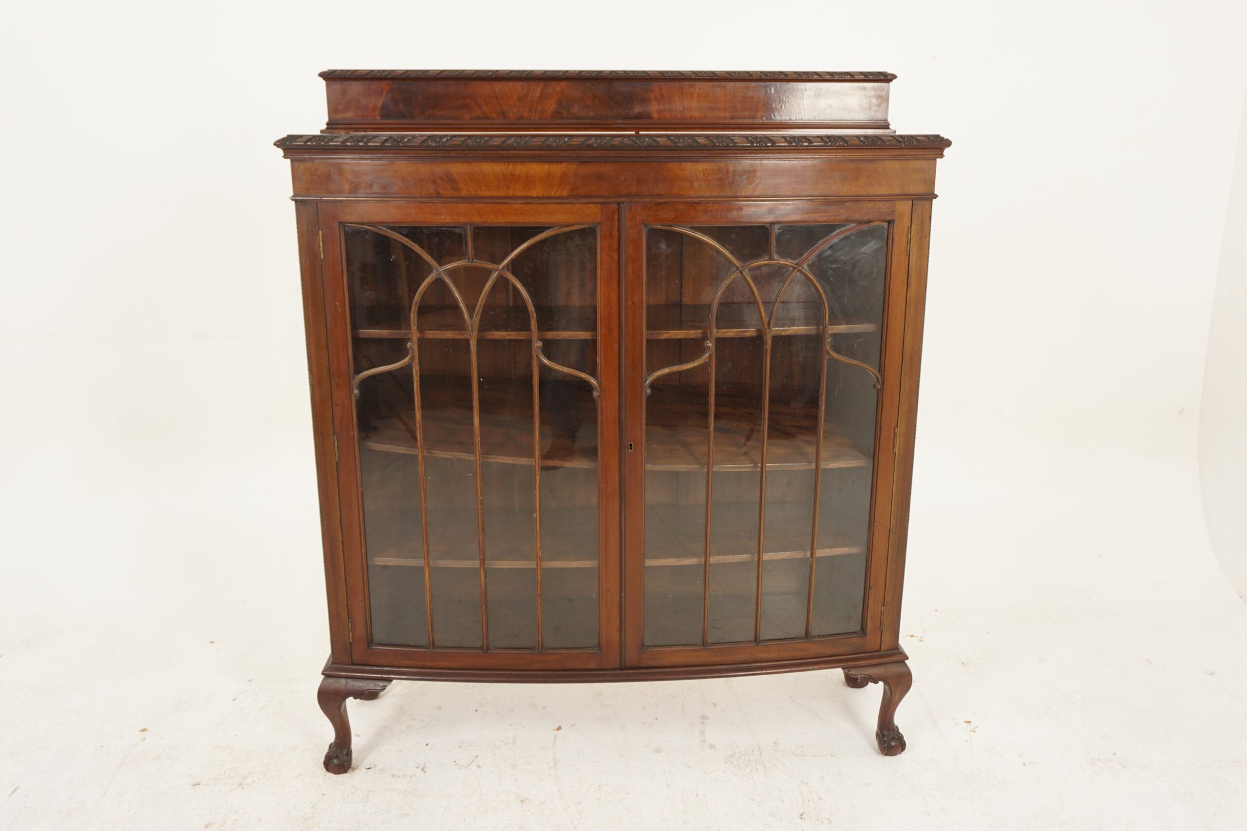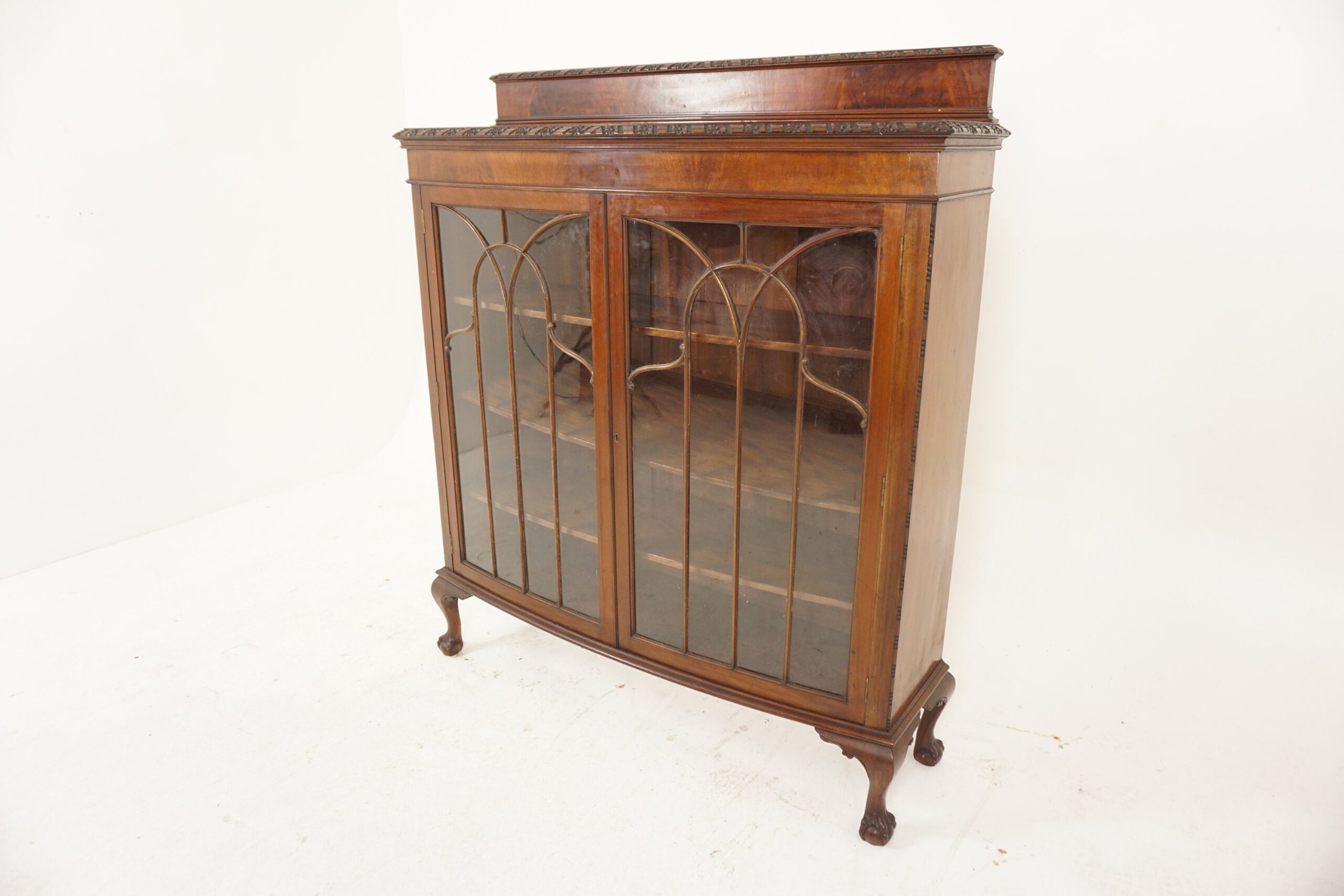 Antique Bow Front Walnut China Cabinet, Scotland 1920, F-1011