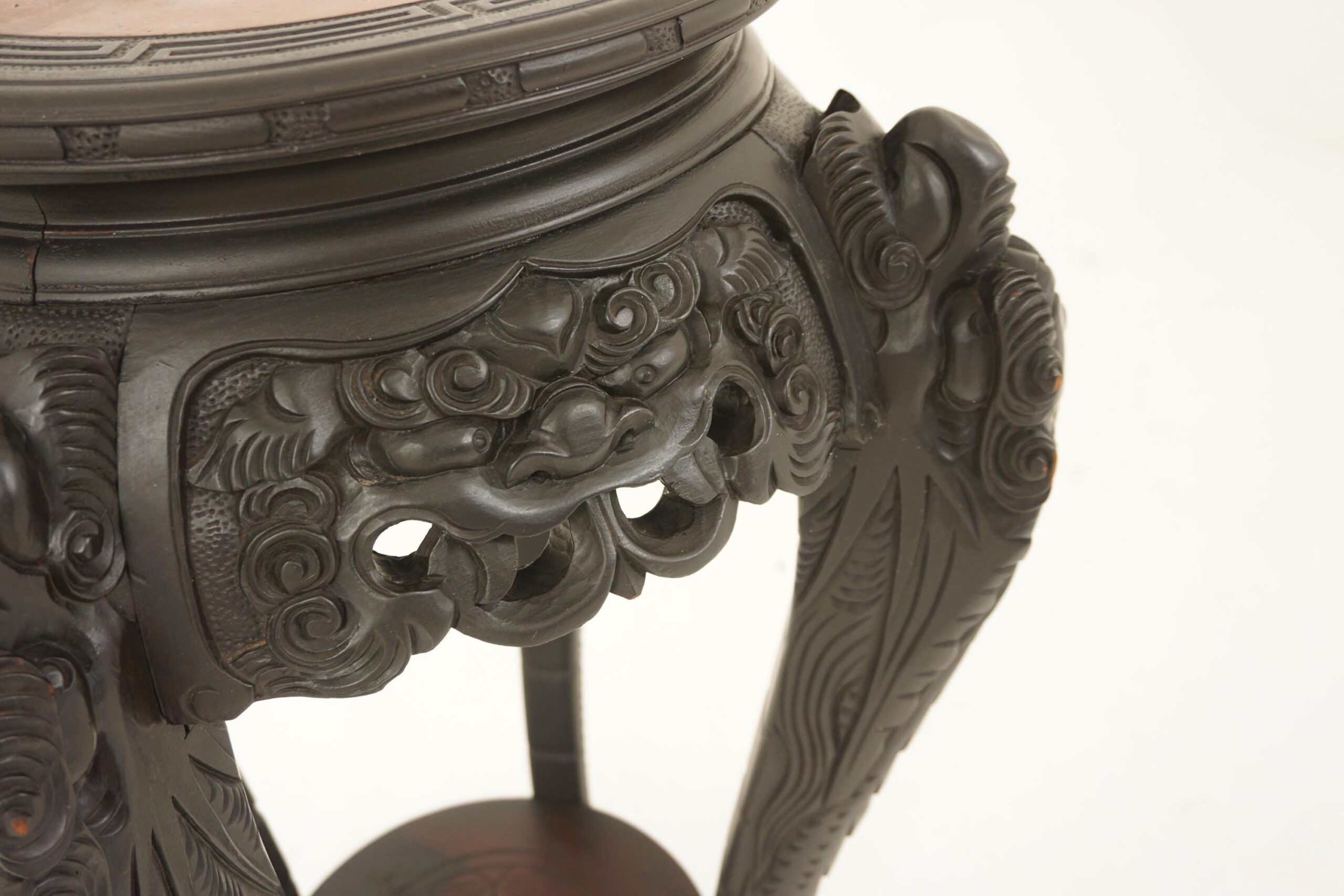 With carved frieze depicting dragon motif and leaves