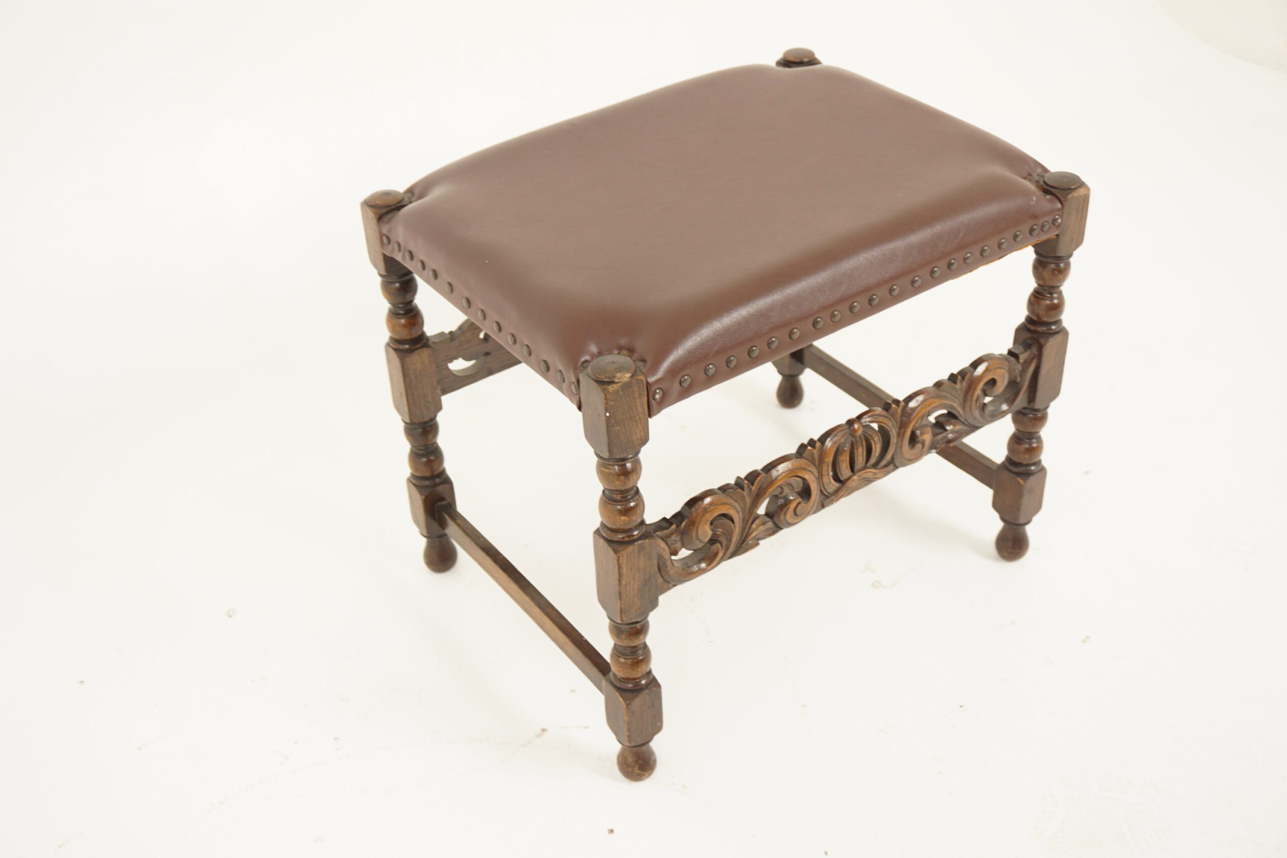 Antique Carved Oak Stool , Bench, Footstool, Scotland 1920 F- 1155