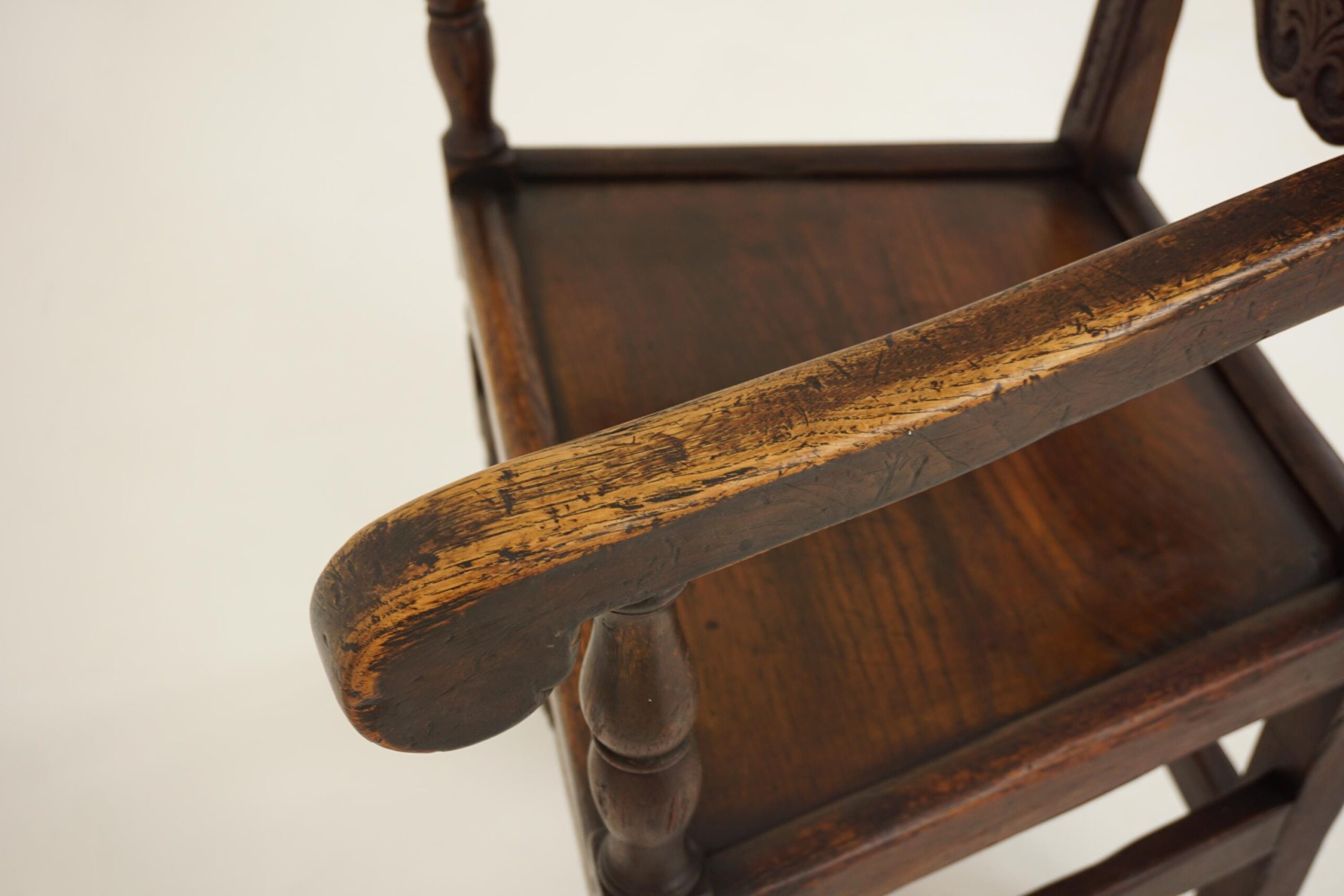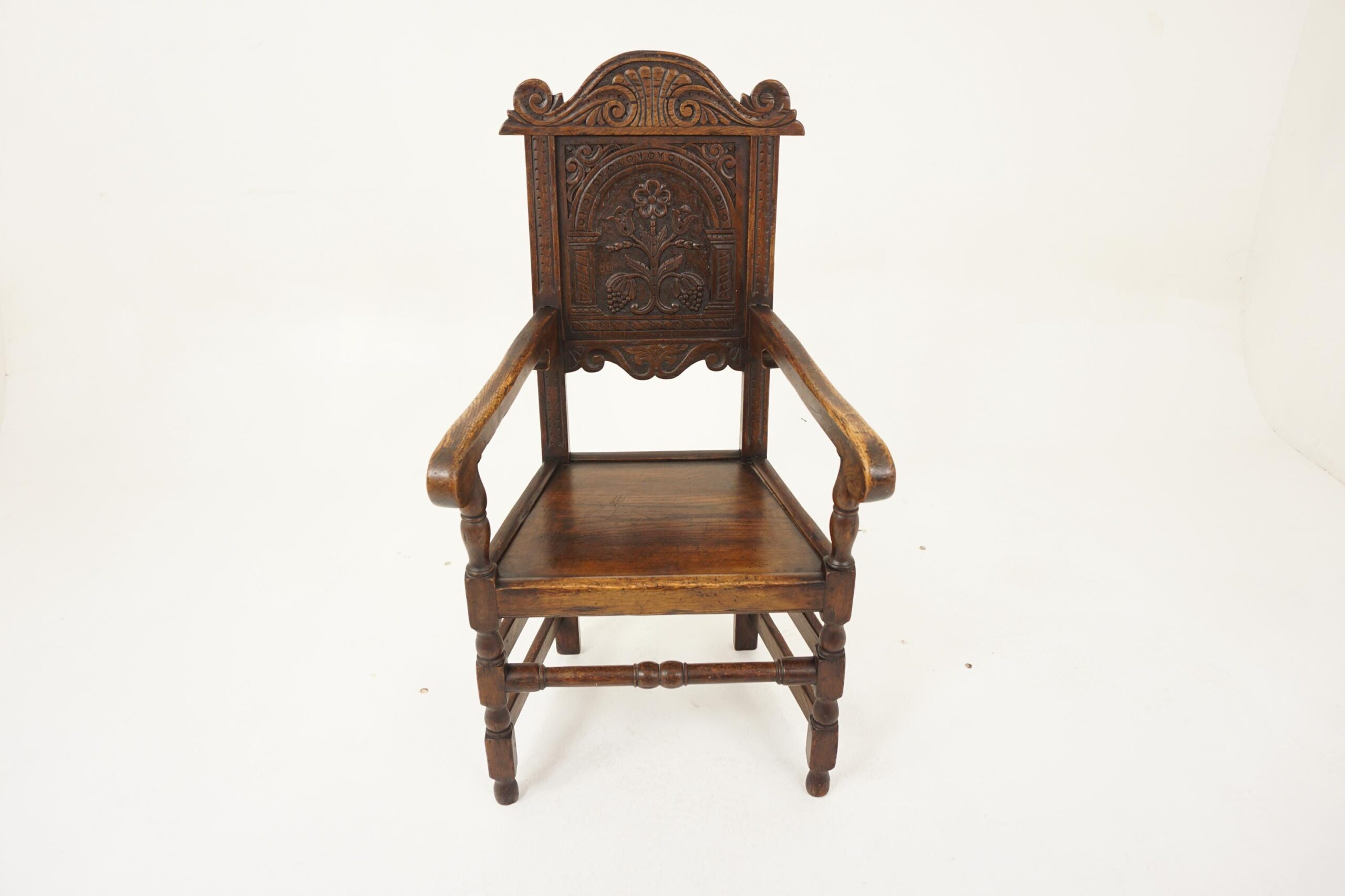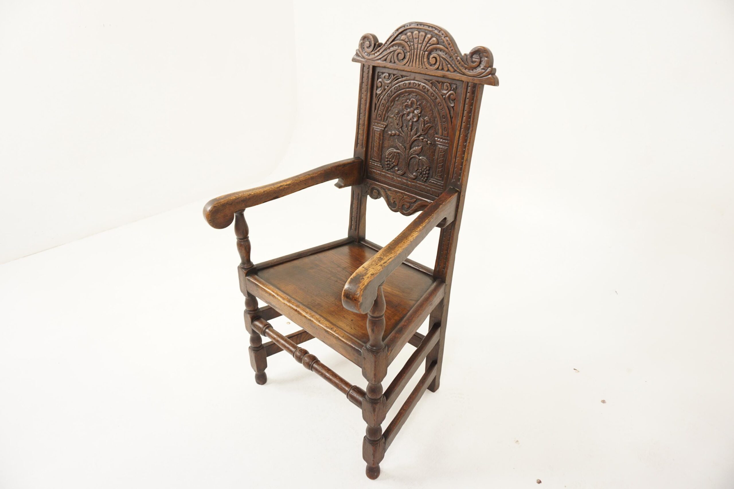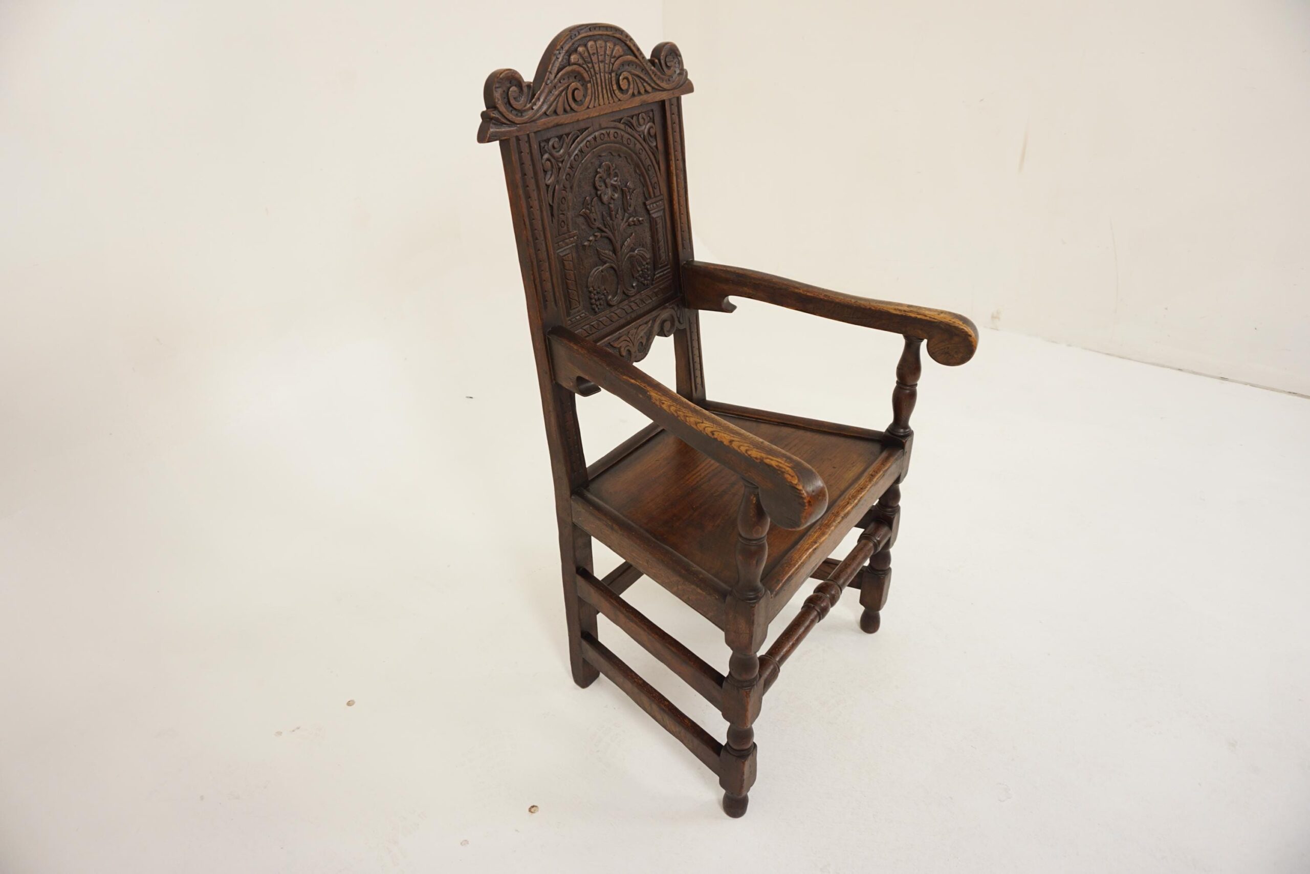 Antique Carved Oak Wainscot Scottish Oak Arm Chair, Throne Chair Scotland 1910 F-1243