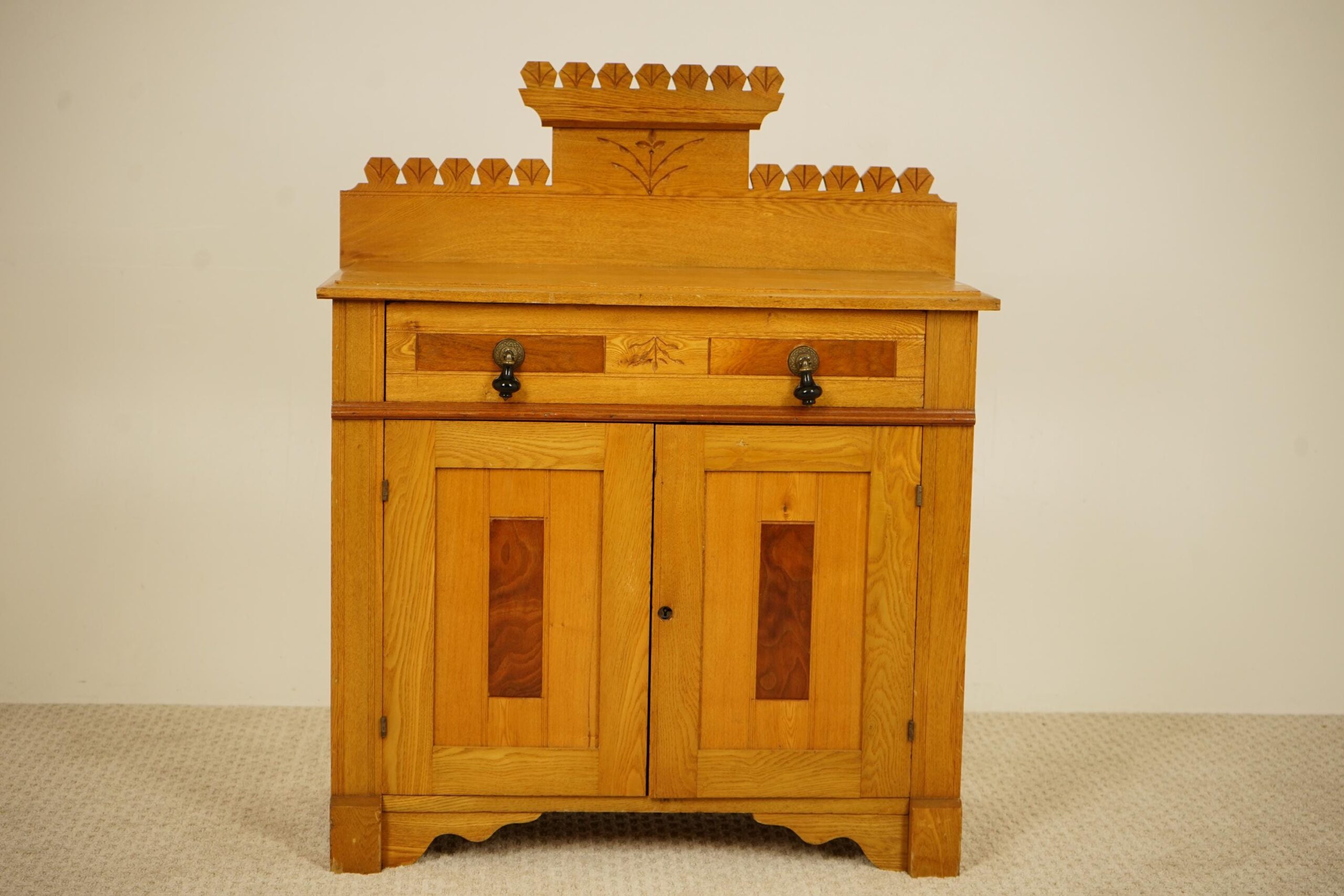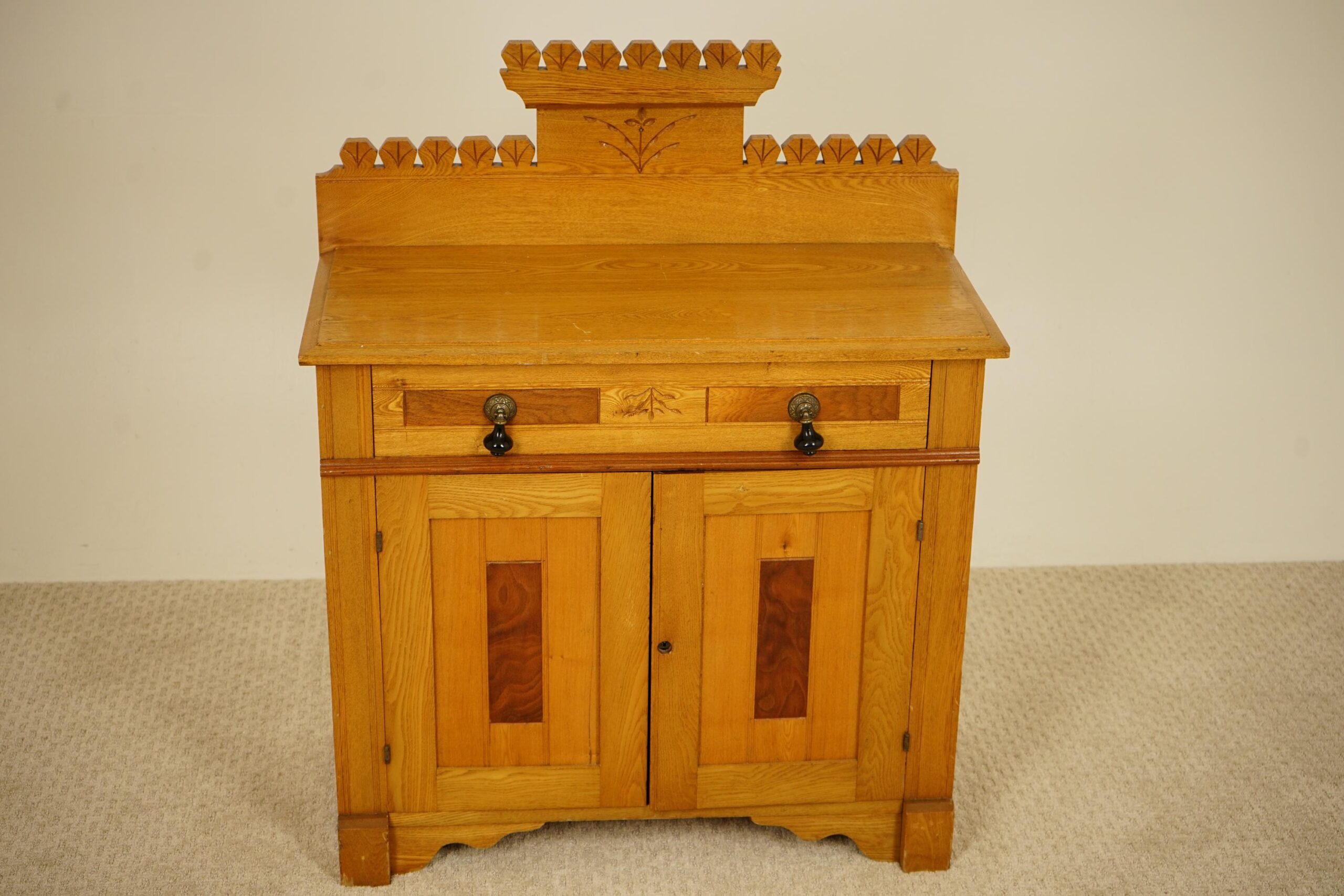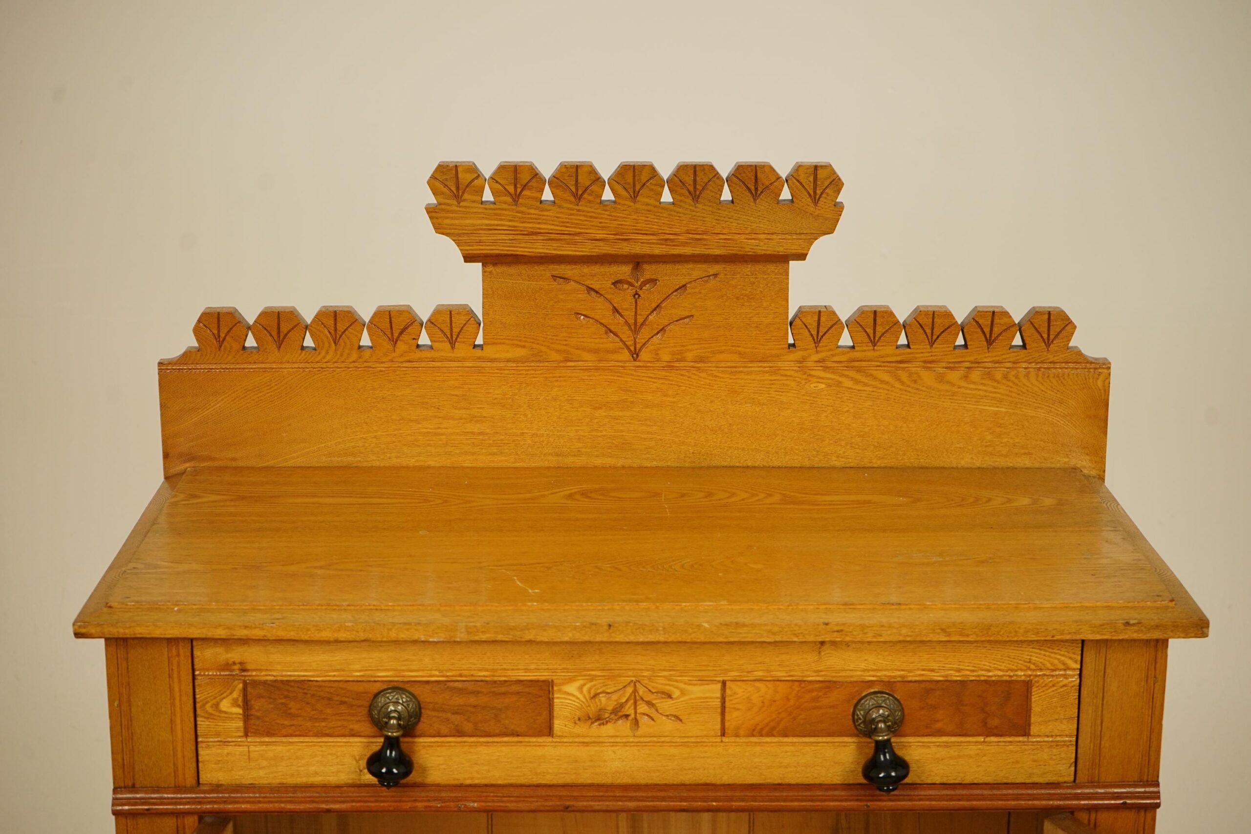 Antique Chip Carved Ash Eastlake Washstand, Bedside American 1880 F-1549B