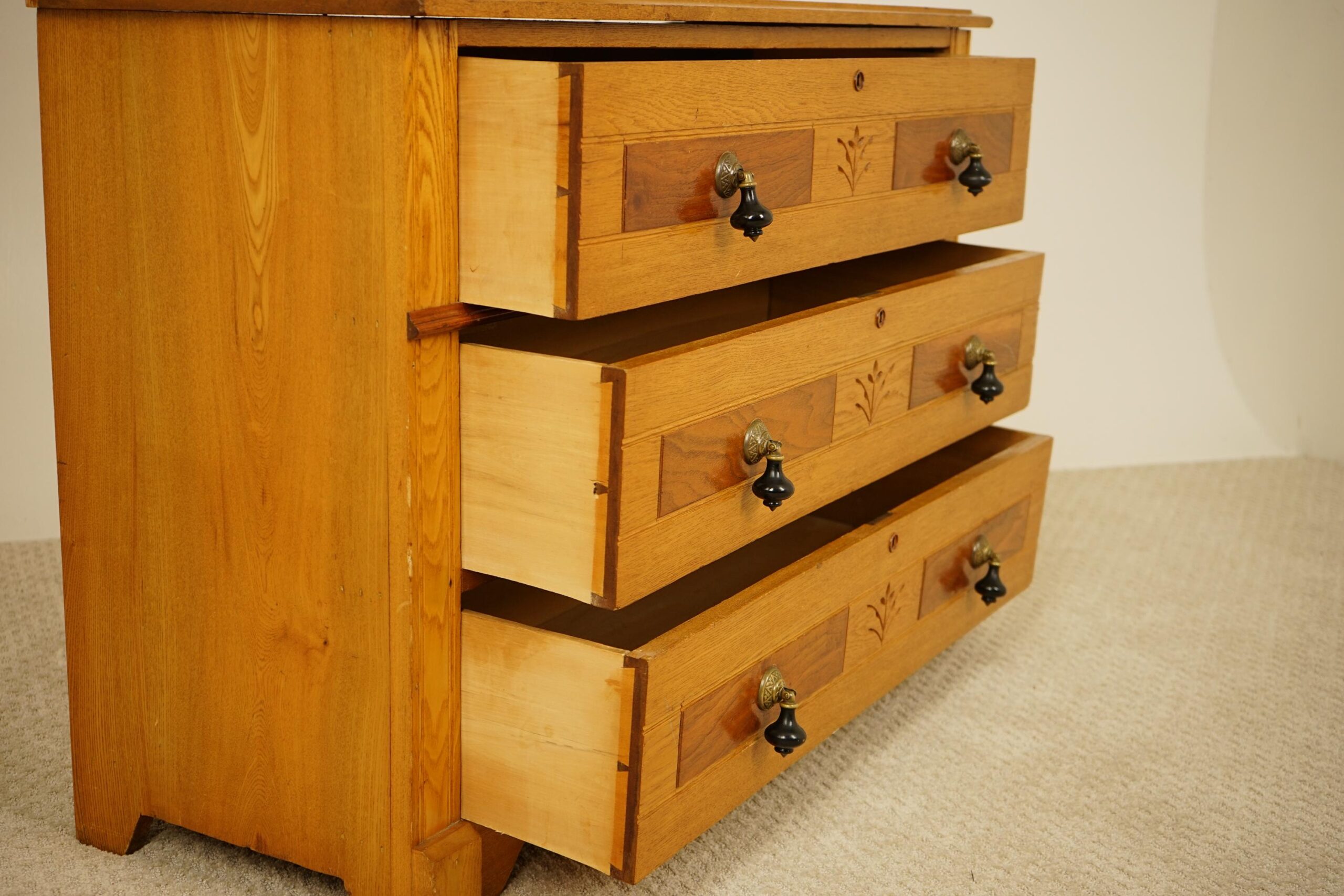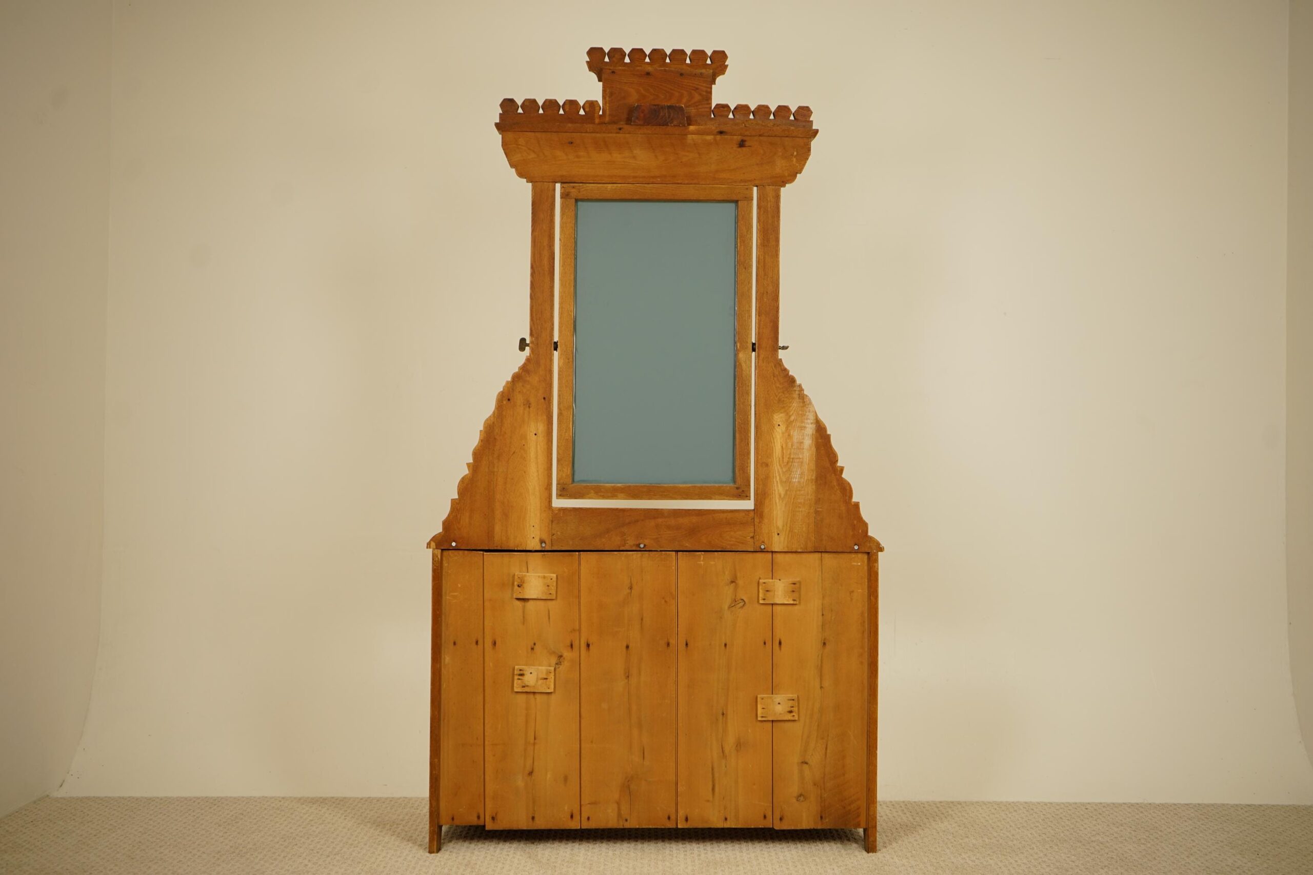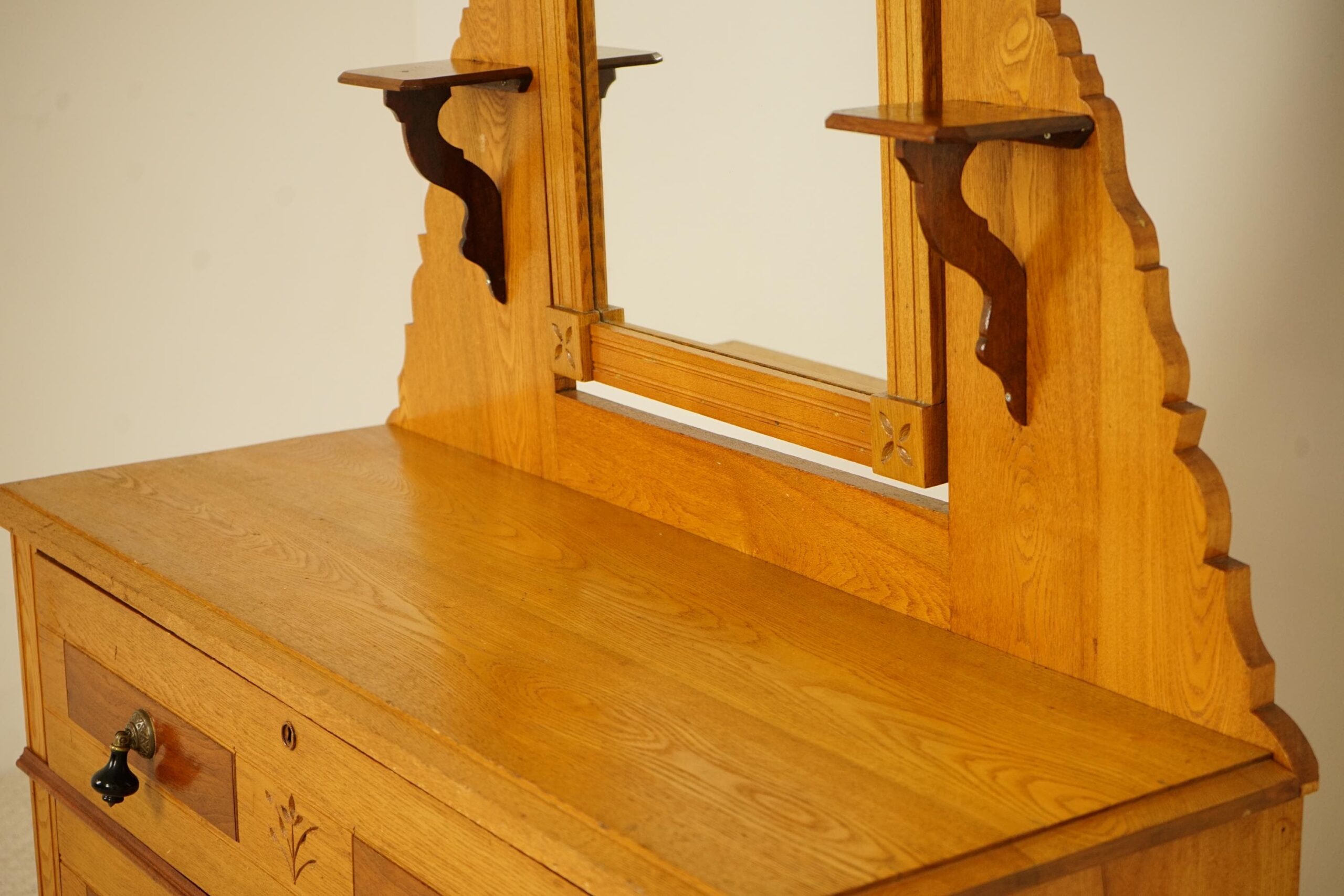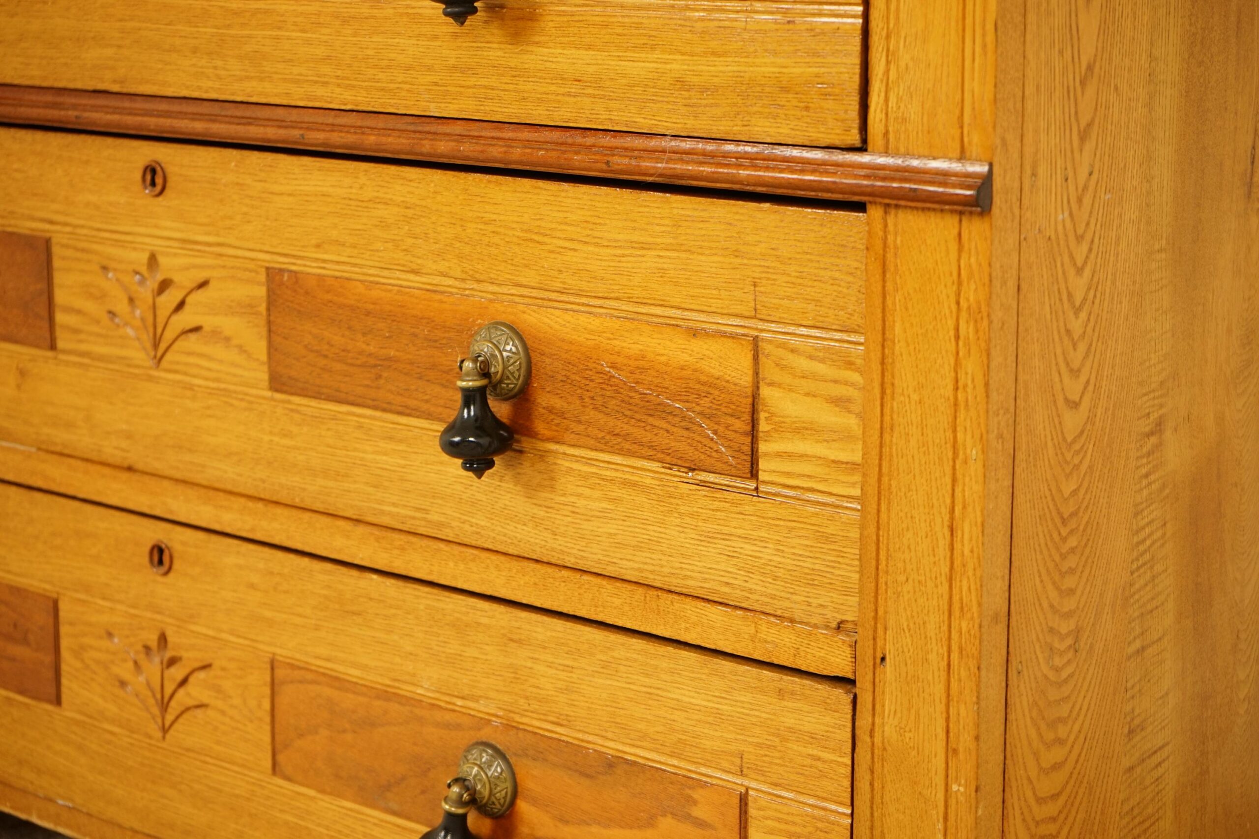 Antique Chip Carved Tall Ash Vanity with Mirror, Dresser, Chest of Drawers American 1880 F-1549C