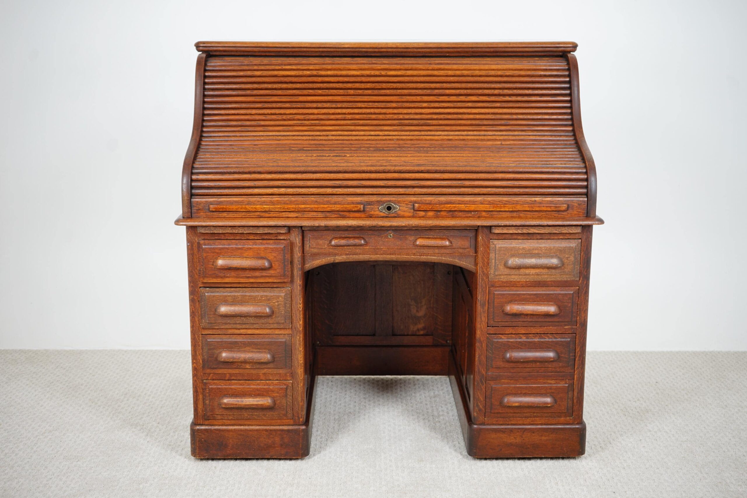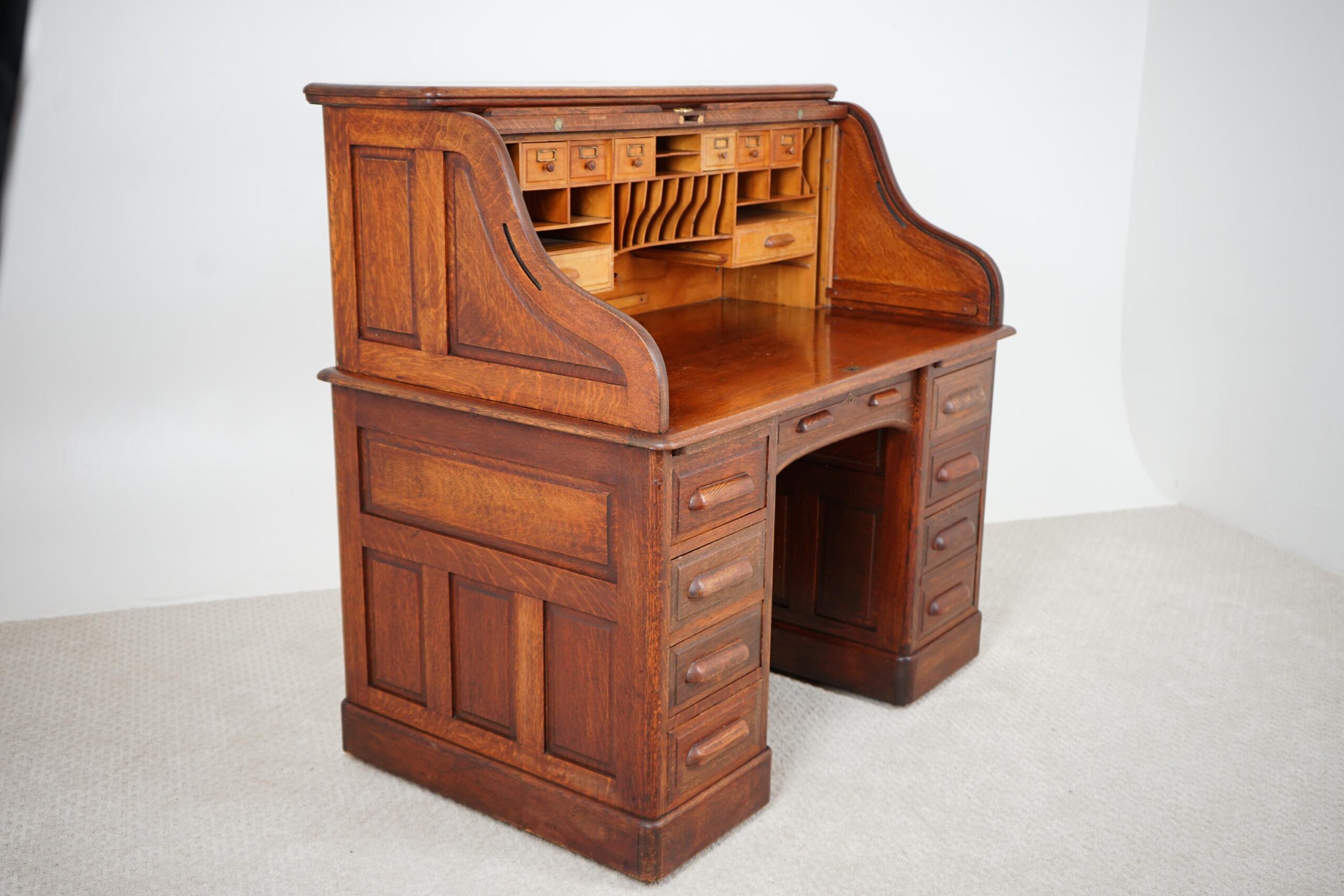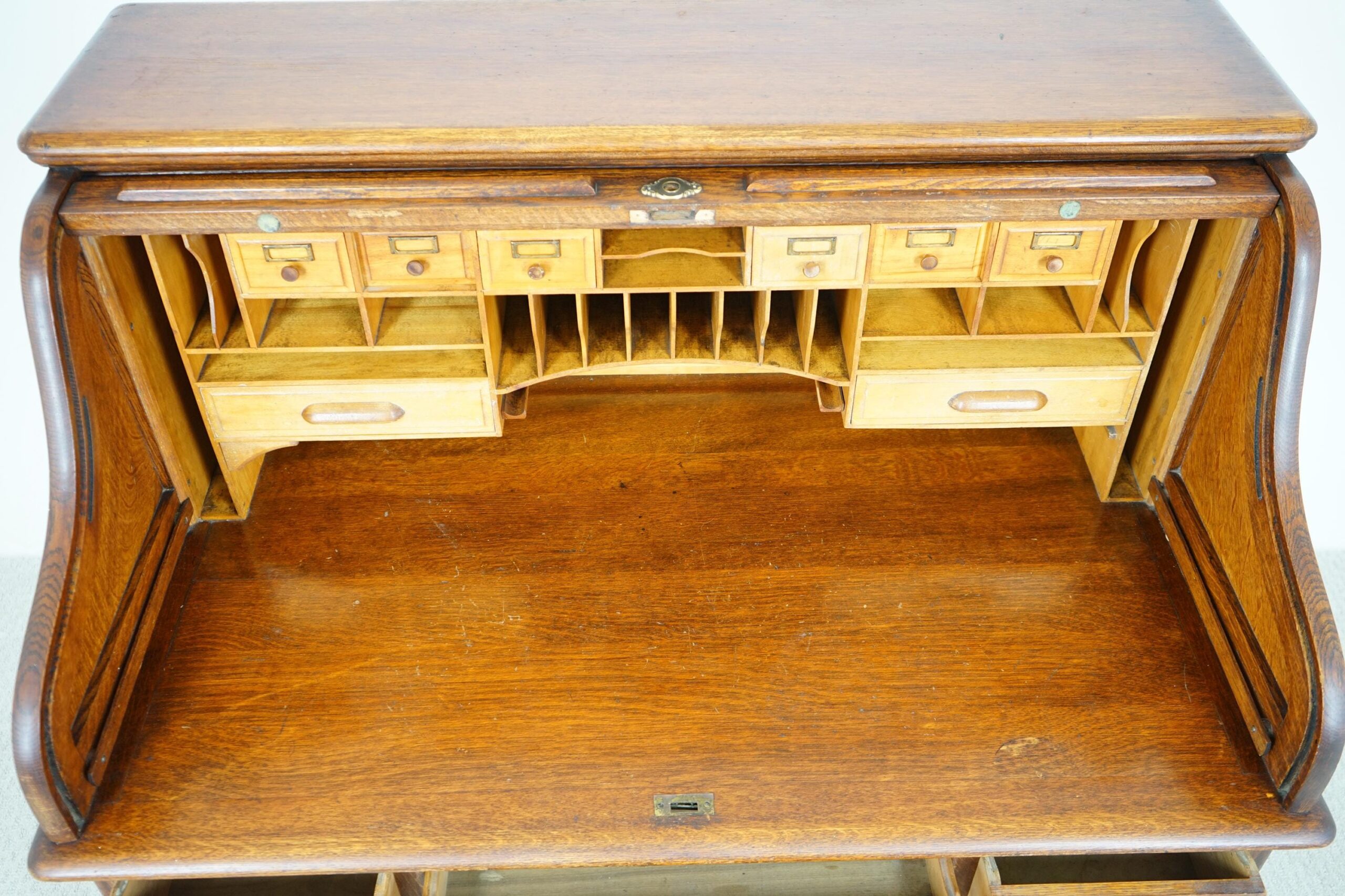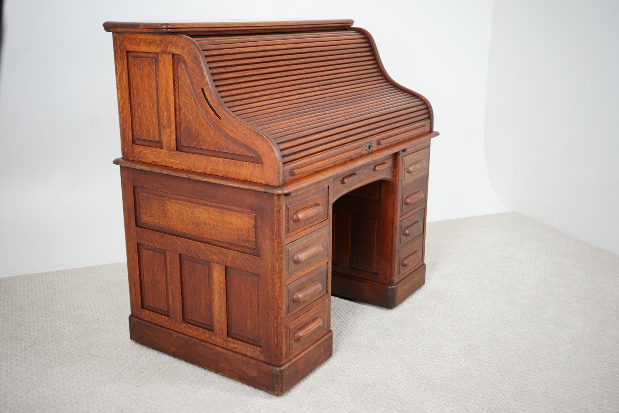 Antique Freestanding Quality Oak Roll Top Desk Scotland 1910 F-1574