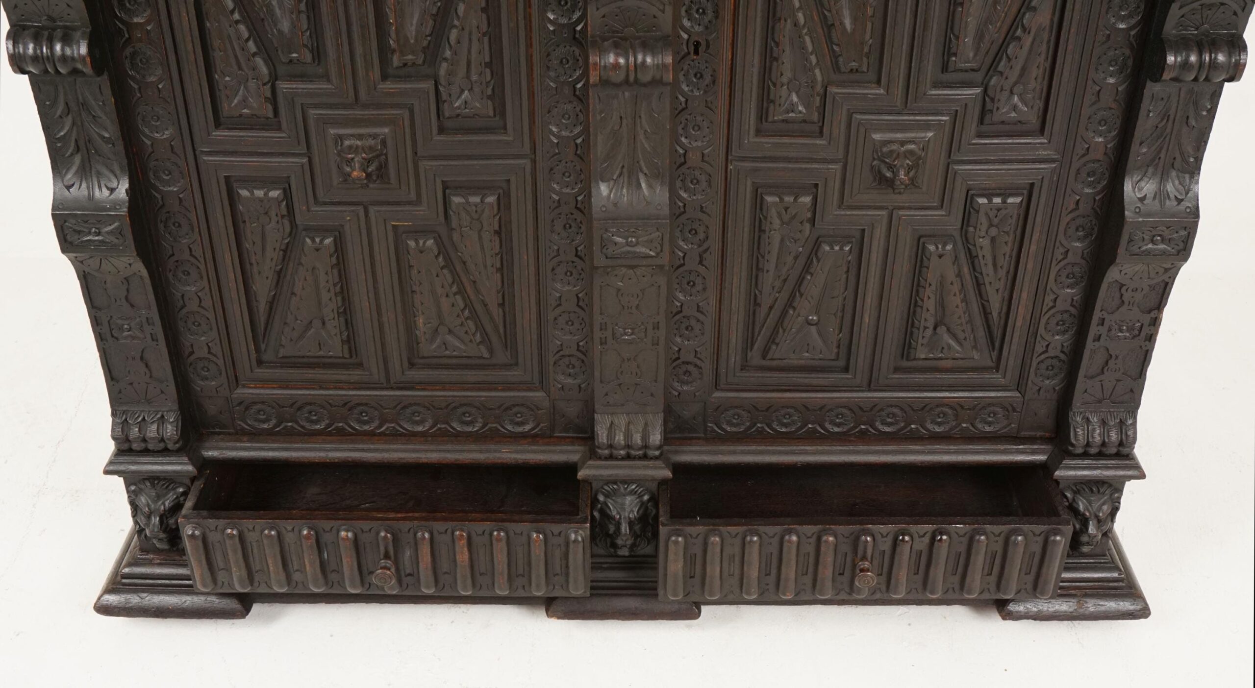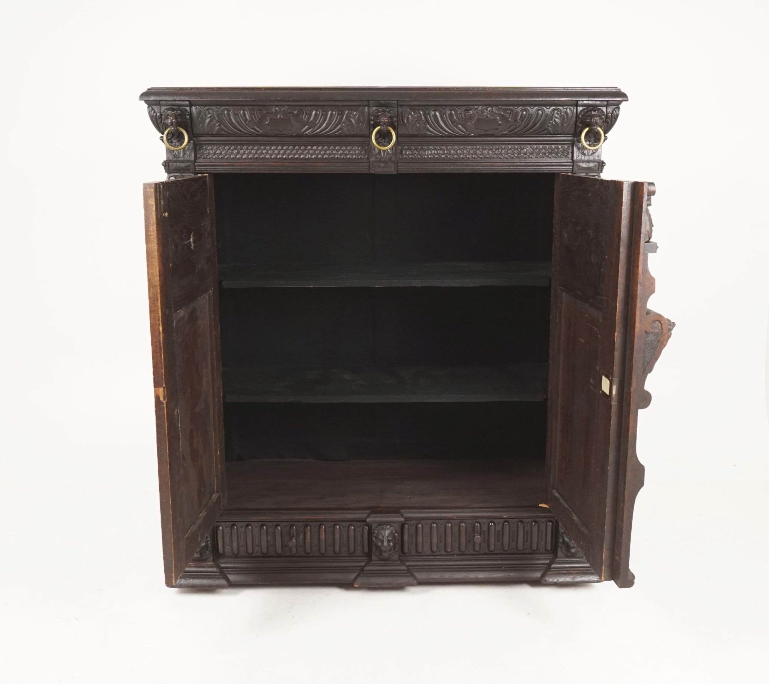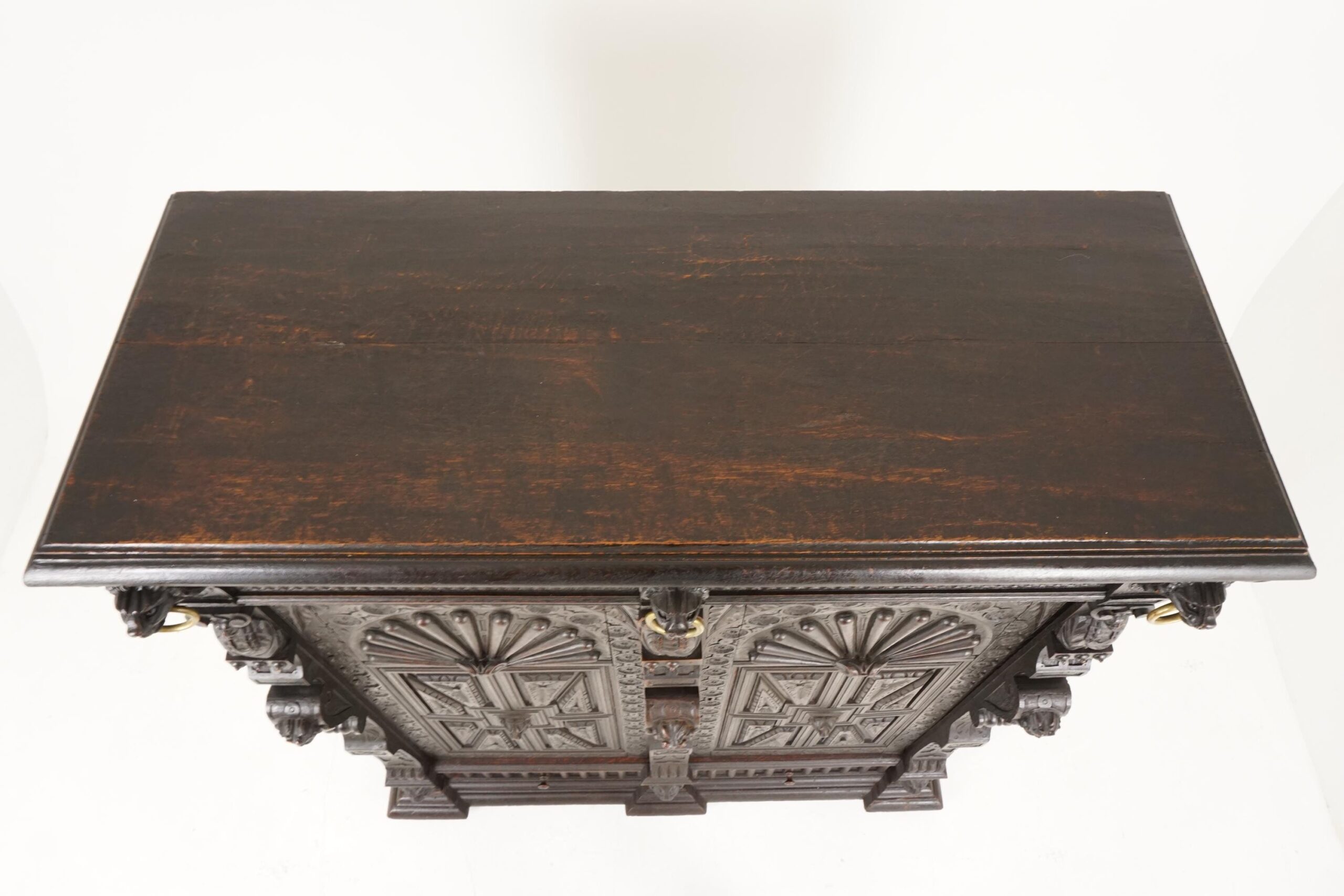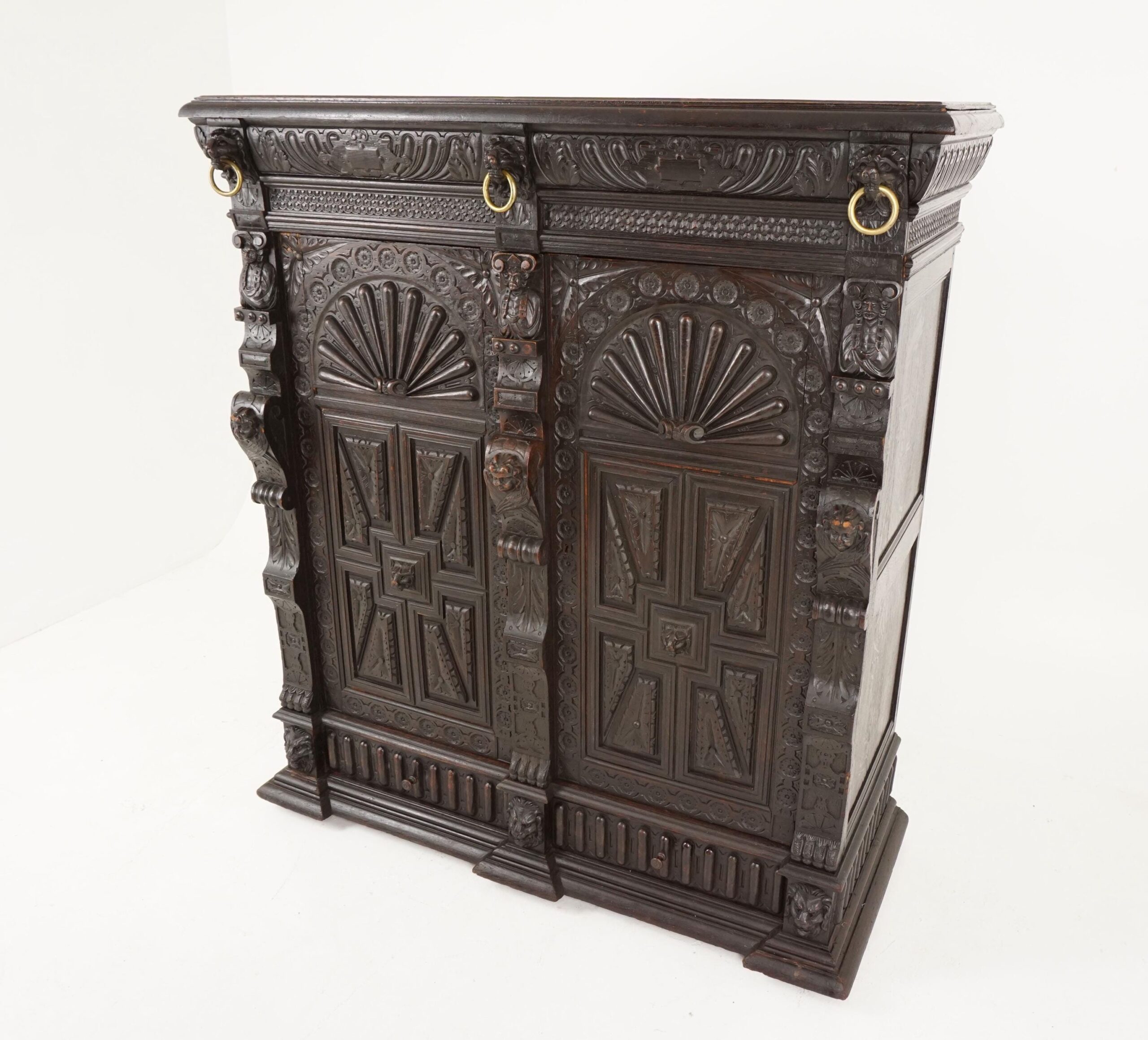Antique French Carved Oak 19th Century Hall Cabinet, Side Cabinet, France 1880, H068