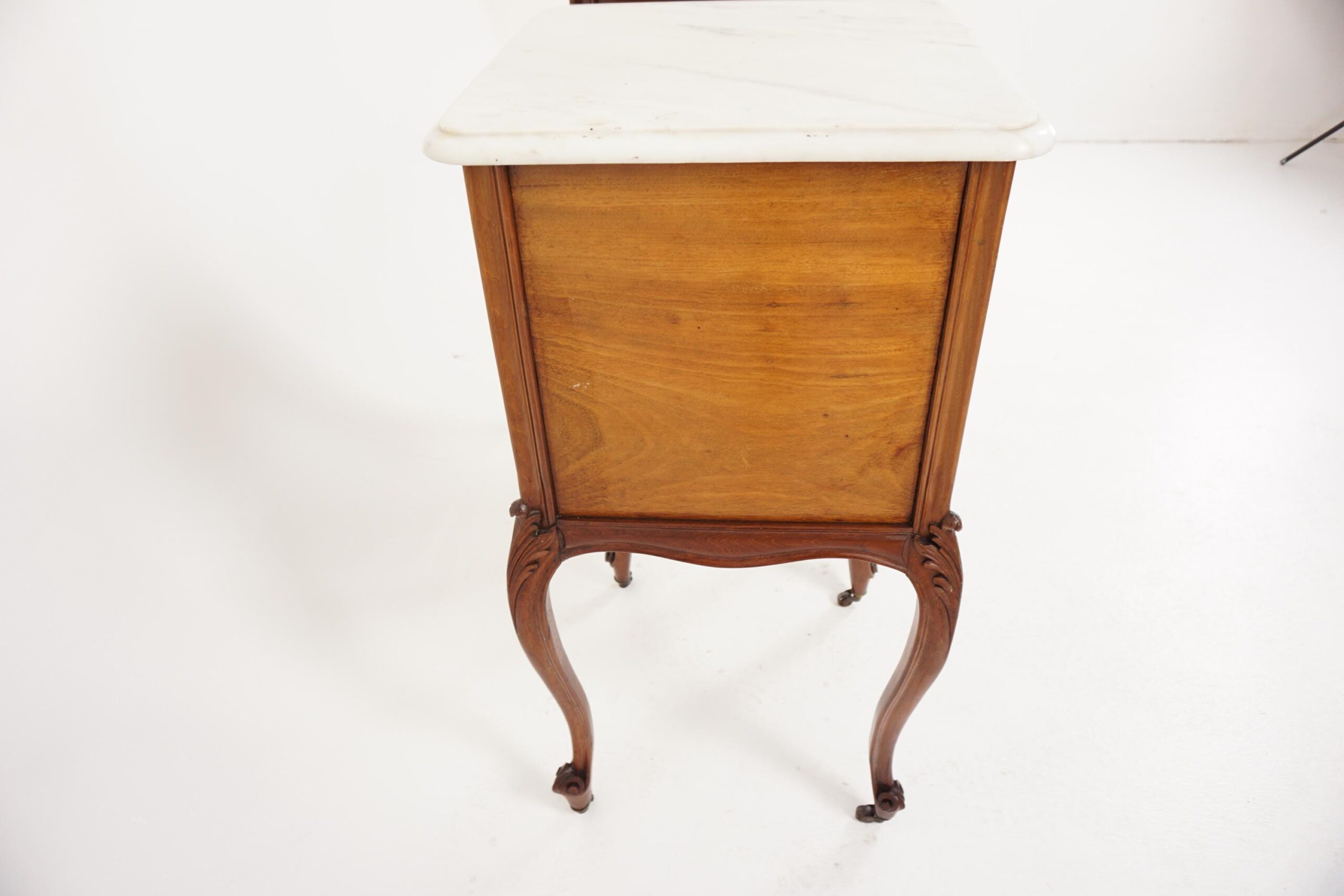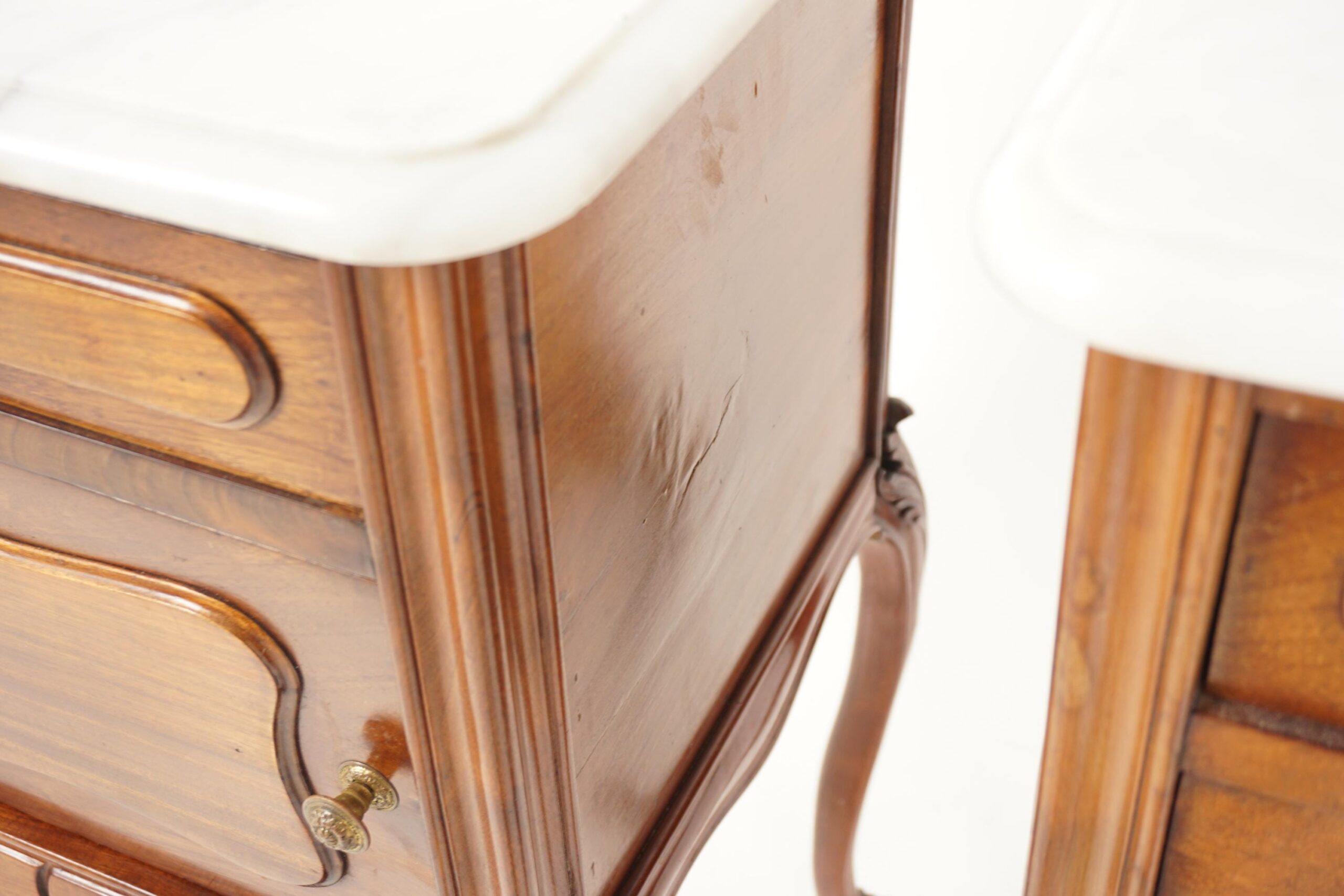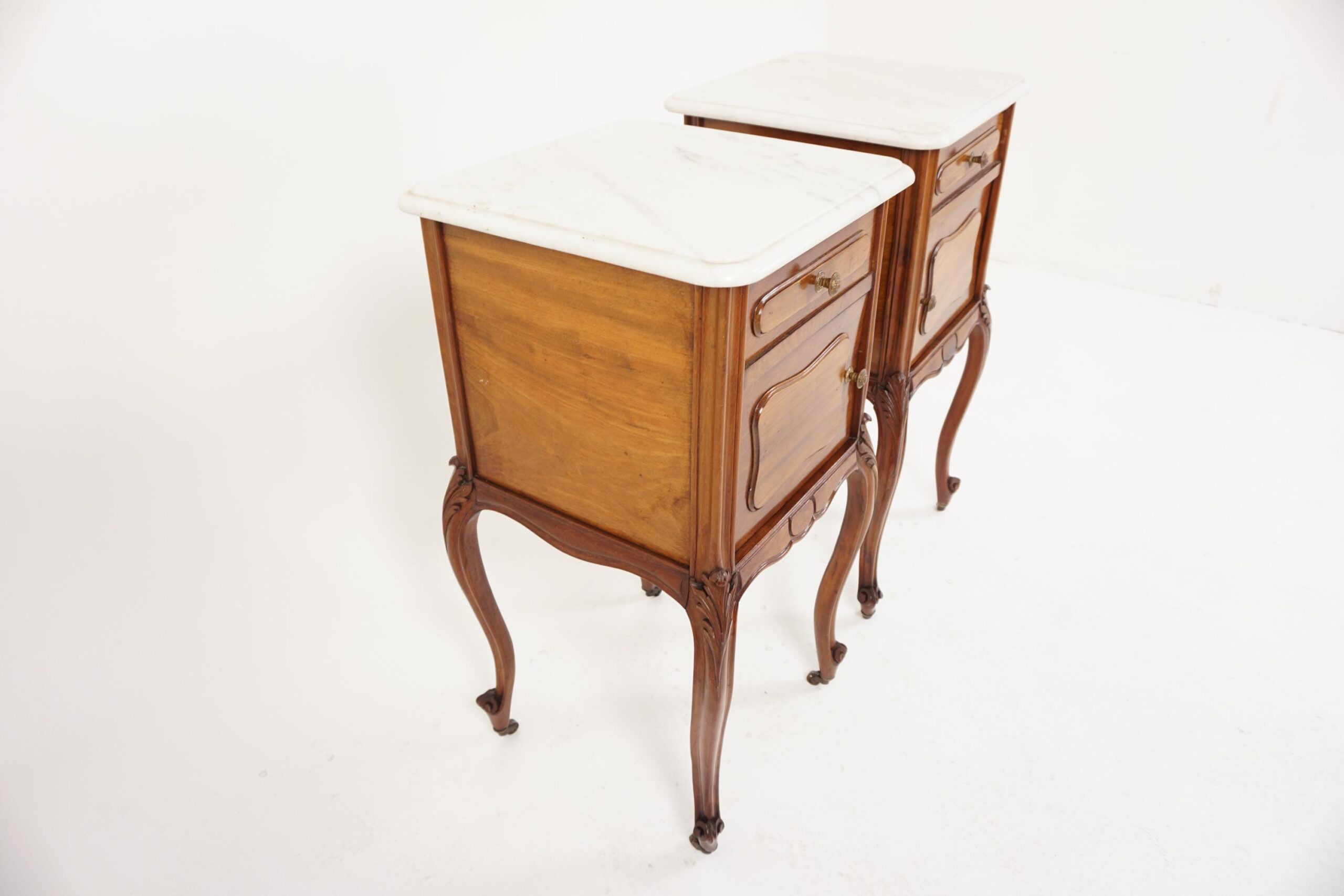 pair of Antique French Louis XV Walnut Marble Top Nightstands, Bedsides Tables – France 1900 F-1502