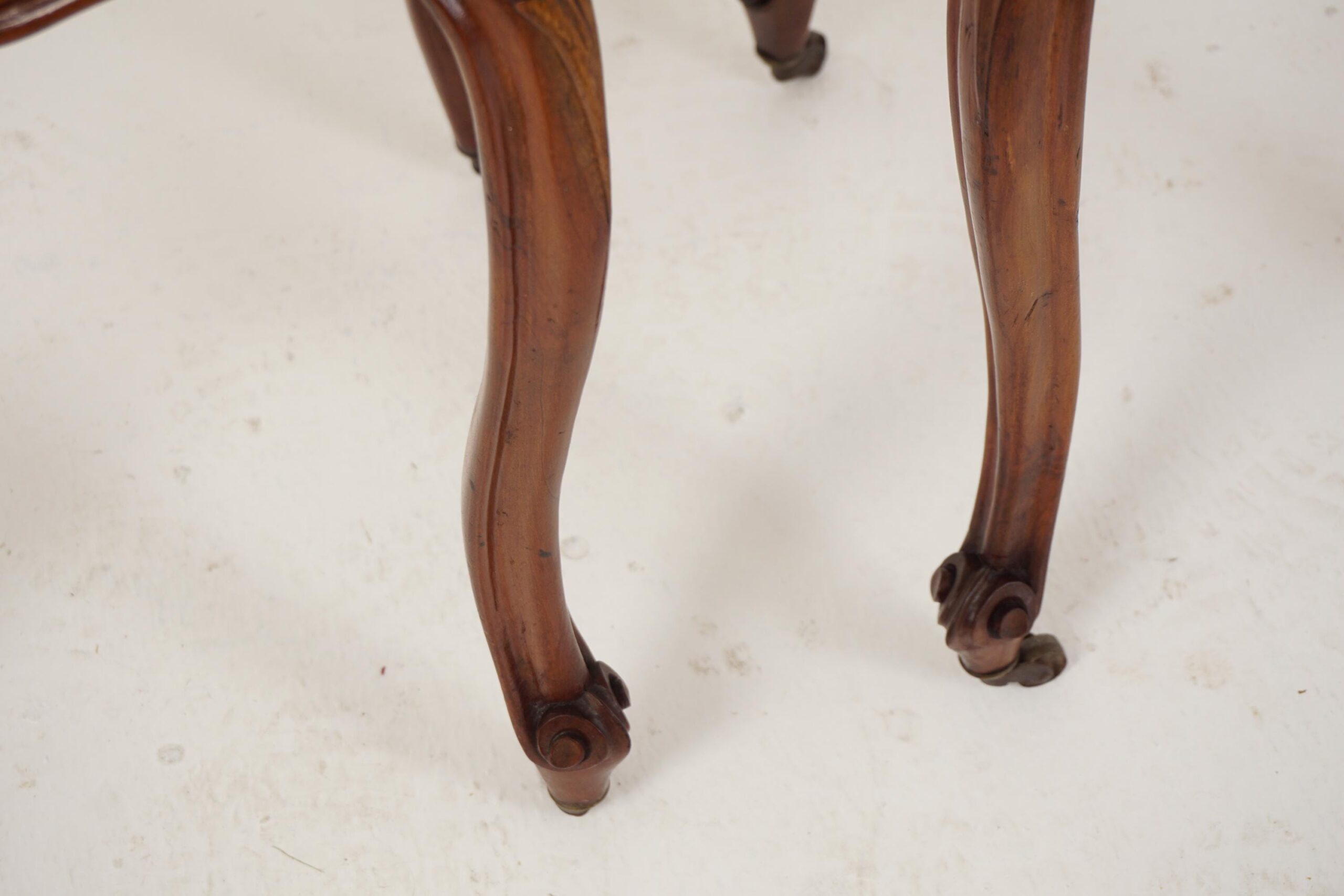 All standing on tall carved cabriole legs with shaped apron and original castors.