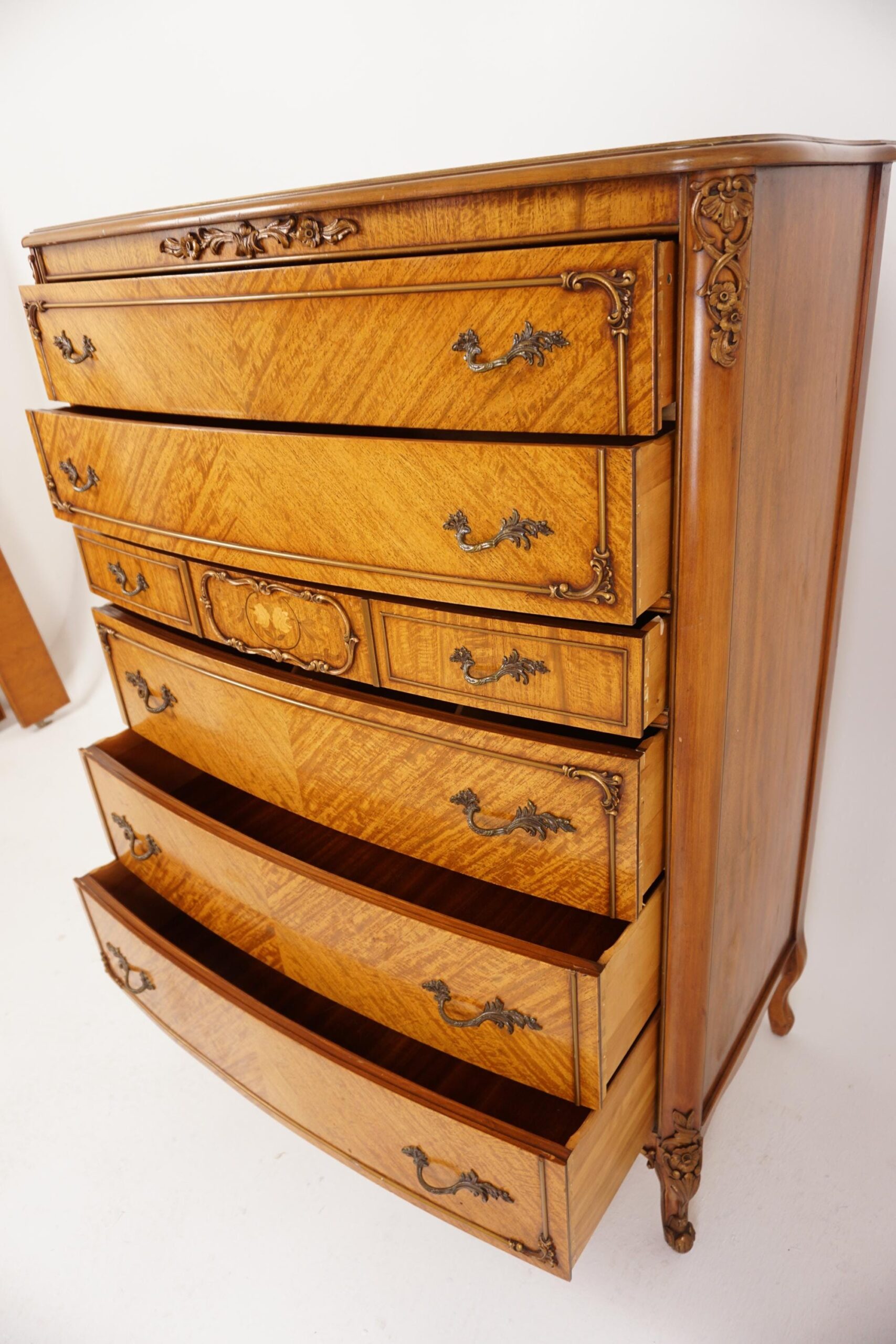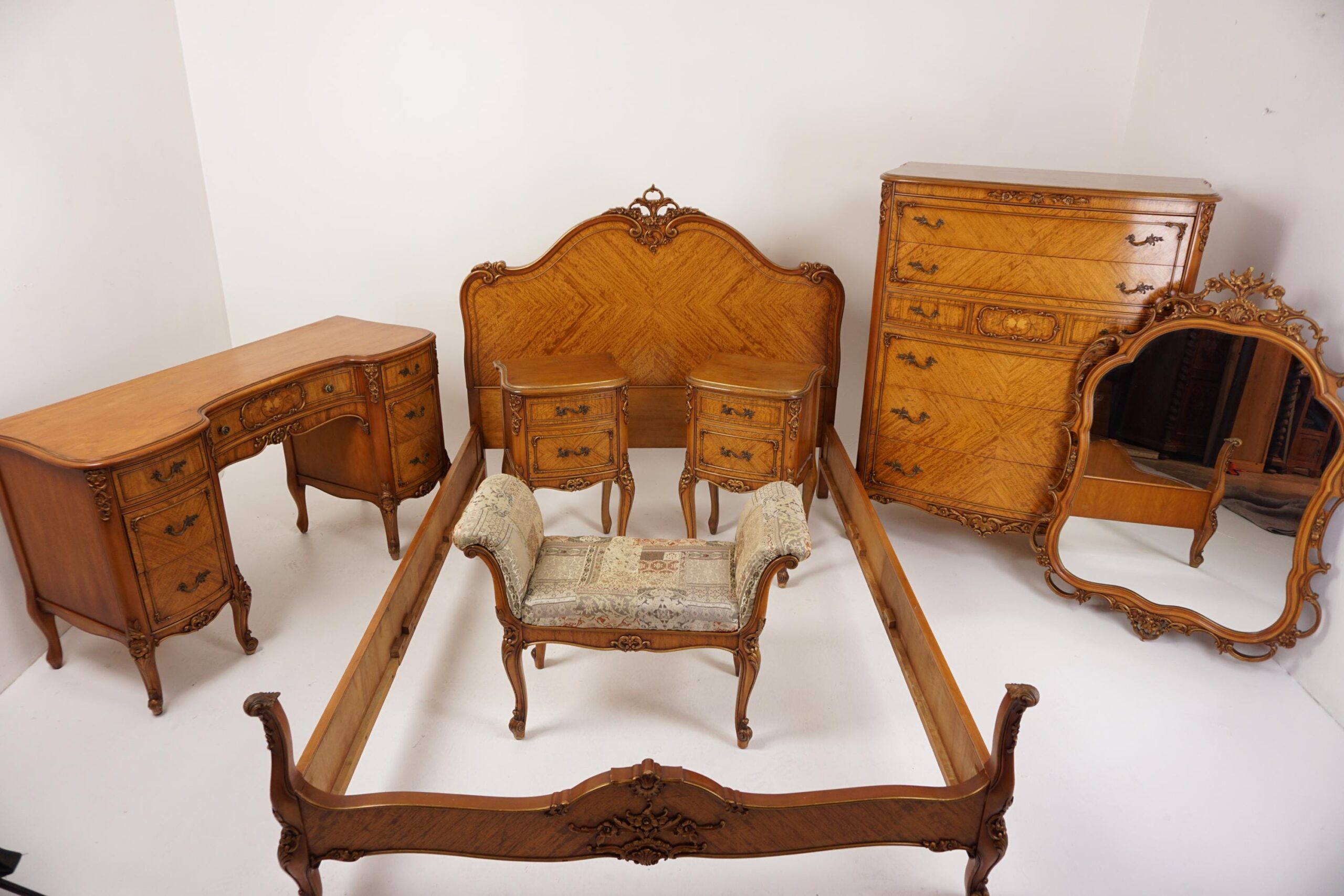 Antique French Style Satinwood and Burr Walnut Carved 7 piece Bedroom Set American 1930- F-500-1505