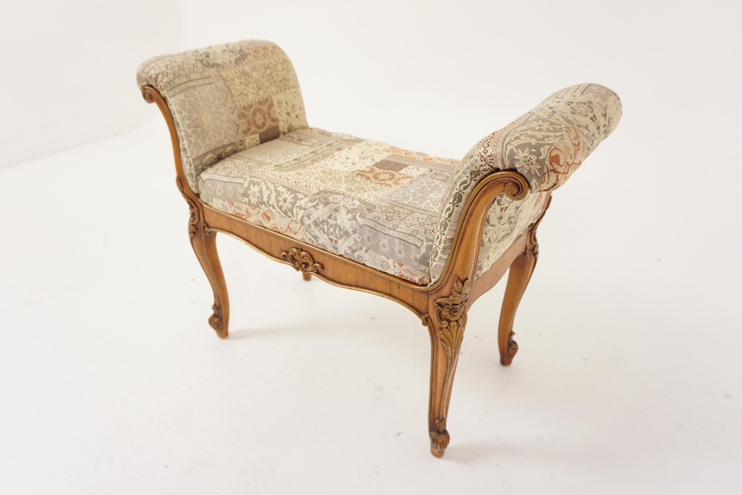 6. Dressing Stool: A charming dressing stool with upholstered seat and intricately carved legs provides a comfortable and stylish seating option. 34"W x 14"D x 25"H
