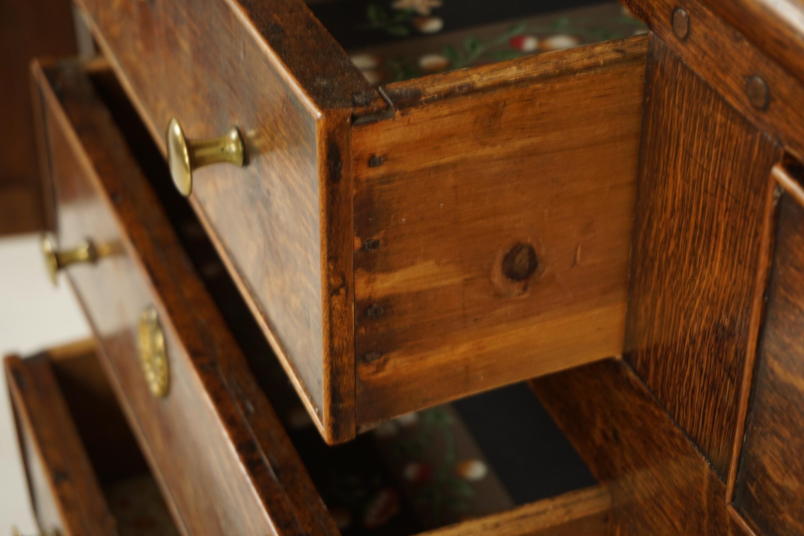 The base has six working drawers with two paneled cupboards that open to reveal large storage space
