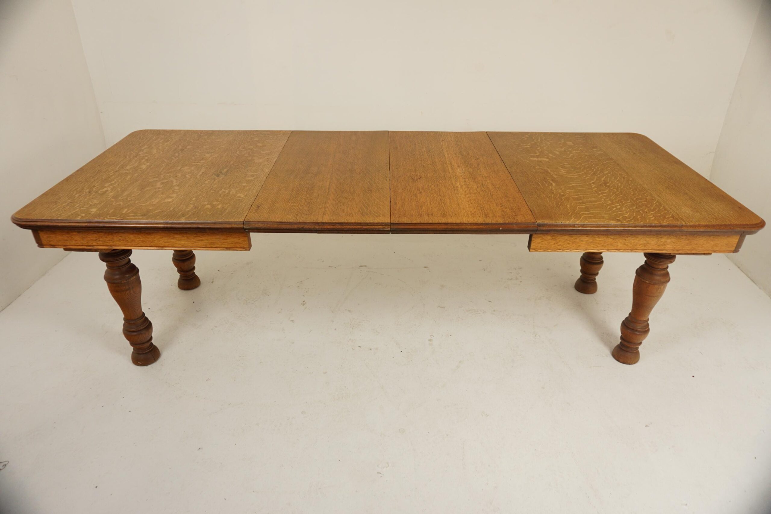 Antique Oak Extending Dining Table- Two Leaves, Scotland 1900