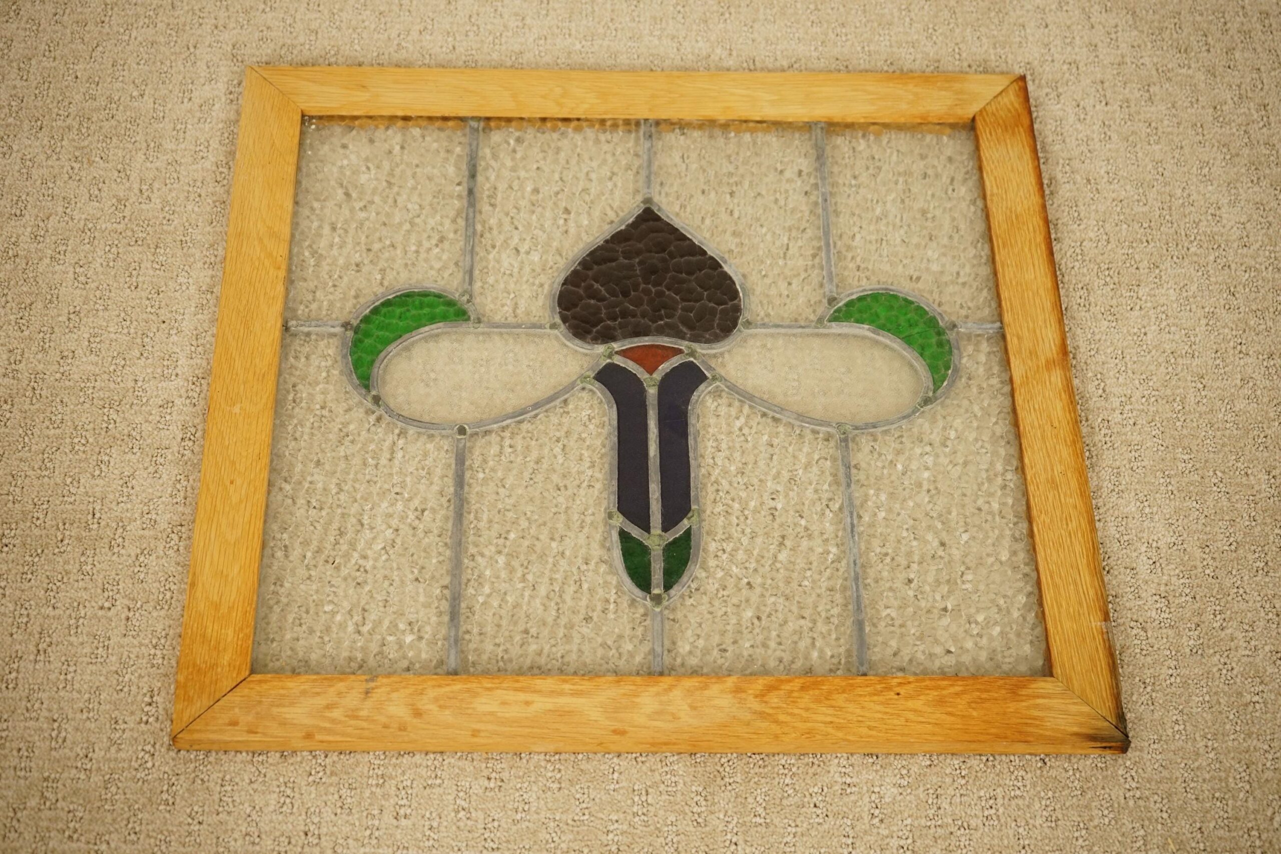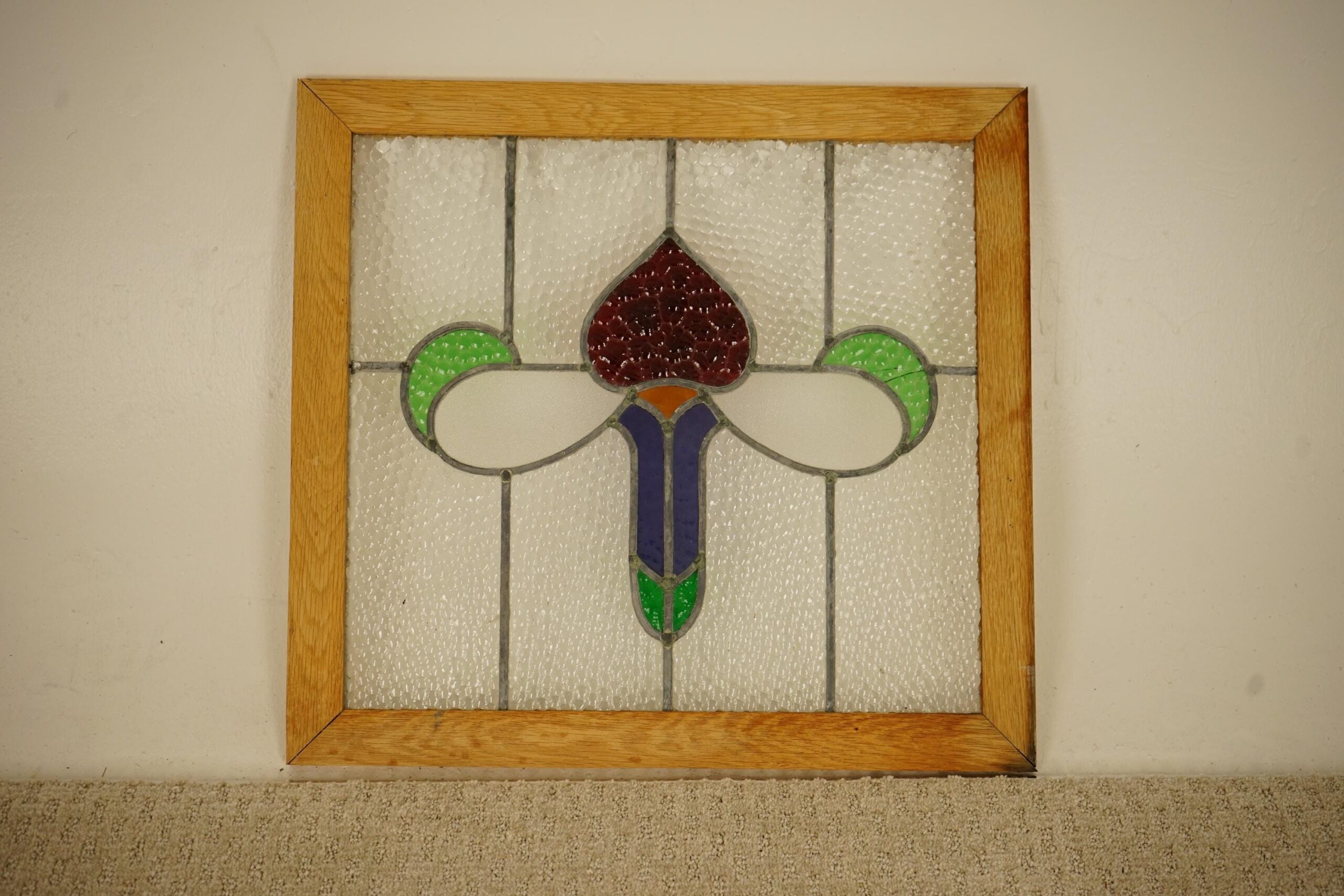 Be the first to review “Antique Oak Framed Leaded Stained Glass Window American 1930 F-1533”