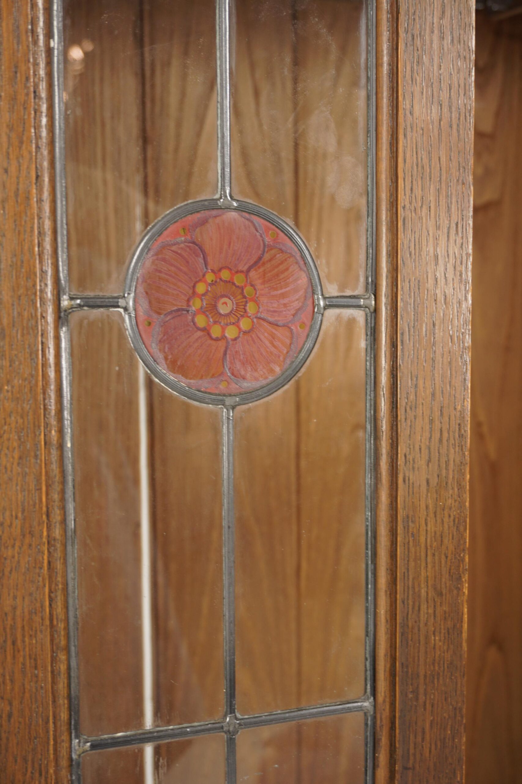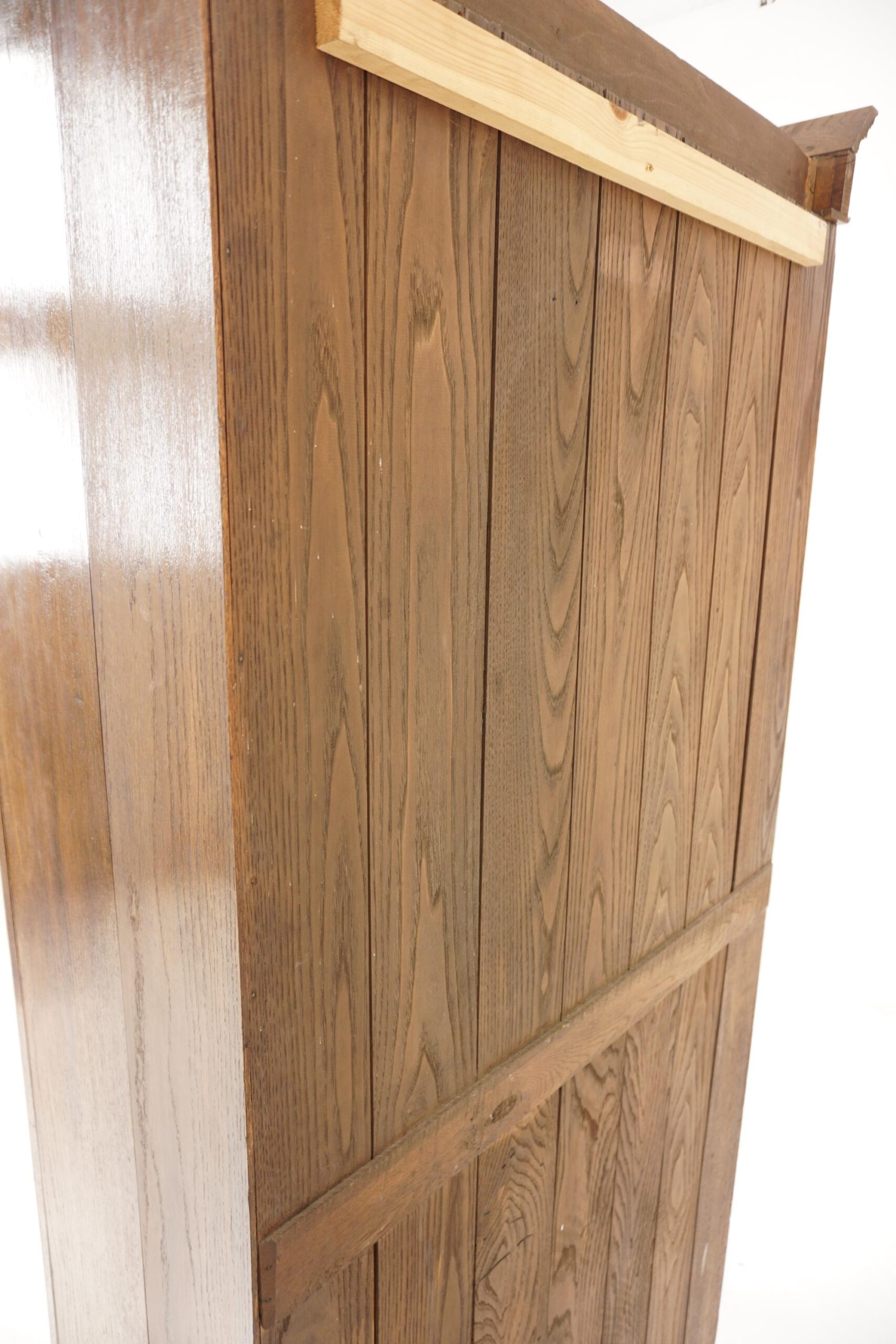 Antique Oak Hall Armoire: Leaded Glass, Arts & Crafts Wardrobe, Scotland 1910
