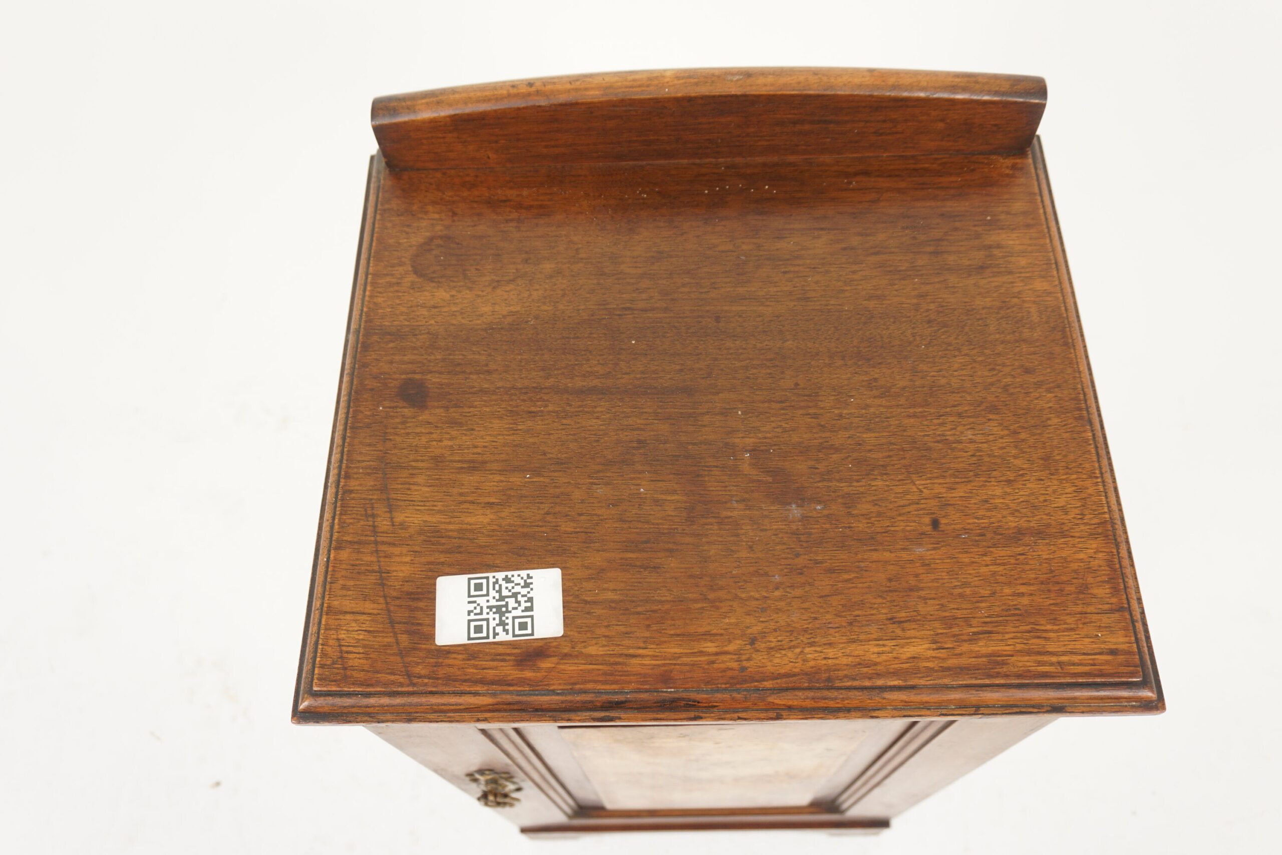 Antique Walnut Nightstand, Sheraton Revival Inlaid Walnut Bedside Table, Antique Furniture, Scotland 1900, F-969