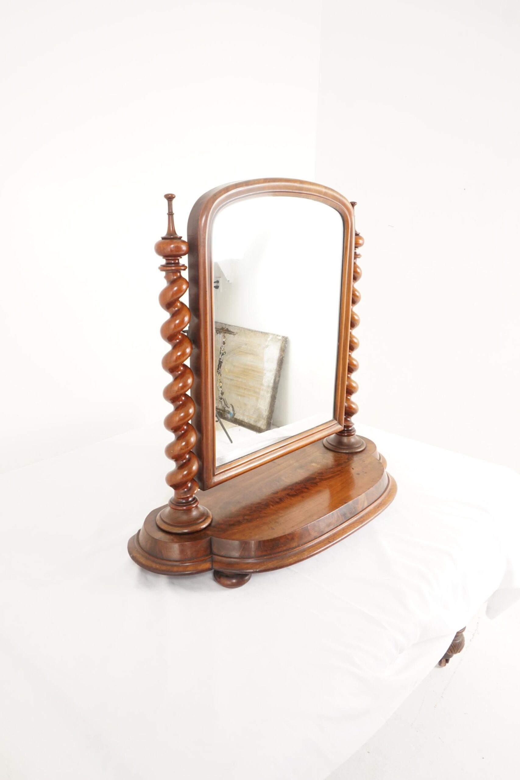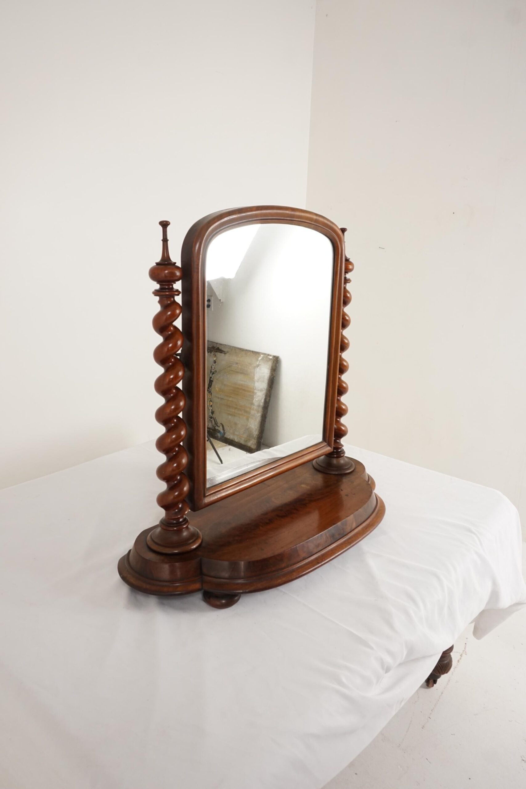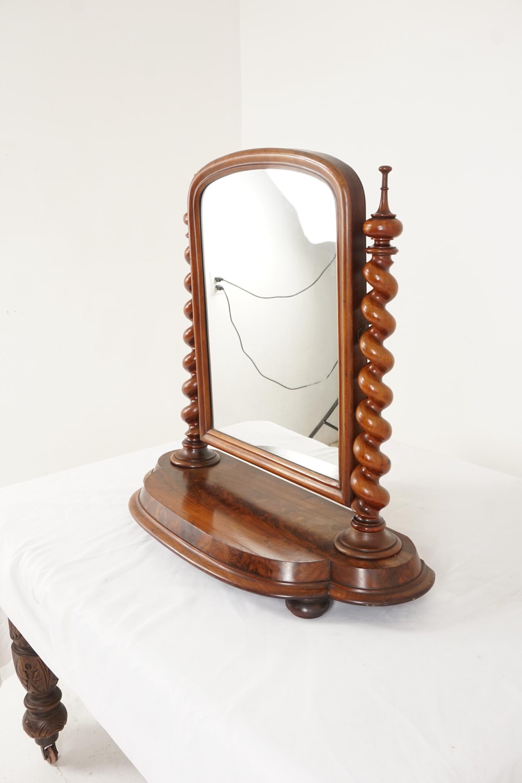 Antique Victorian Barley Twist Walnut Dressing Table Vanity Mirror Scotland 1880 F-144