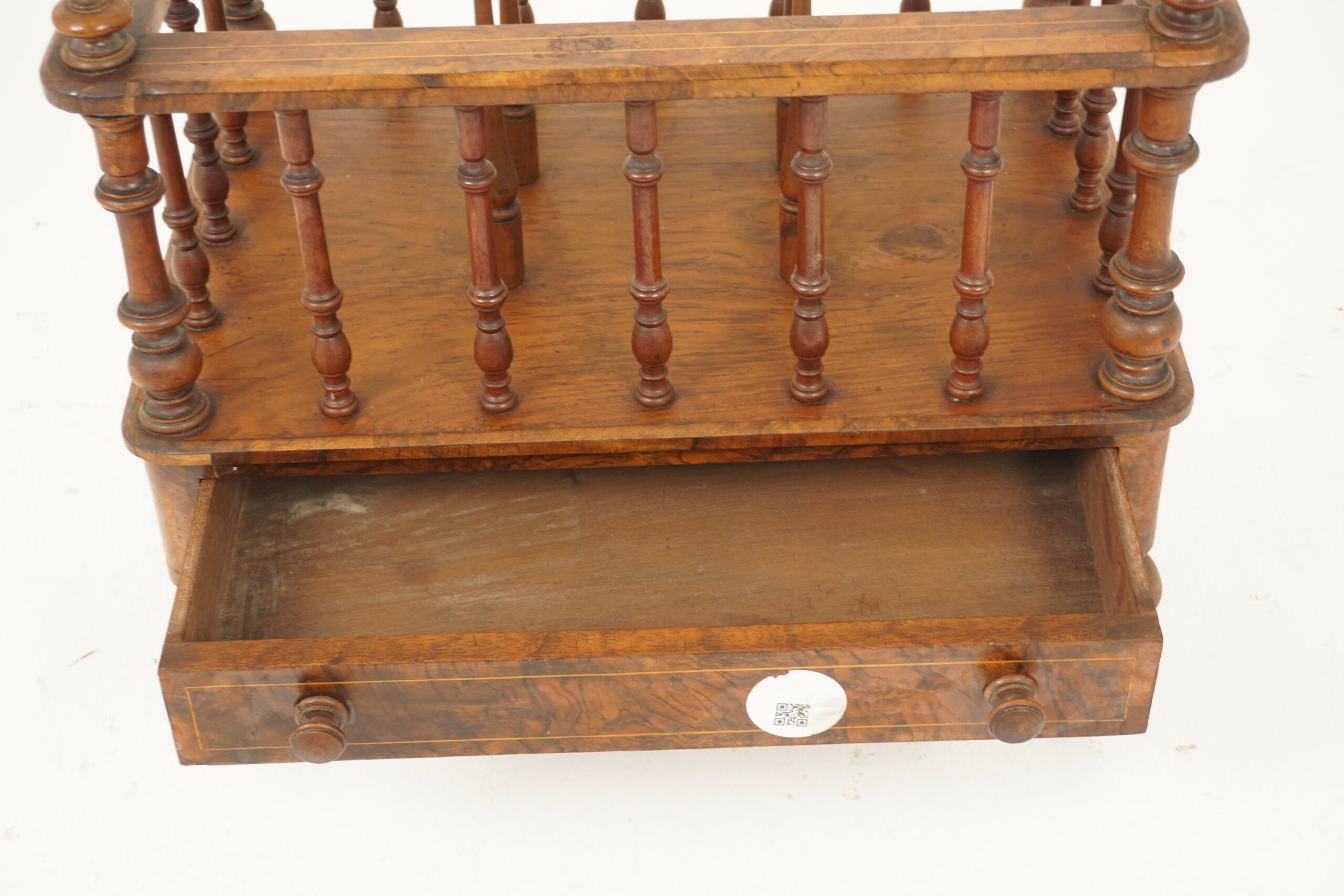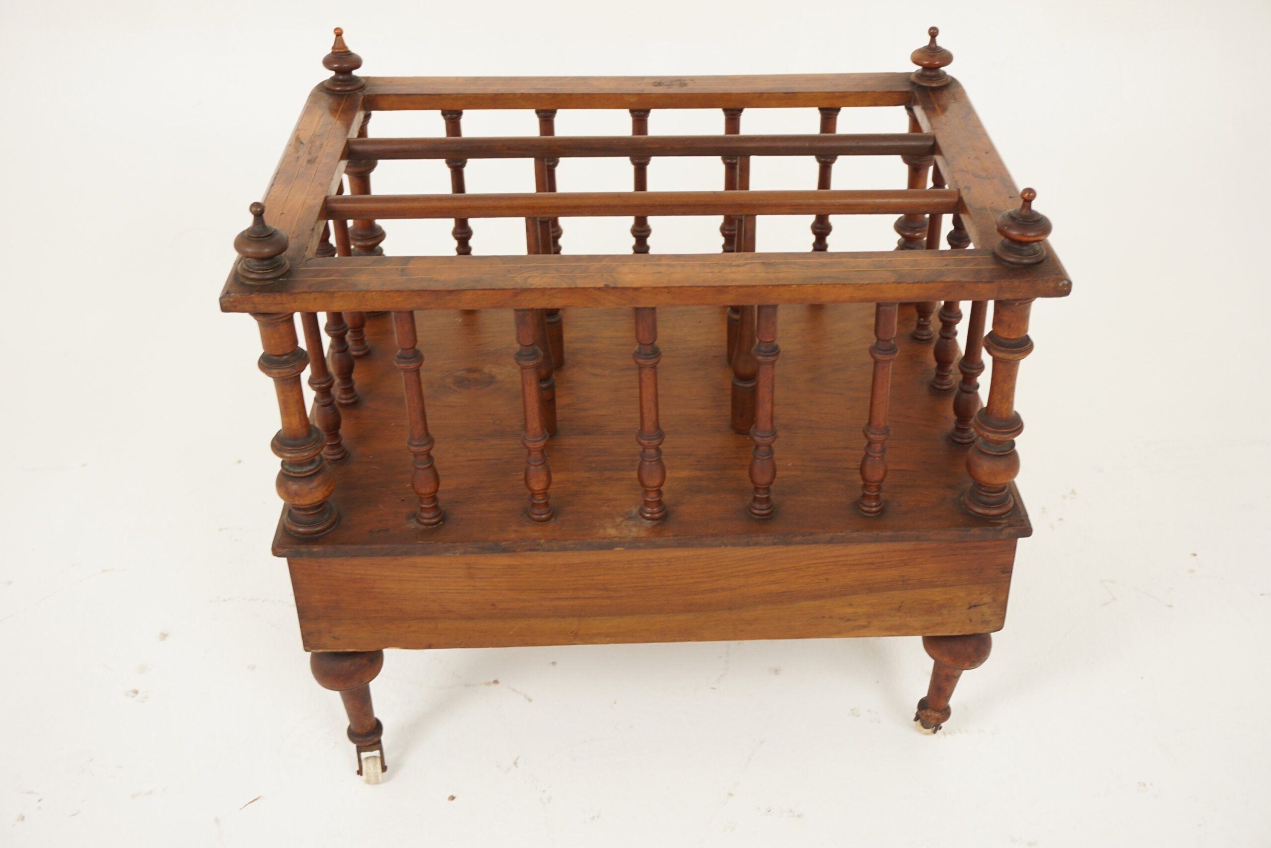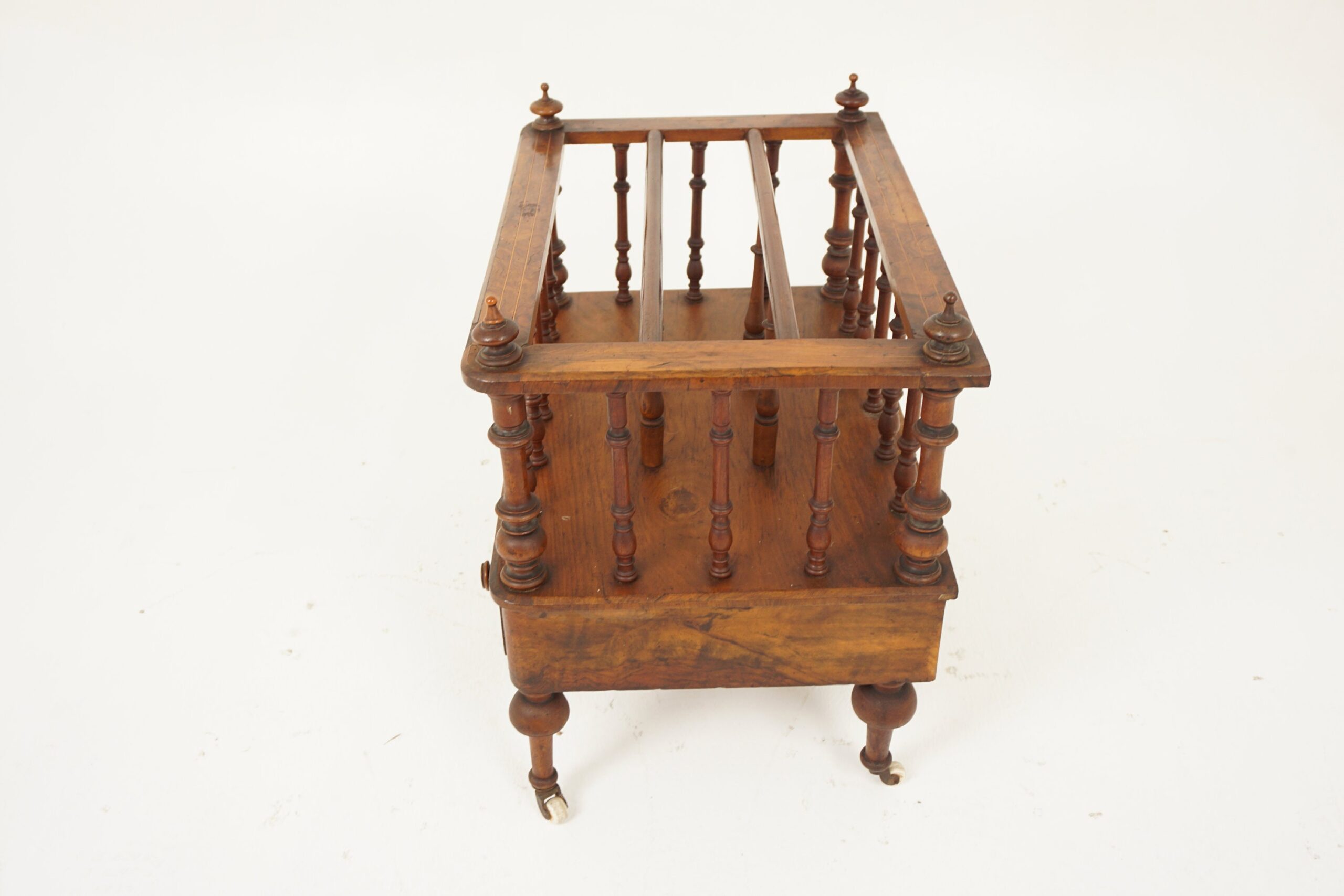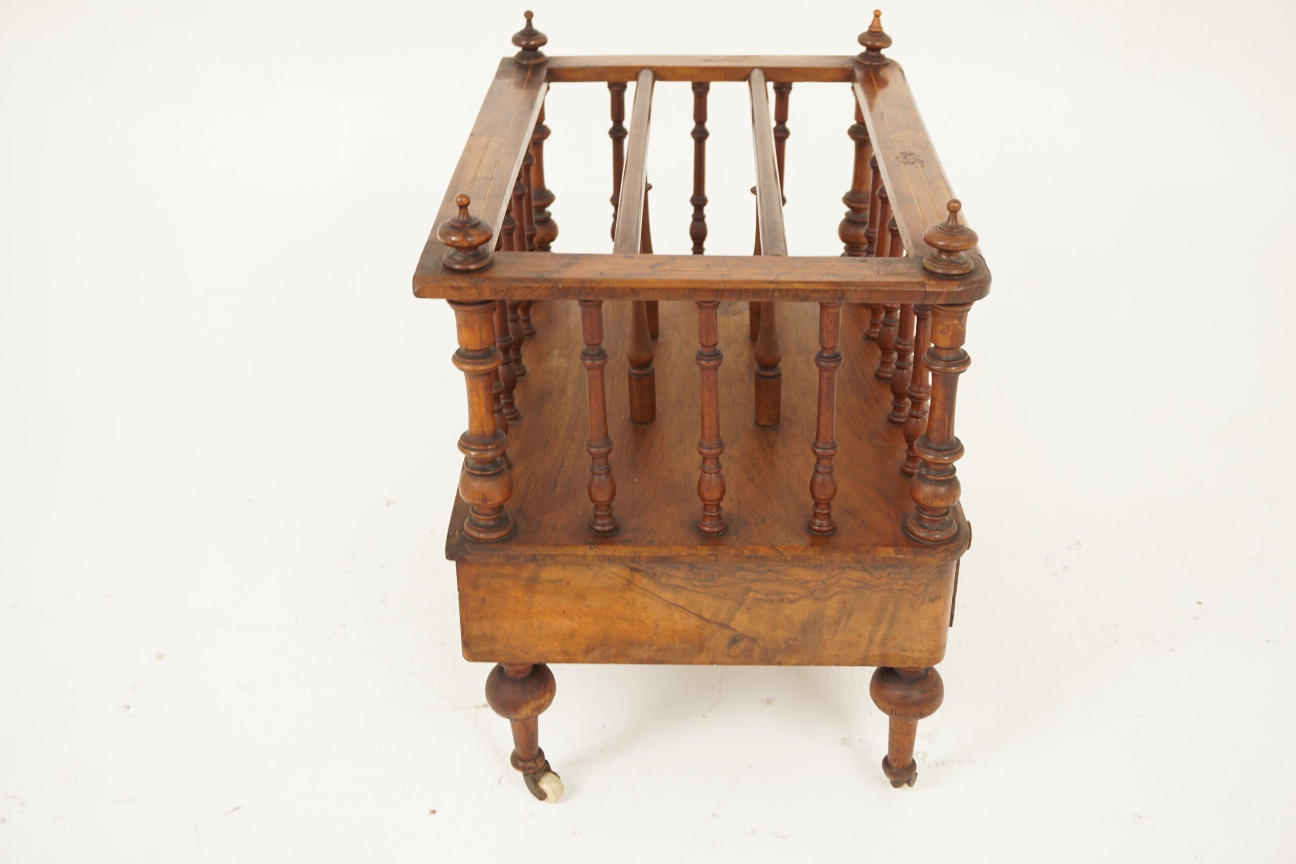 Antique Victorian Burr Walnut Inlaid Canterbury Music Cabinet, Magazine Holder, Scotland 1880 F-1058