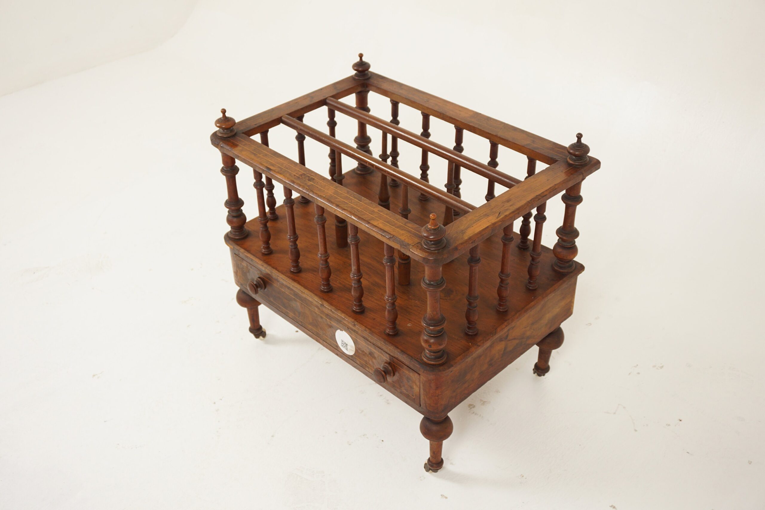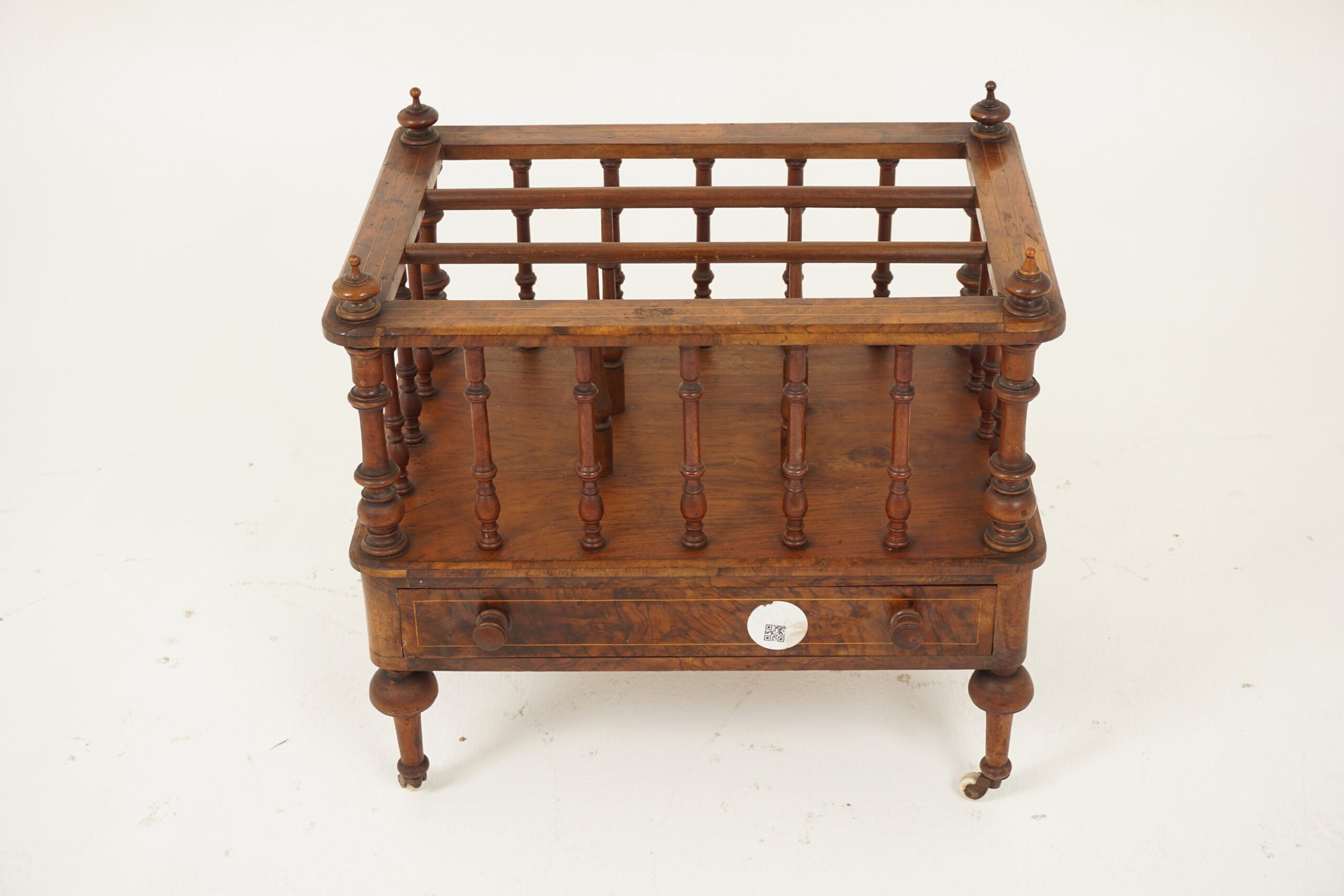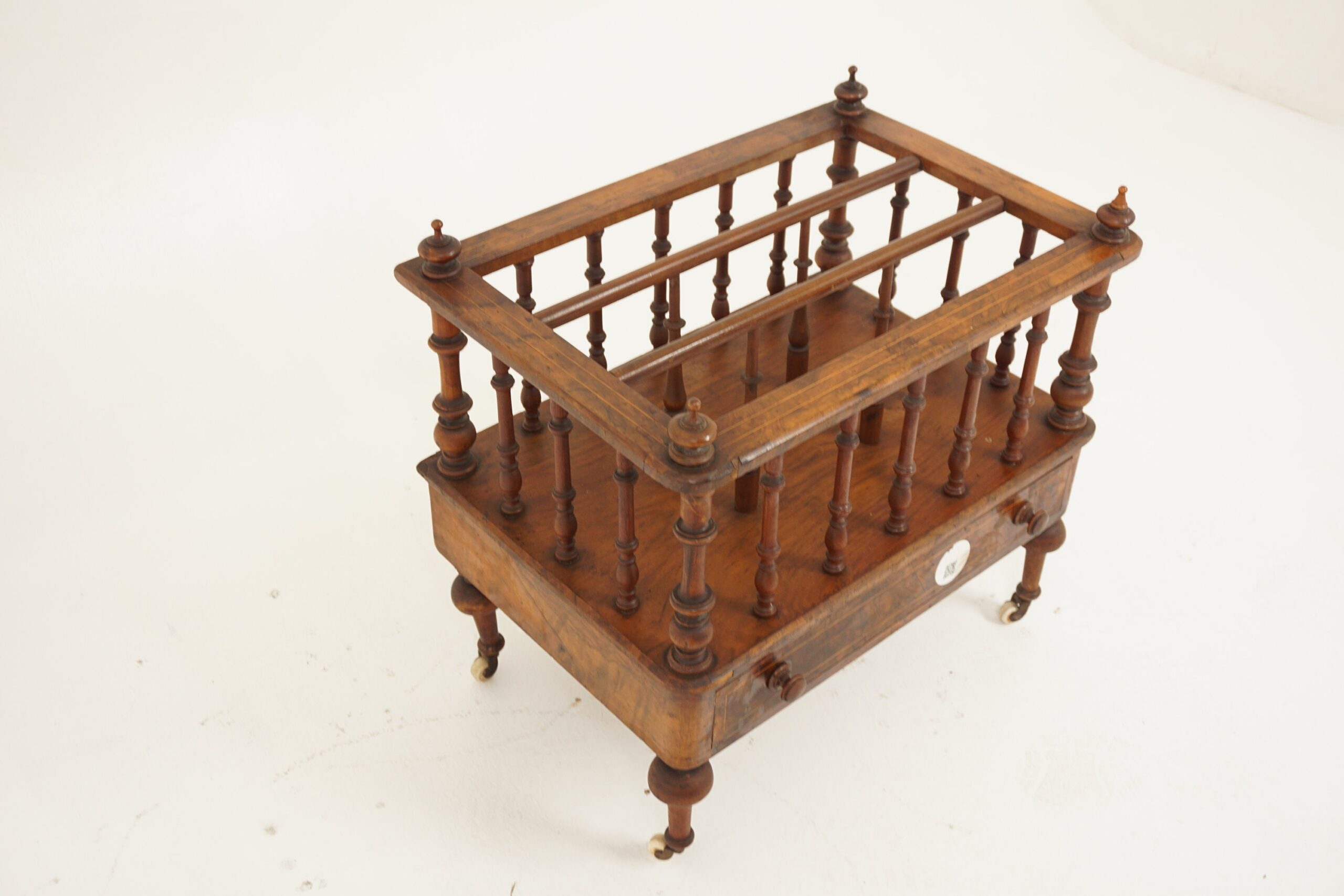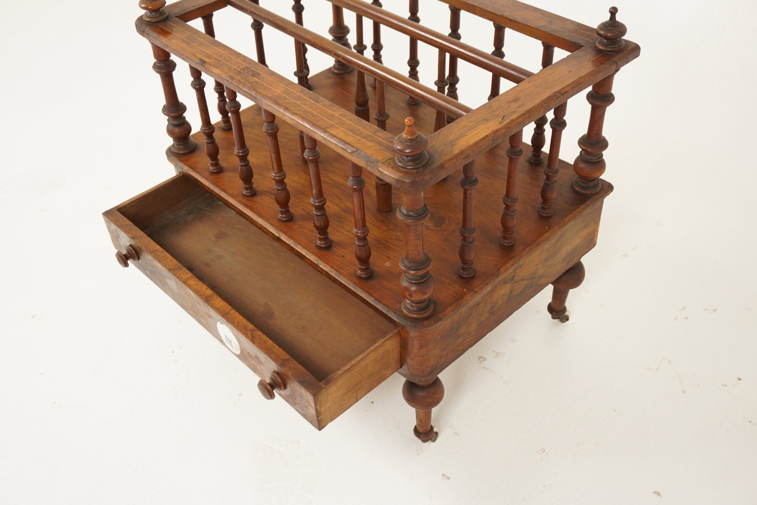 Antique Victorian Burr Walnut Inlaid Canterbury Music Cabinet, Magazine Holder, Scotland 1880 F-1058