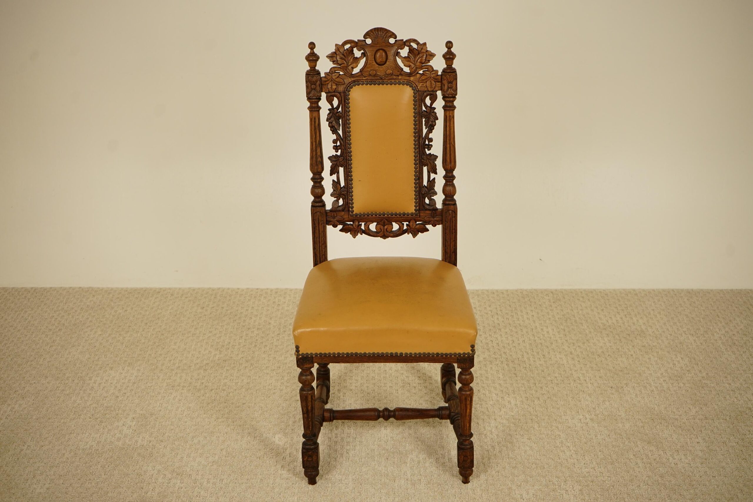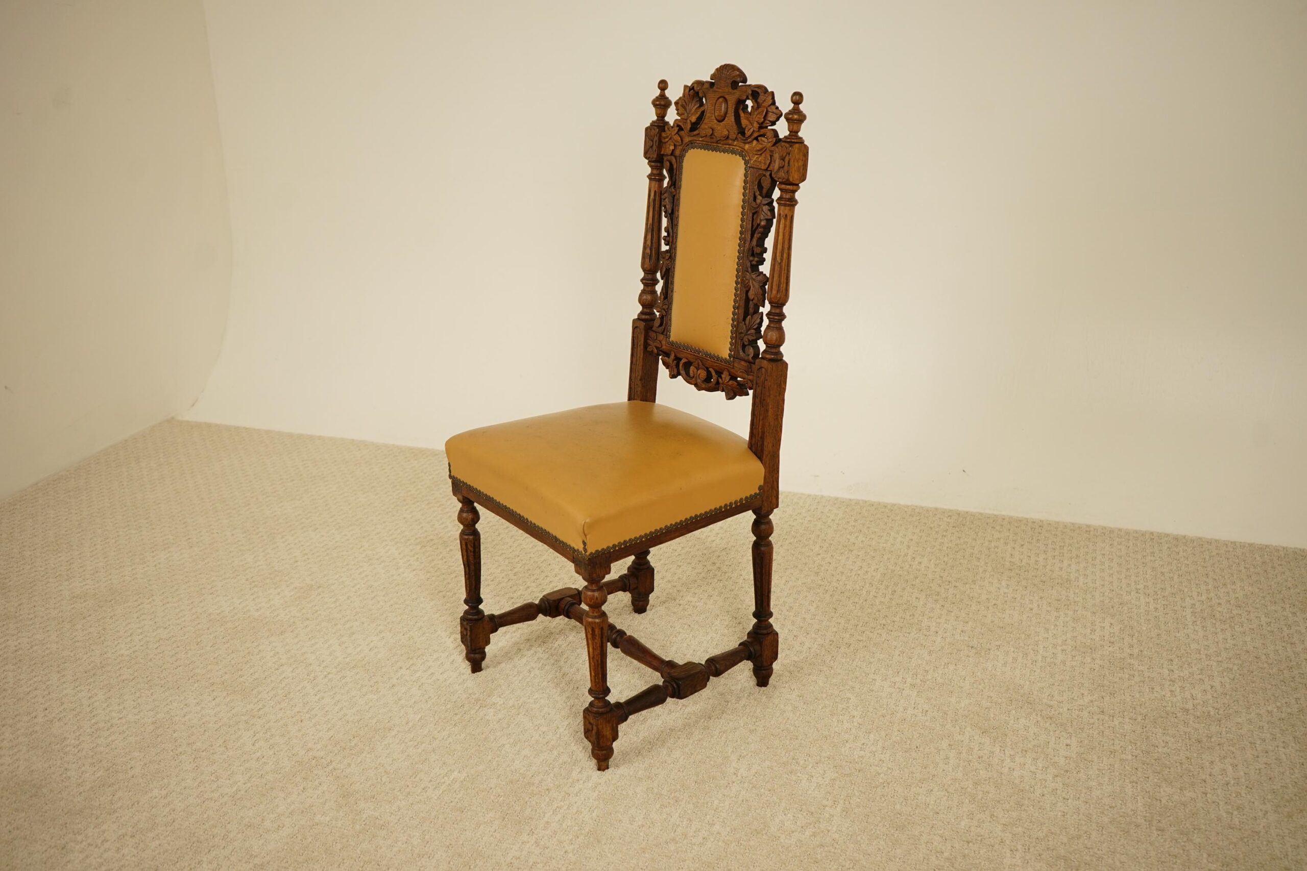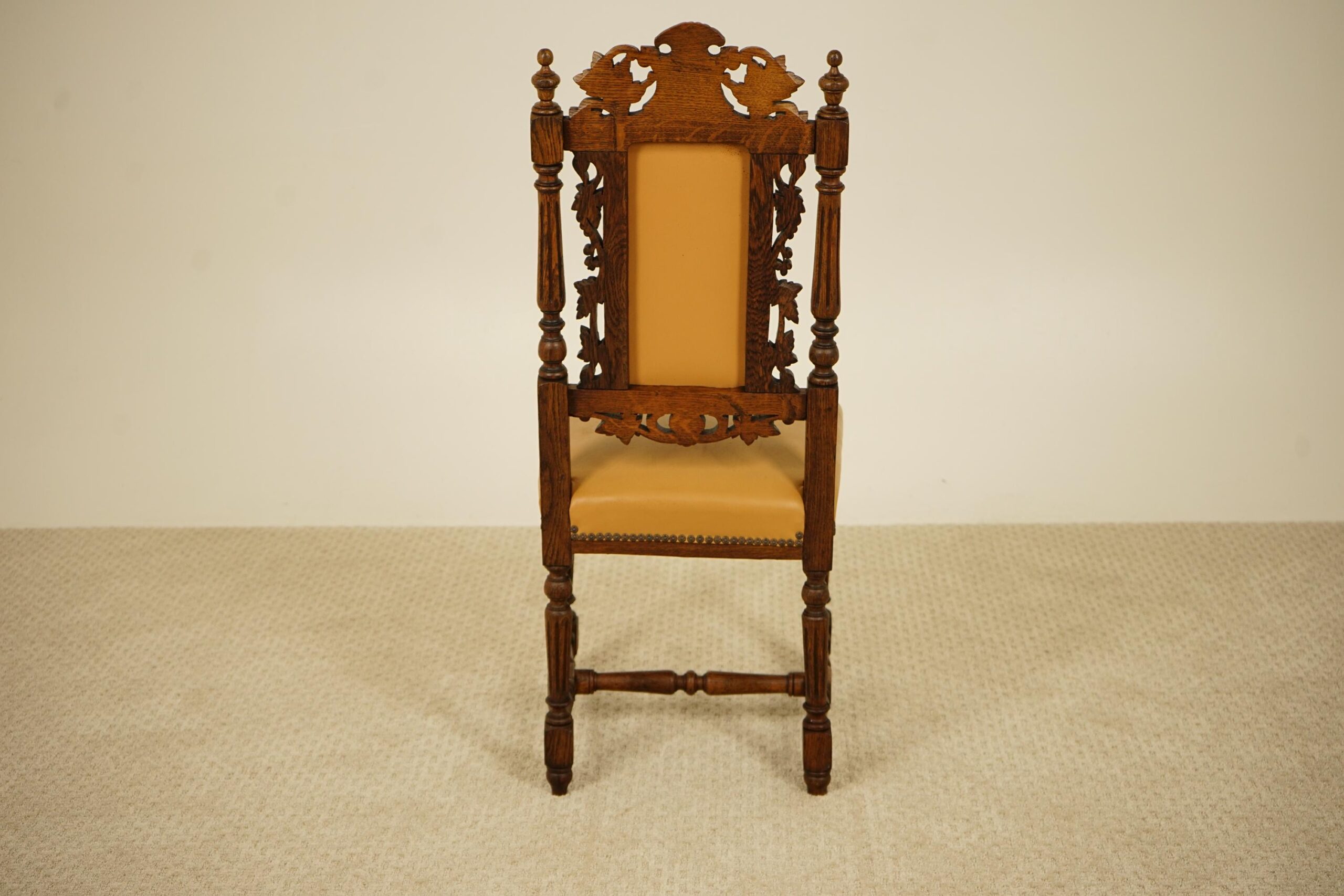 Antique Victorian Carved Oak Hall Chair Scotland 1870 F–1564