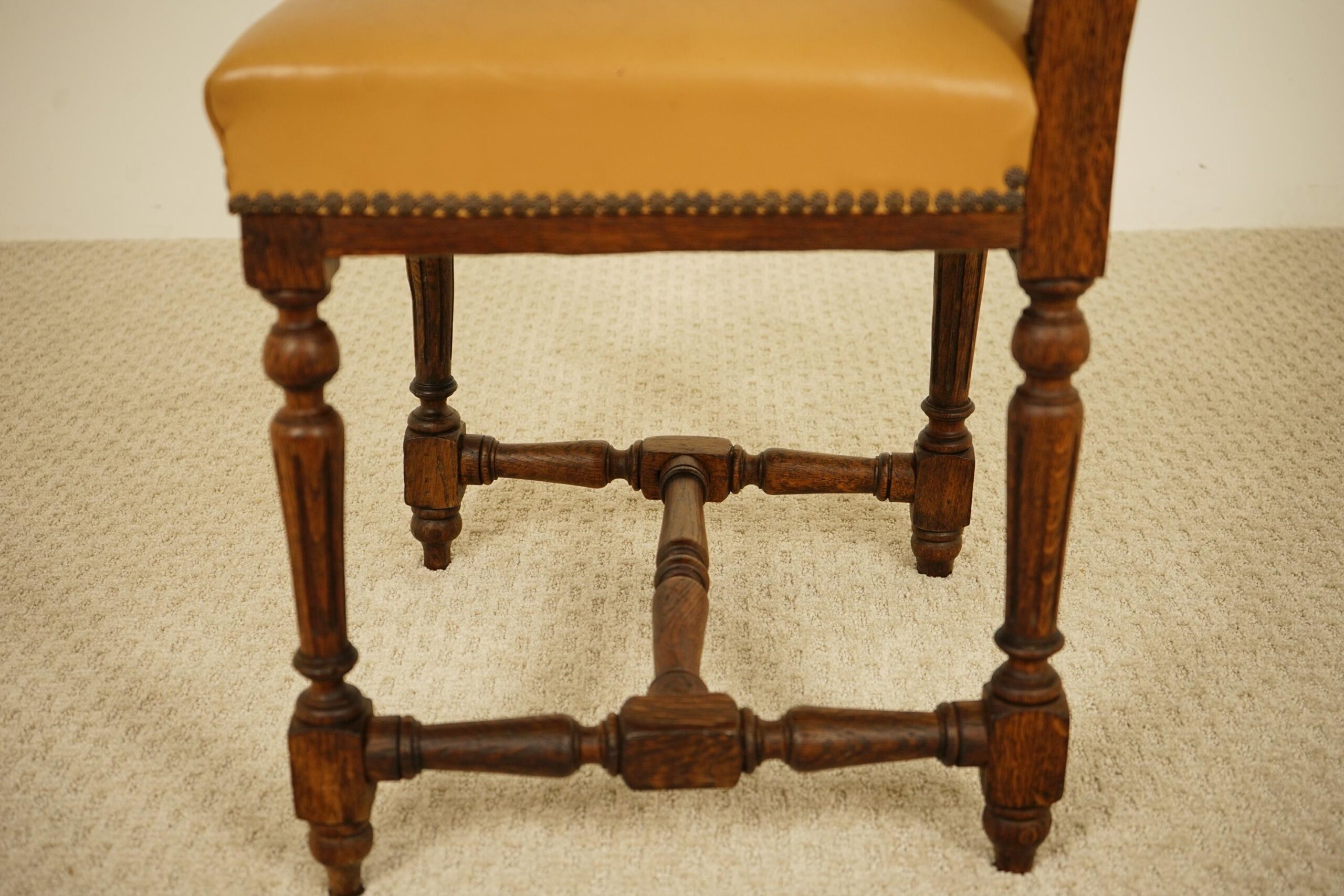All above the finely upholstered leather seat raised on decorative turned legs