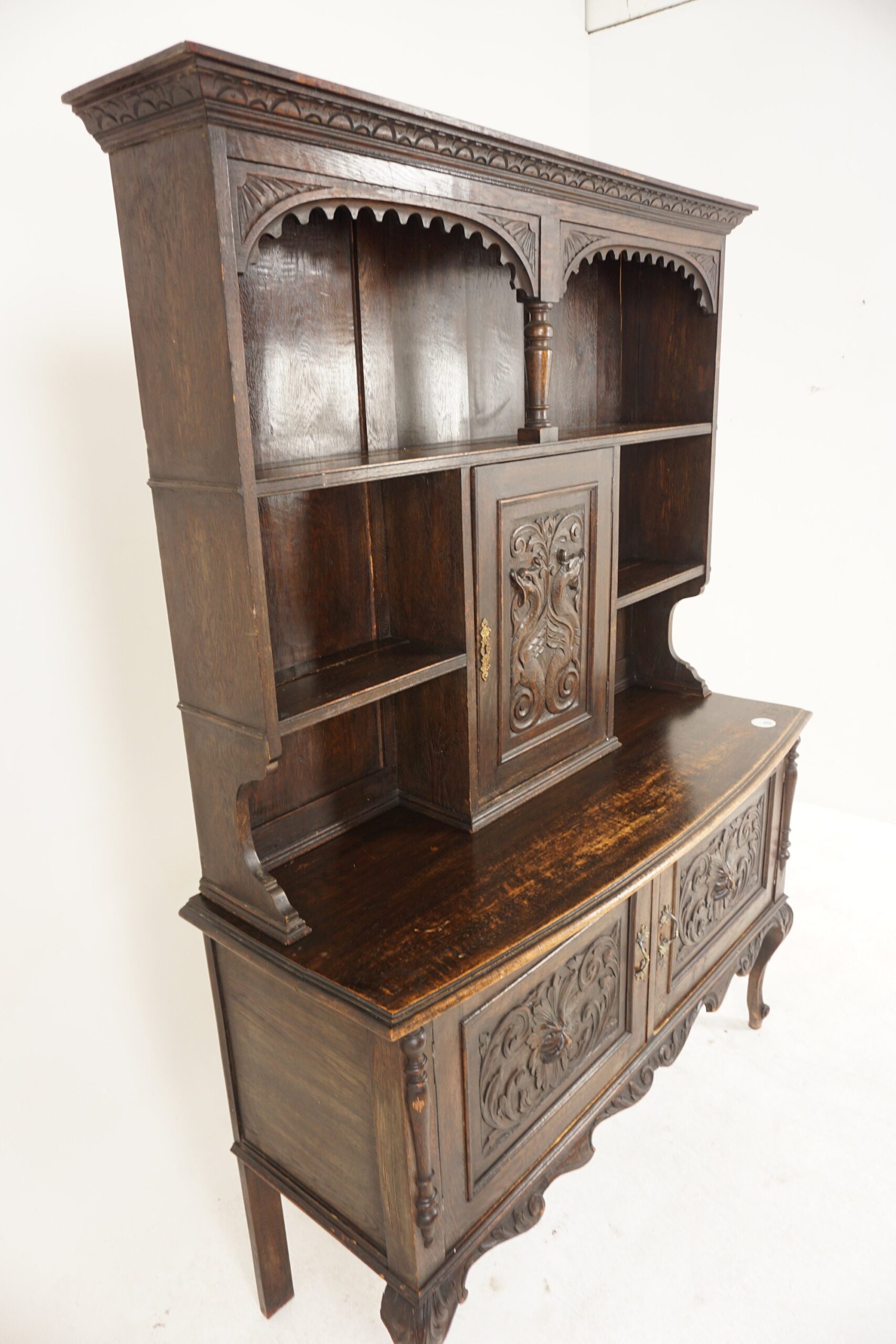 Antique Victorian Carved Oak Welsh Dresser, Green Man, Buffet Hutch Sideboard, Scotland 1880 F-1039