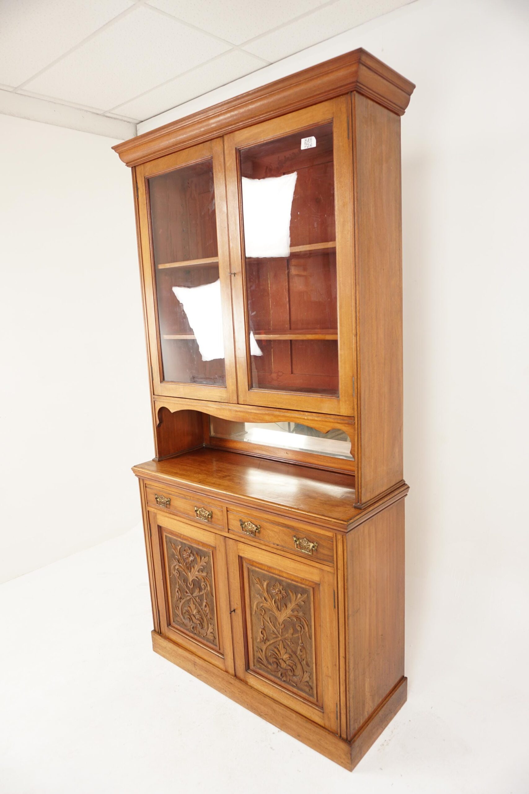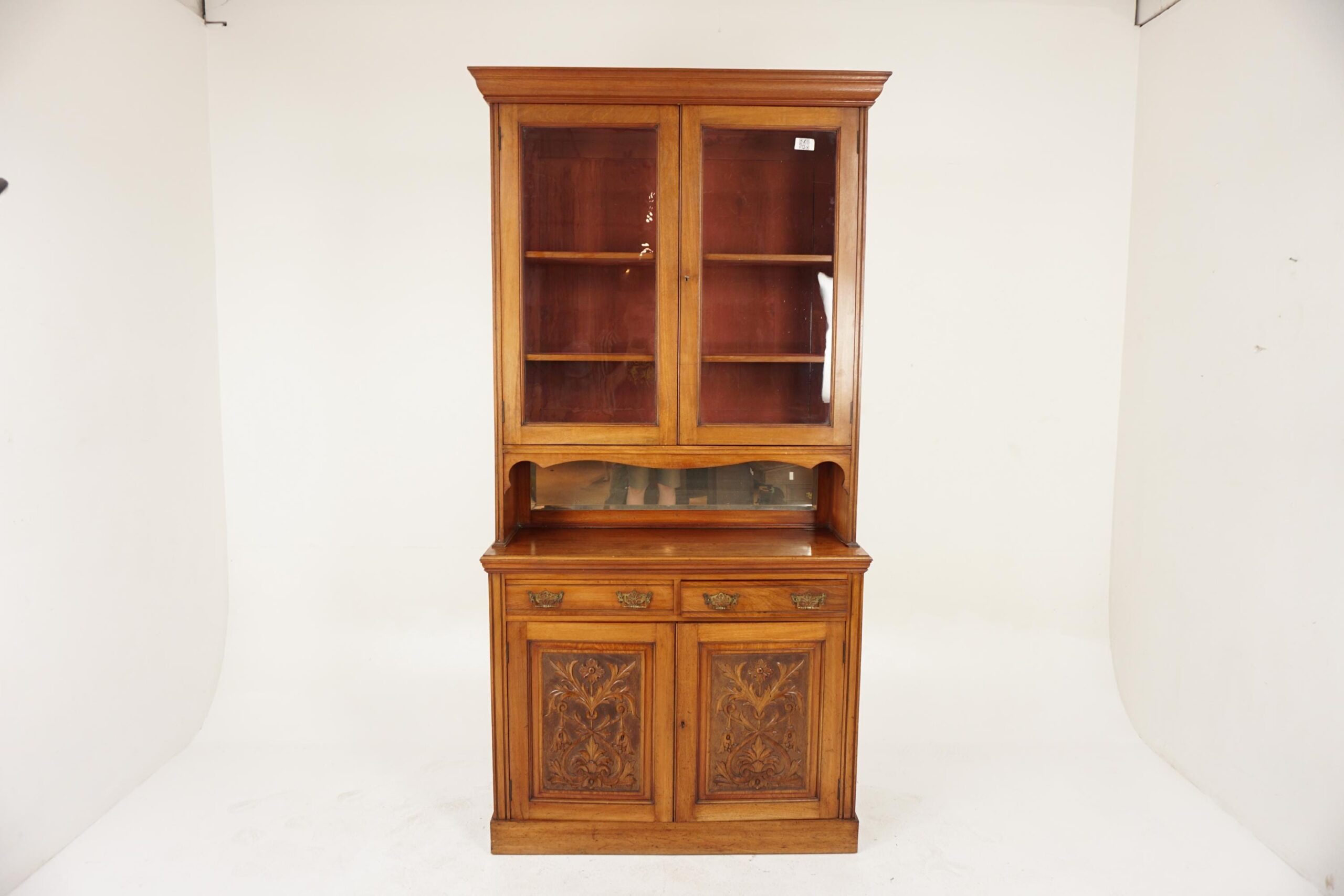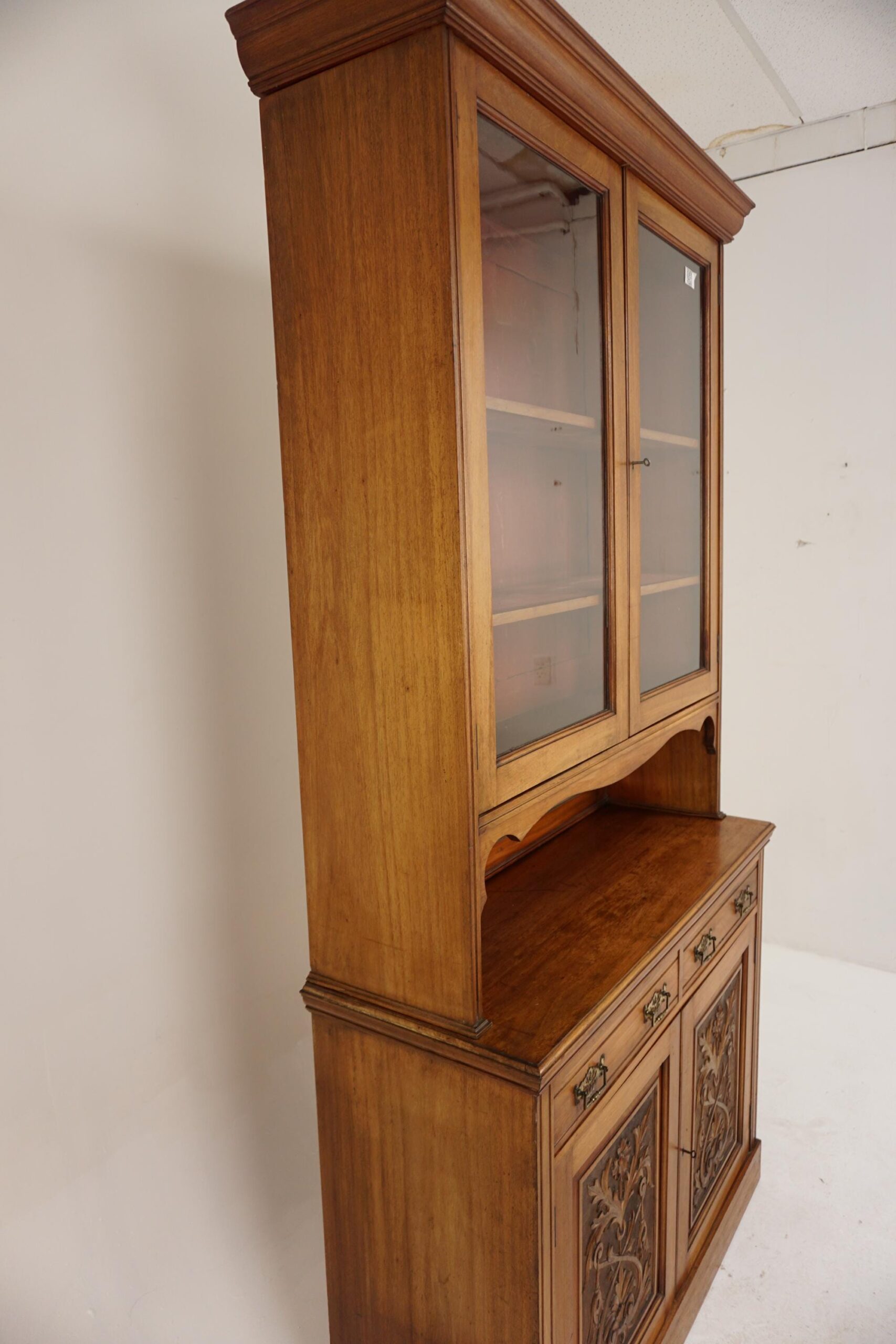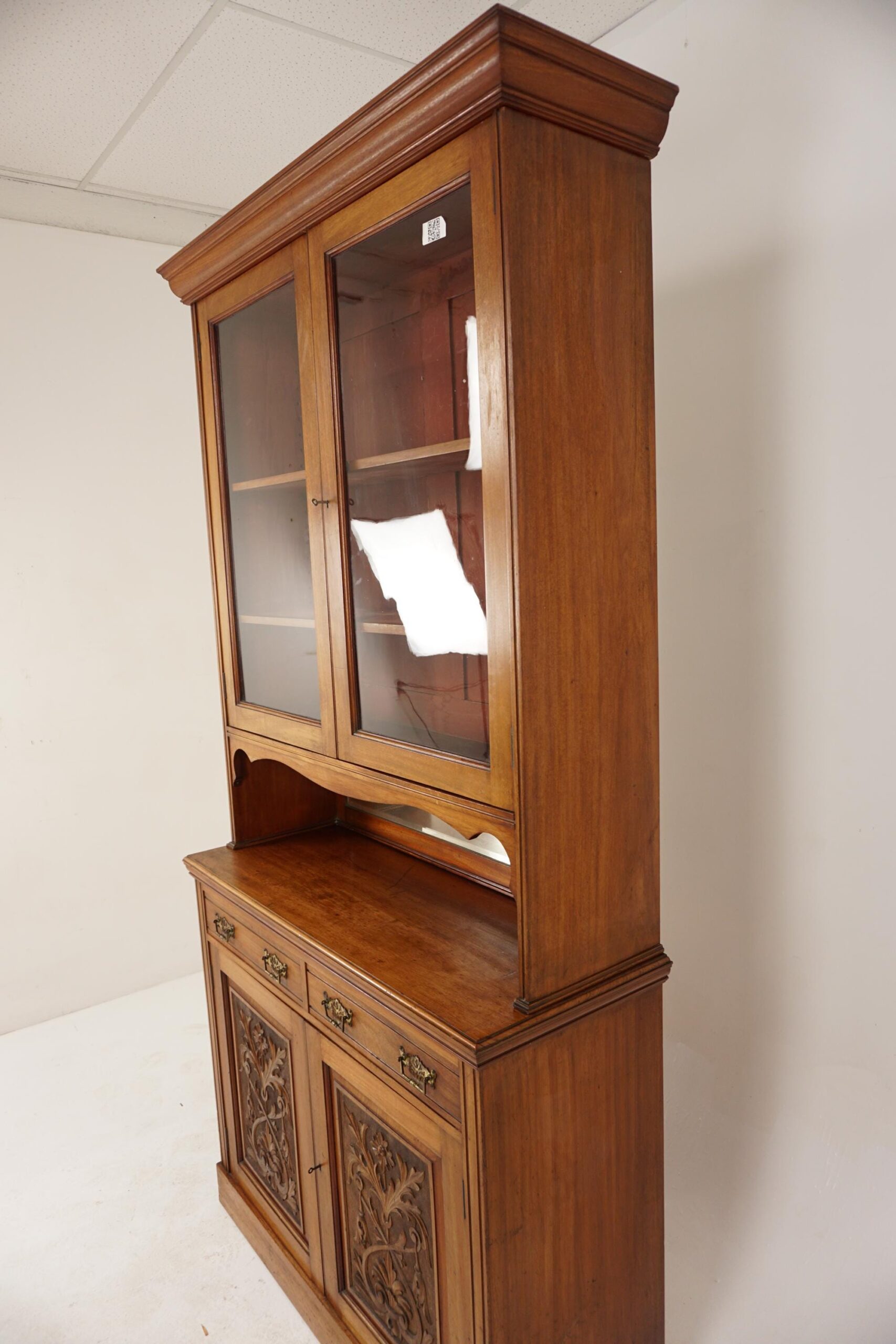 Antique Victorian Carved Walnut 4 Door Cabinet Bookcase Display, Scotland 1870, H997