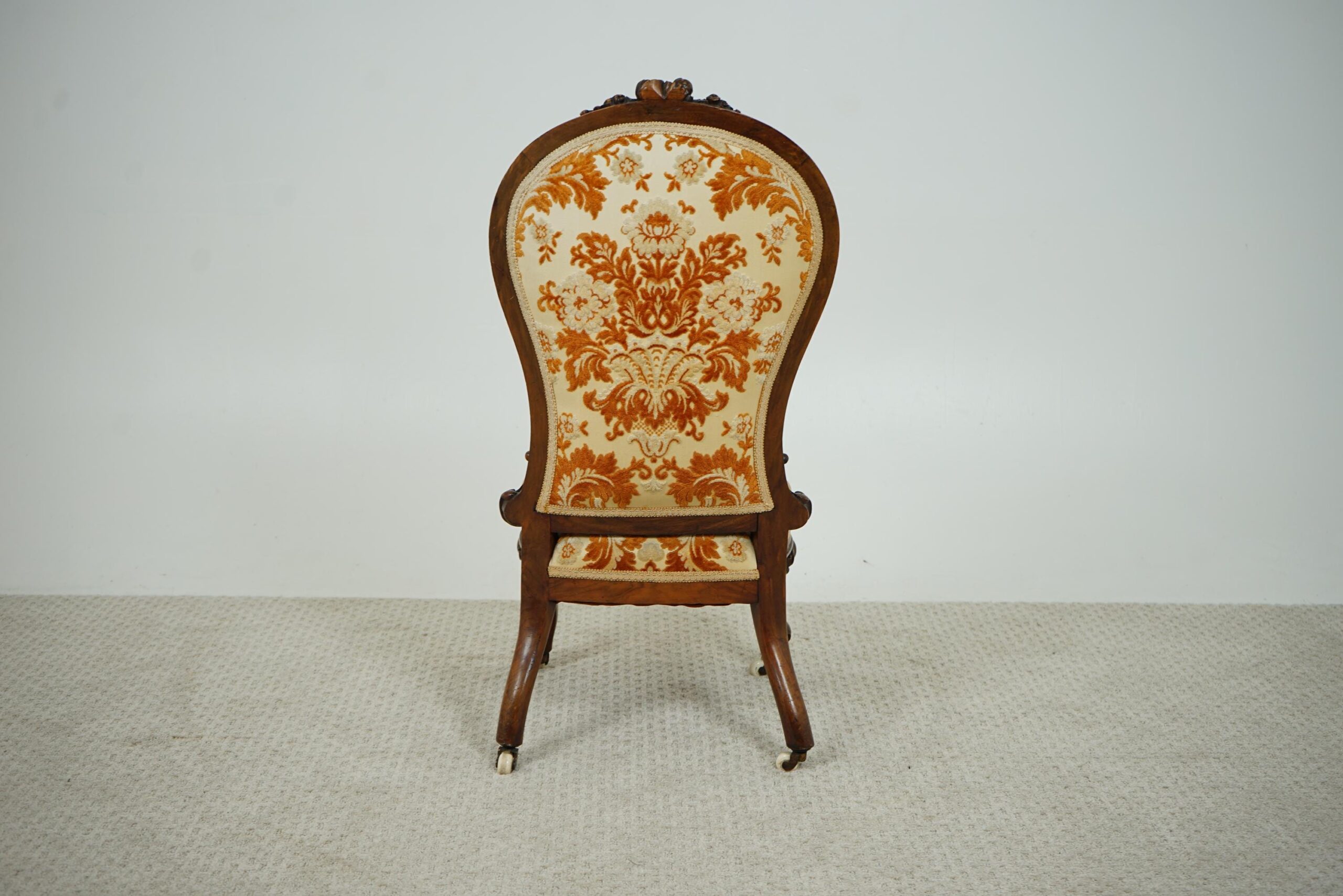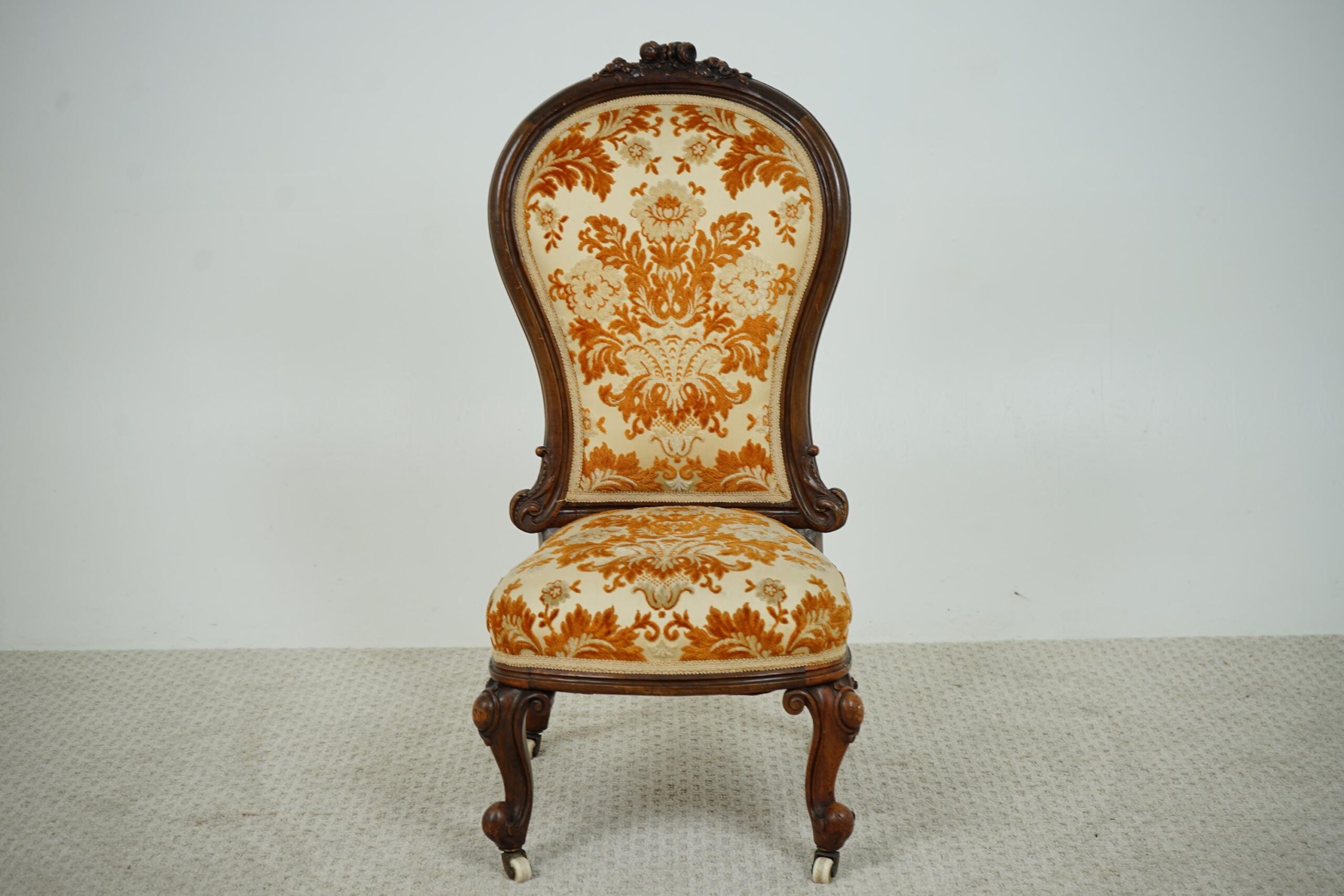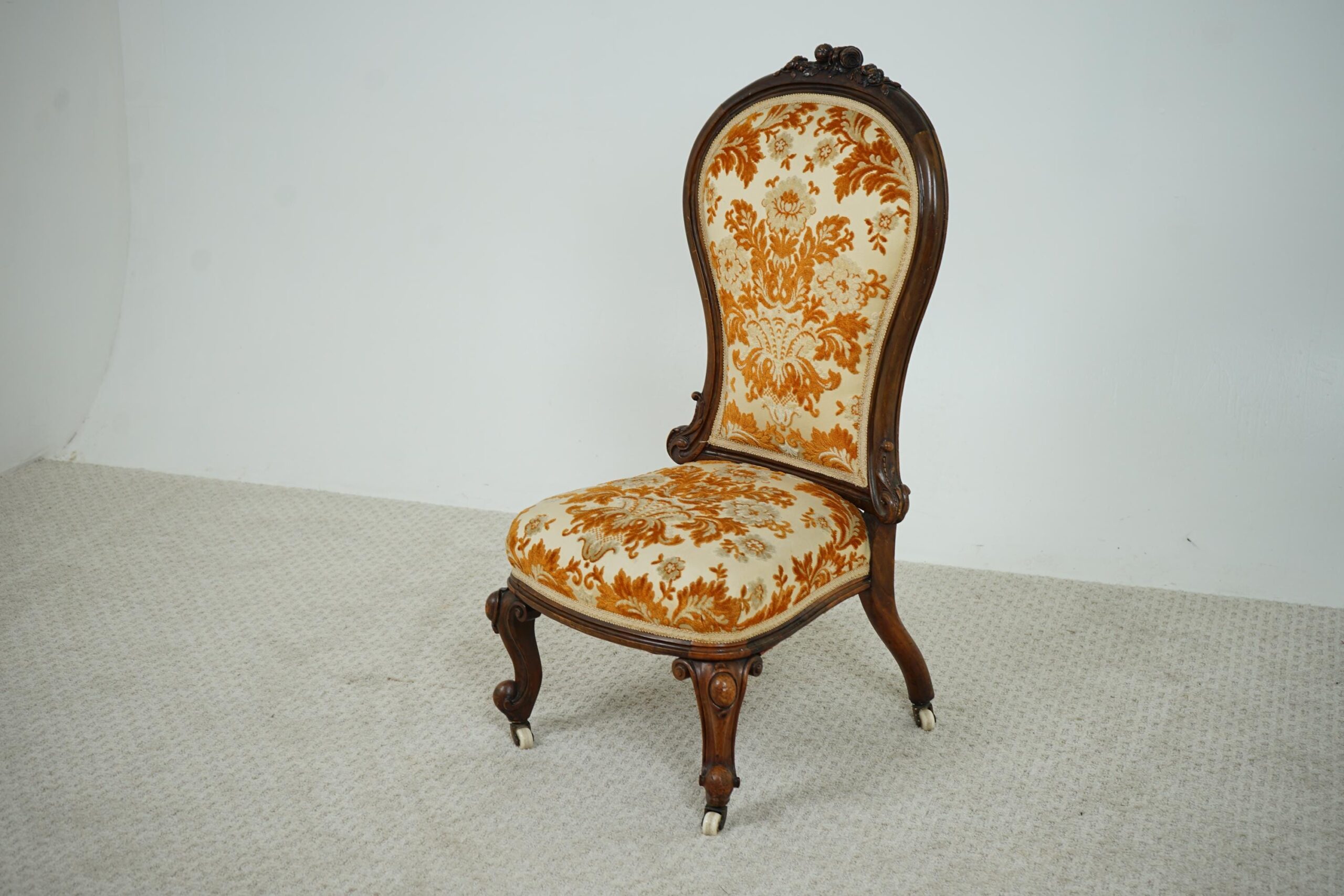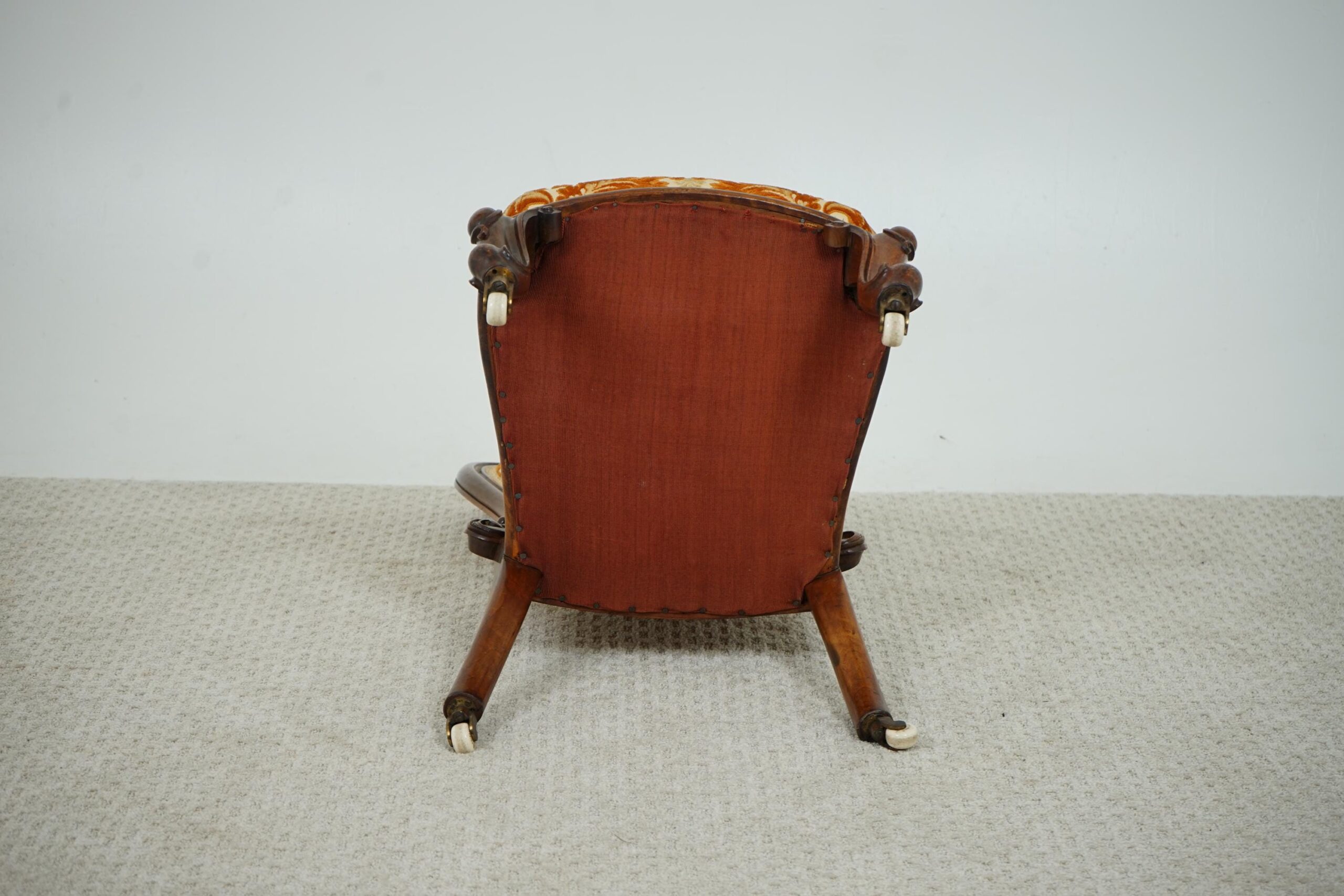 Antique Victorian Carved Walnut Nursing, Slipper Chair Scotland 1870 F-1607