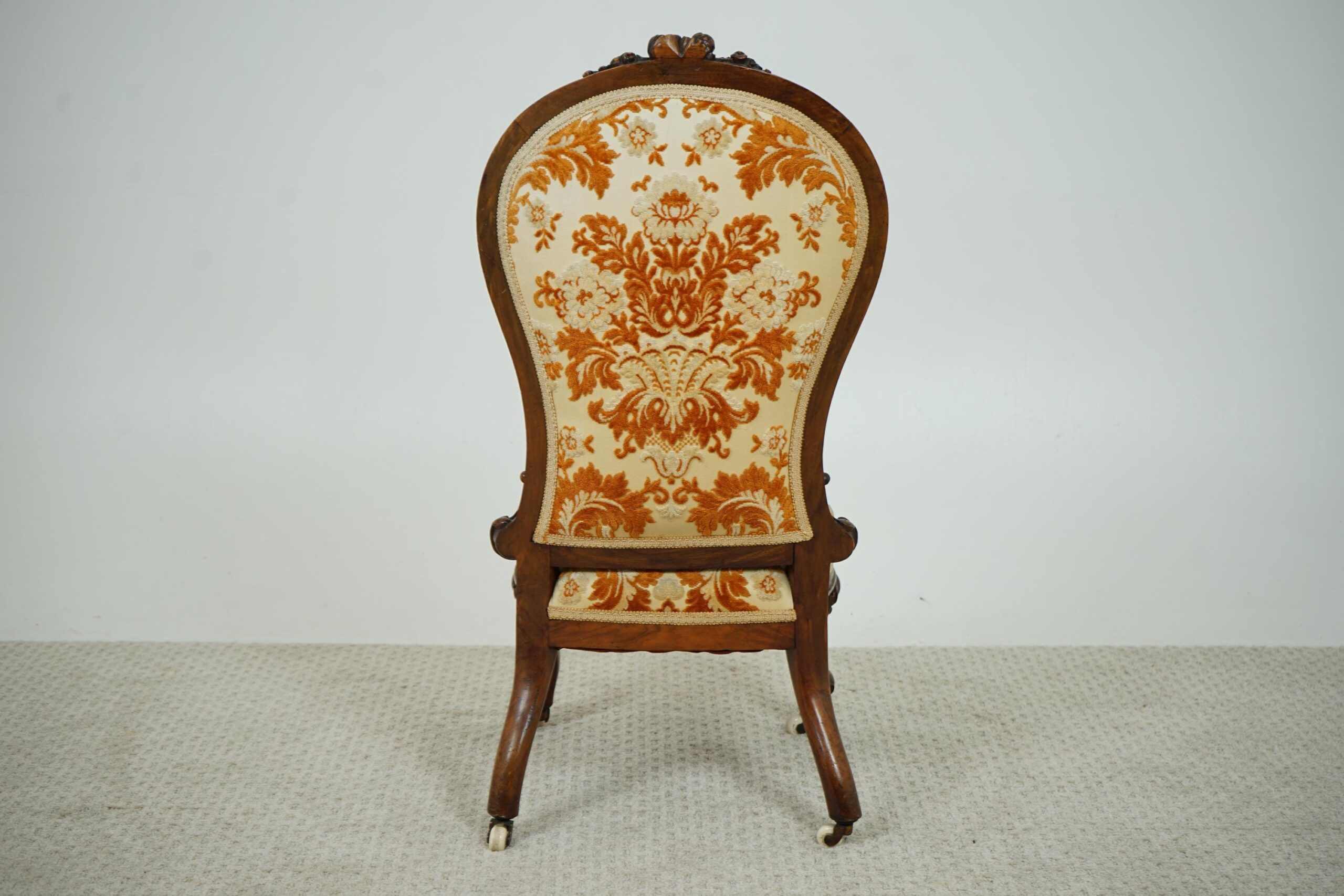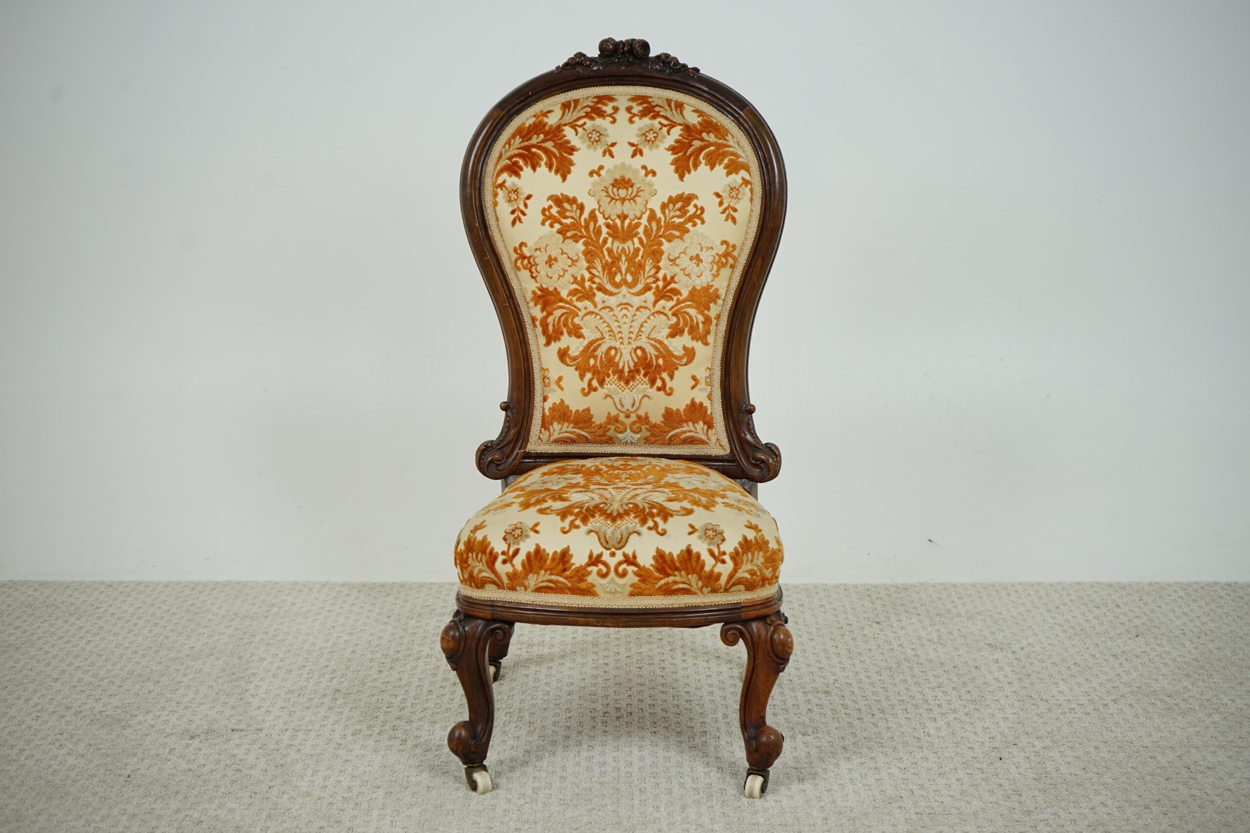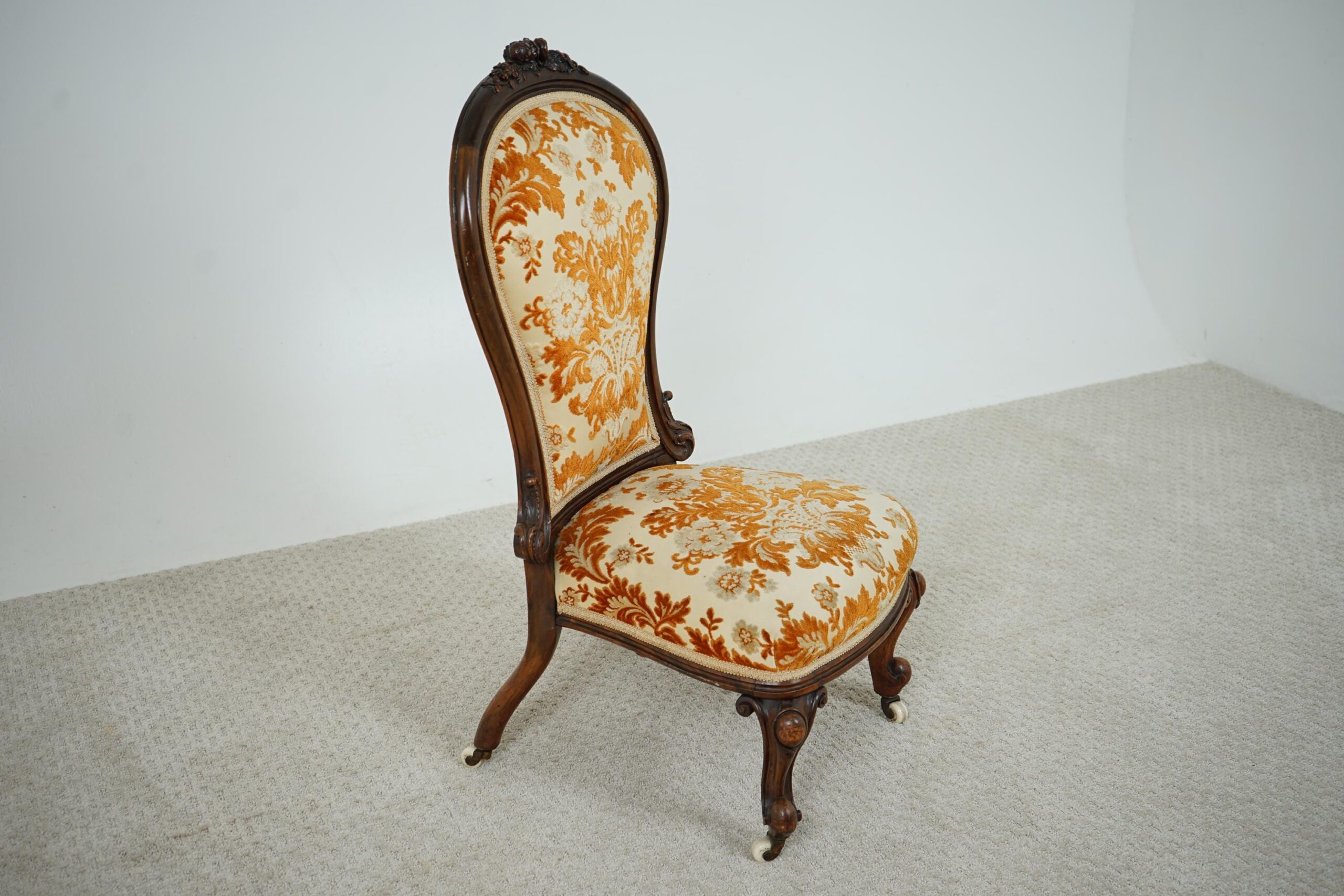 Antique Victorian Carved Walnut Nursing, Slipper Chair Scotland 1870 F-1607