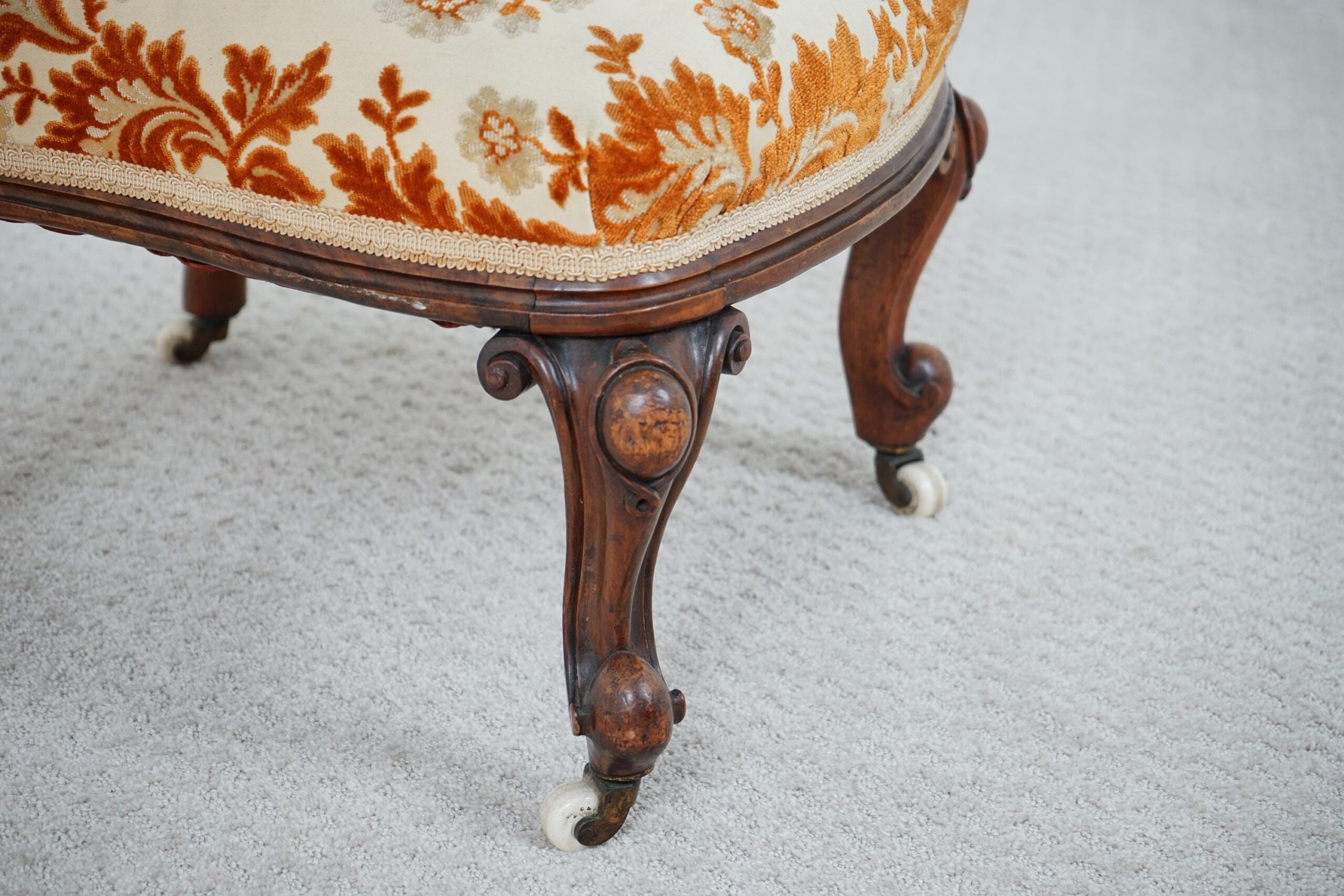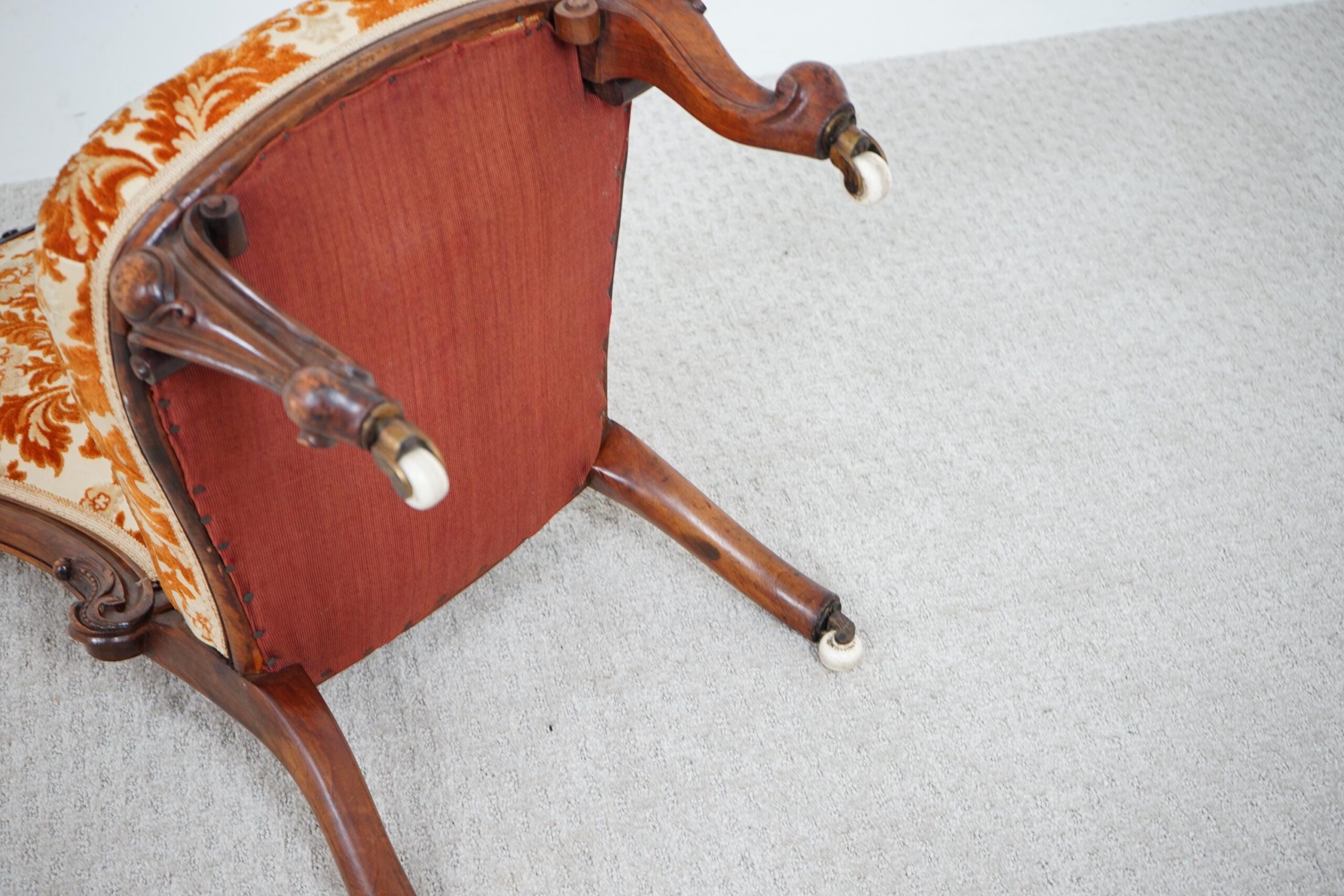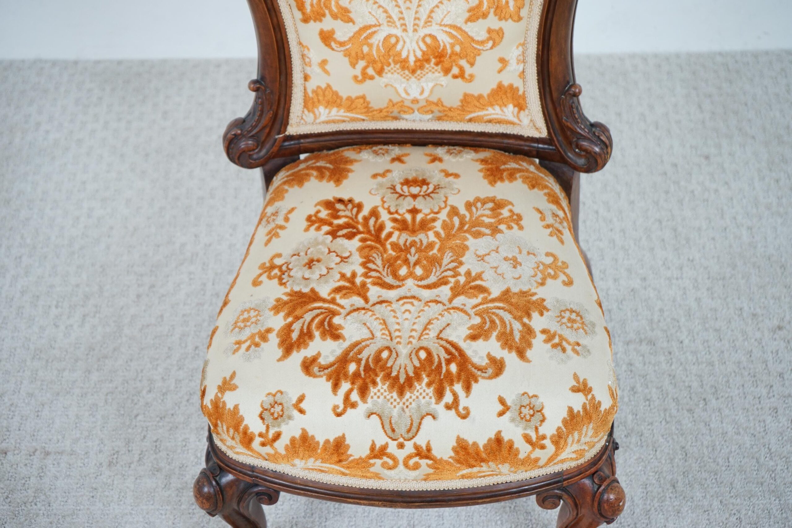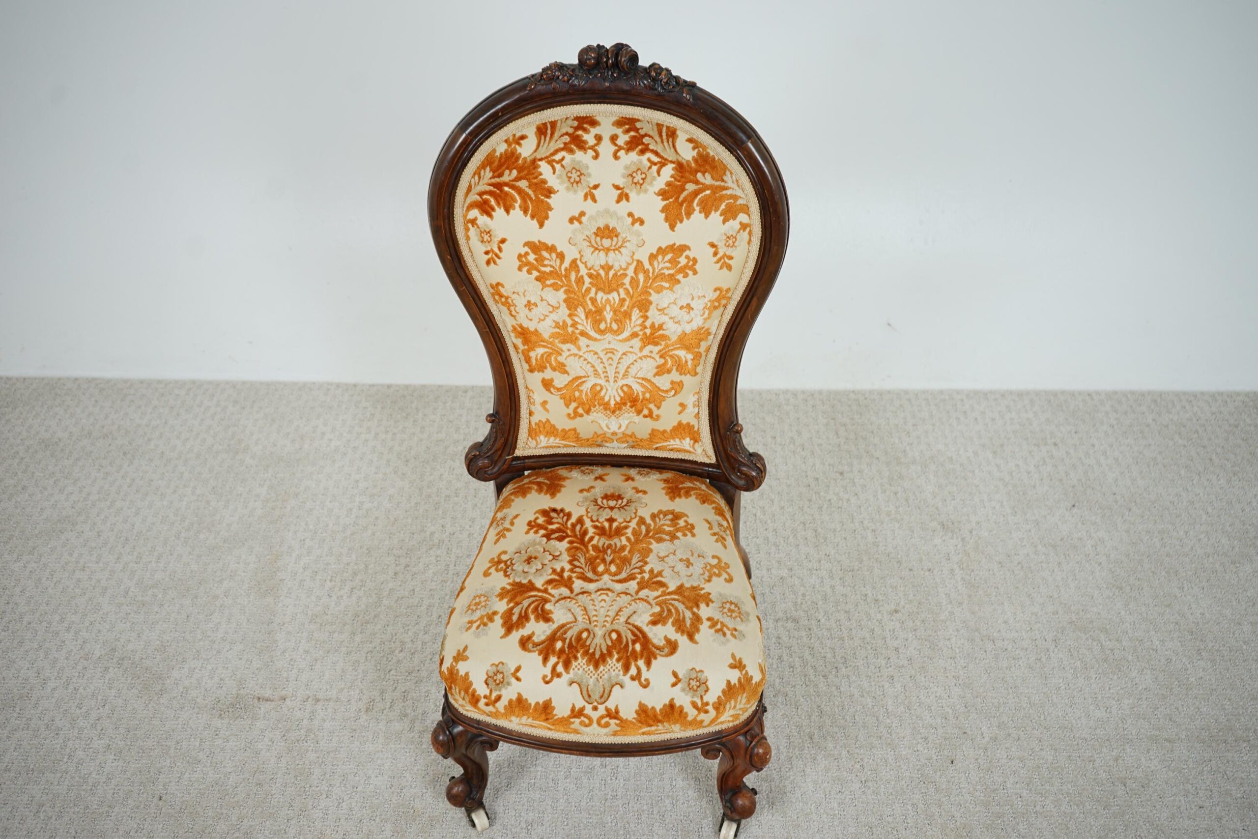 Antique Victorian Carved Walnut Nursing, Slipper Chair Scotland 1870 F-1607