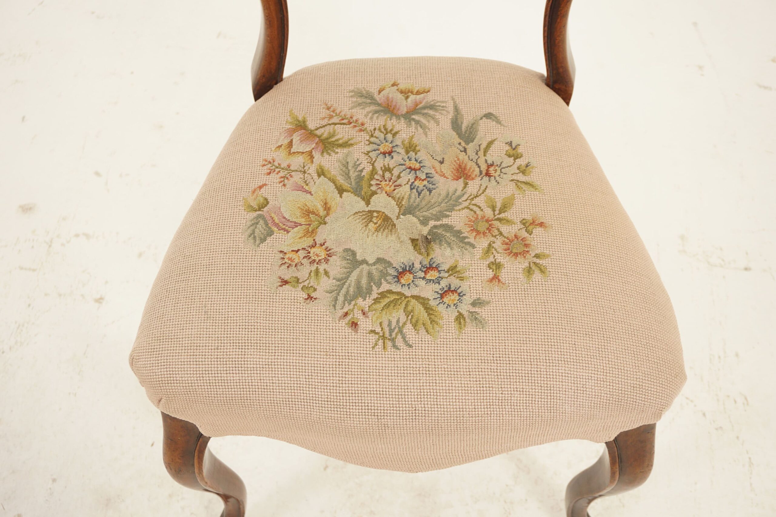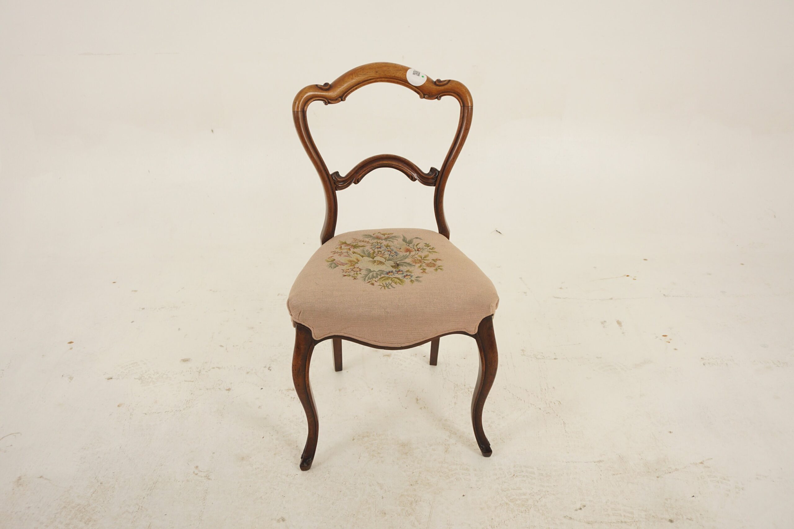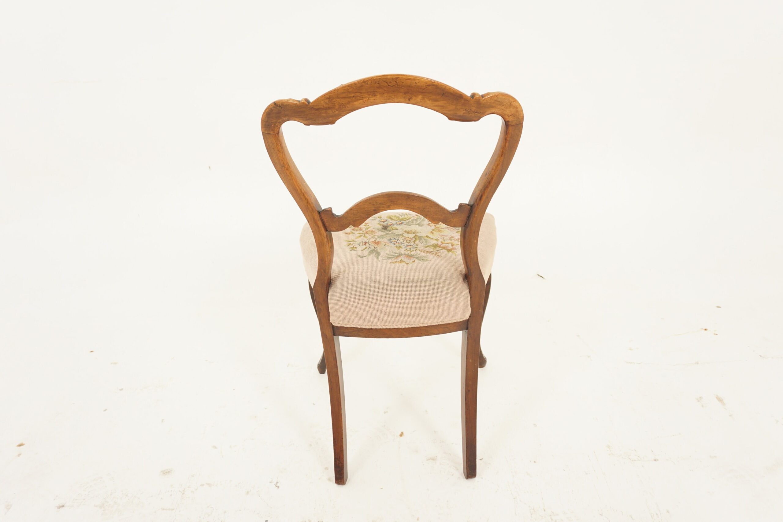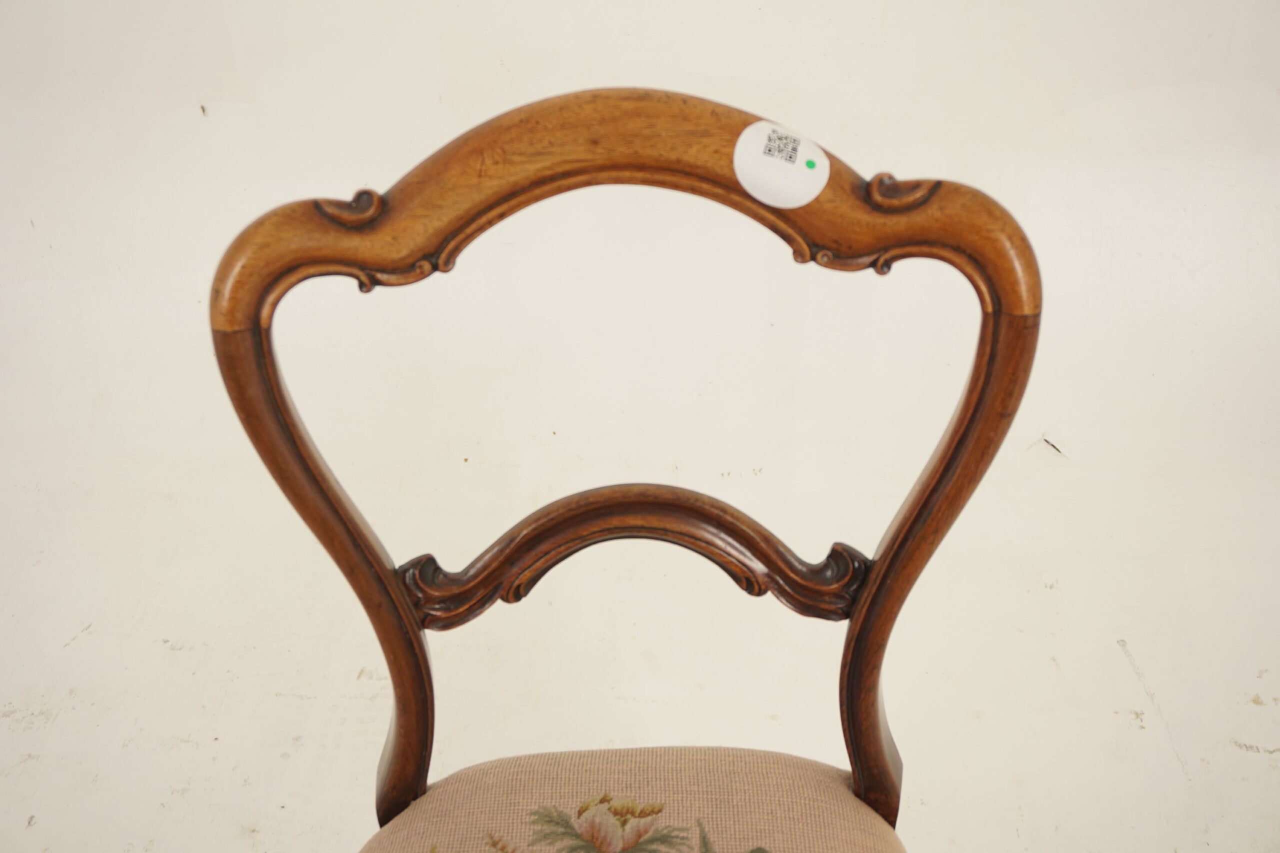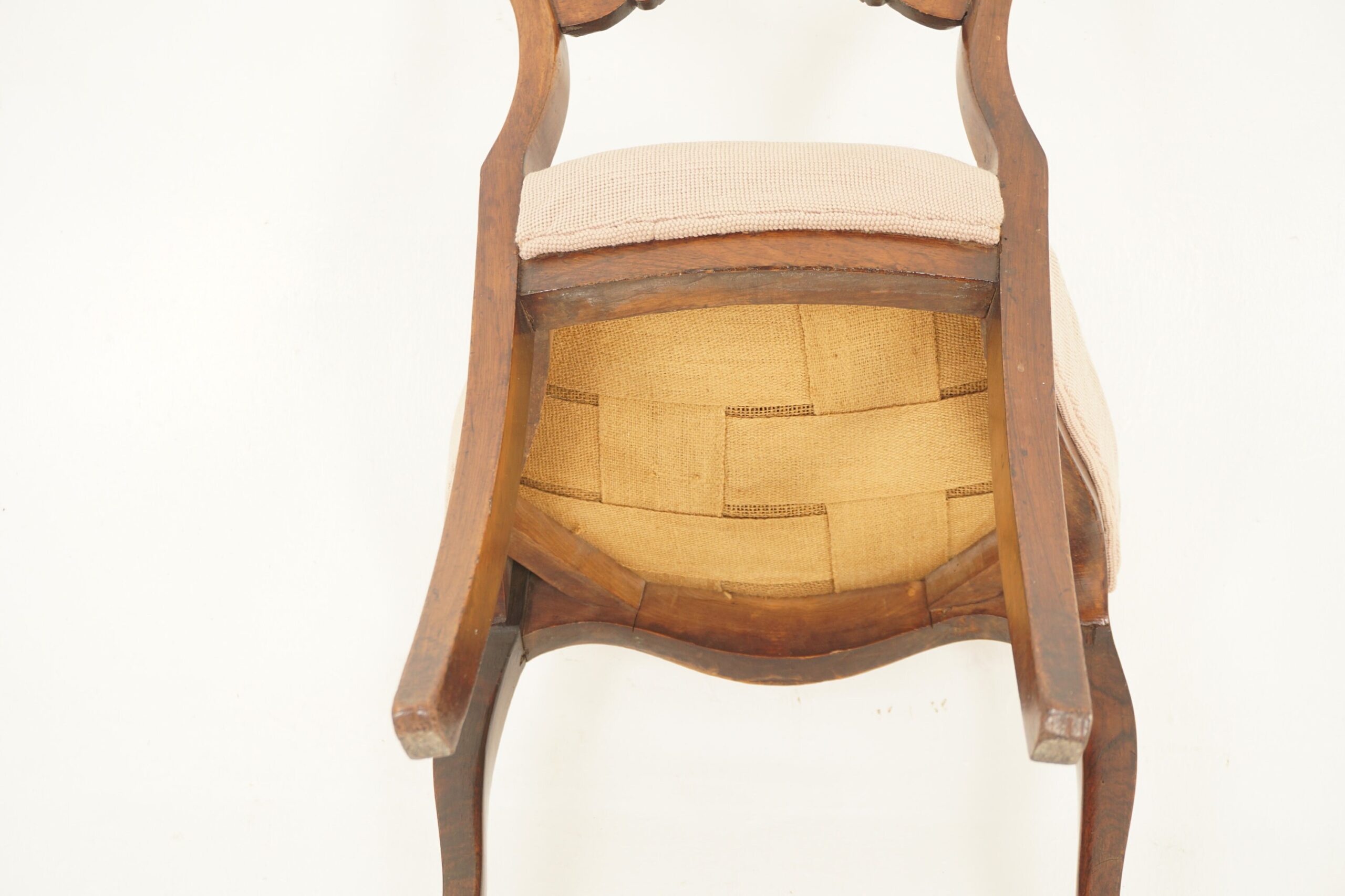 Antique Victorian Carved Walnut Parlor Chair Upholstered Seat, Scotland 1870, F-694