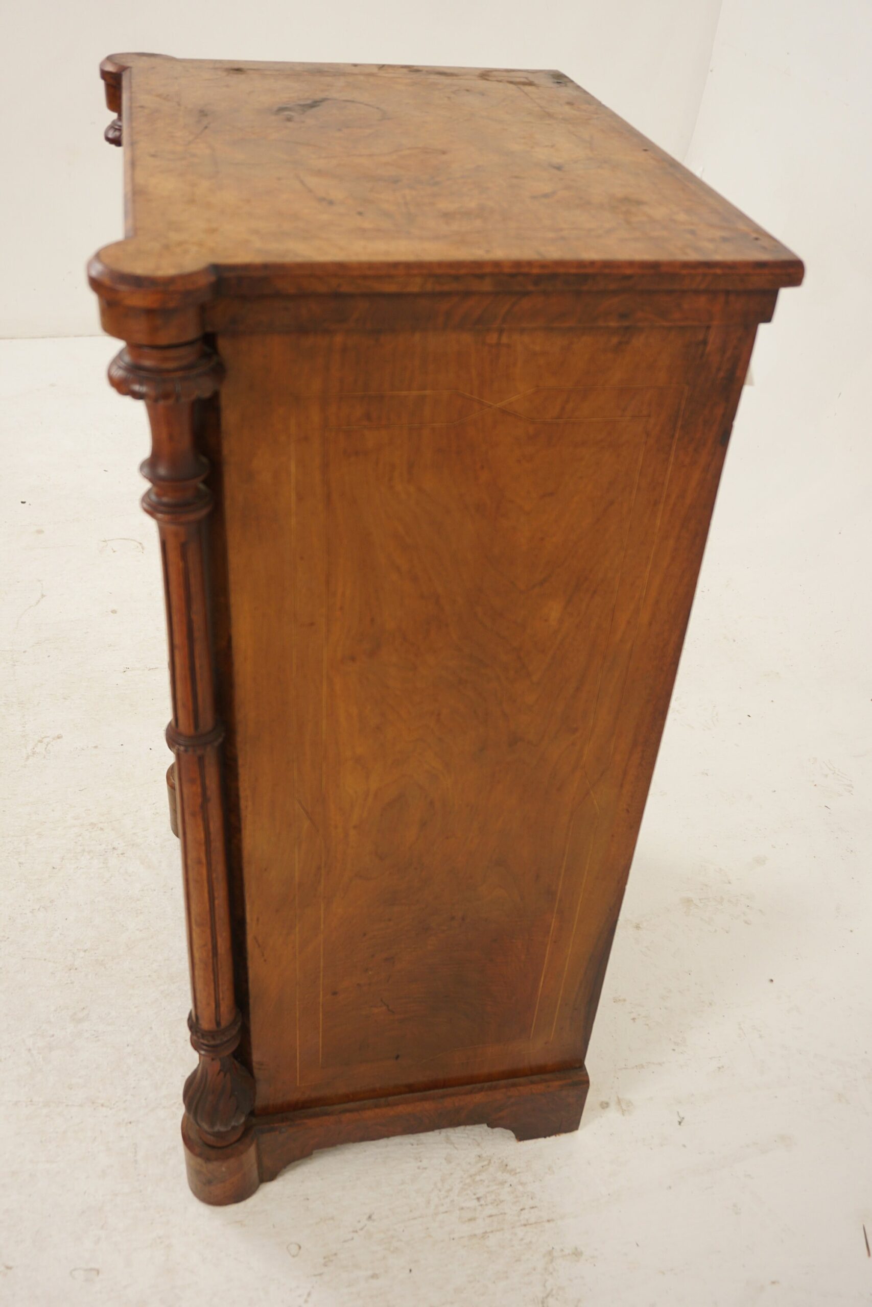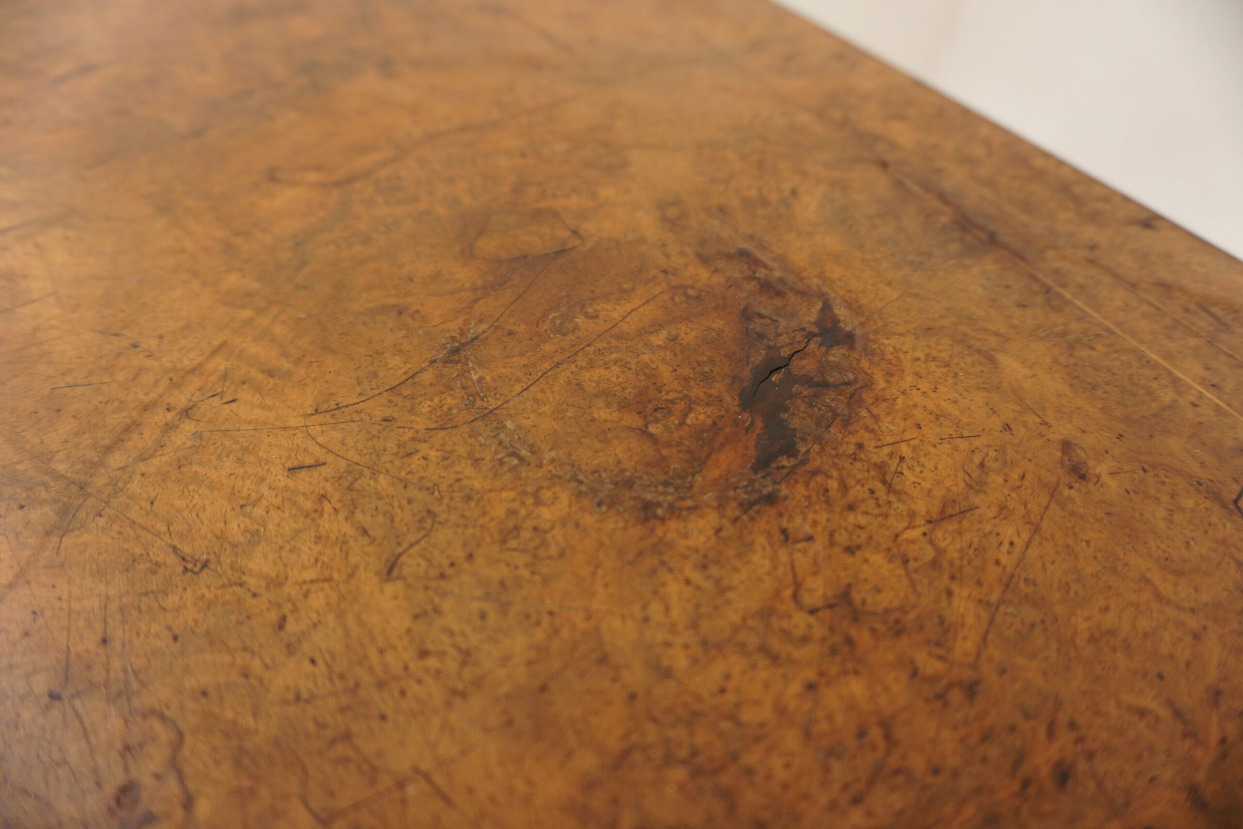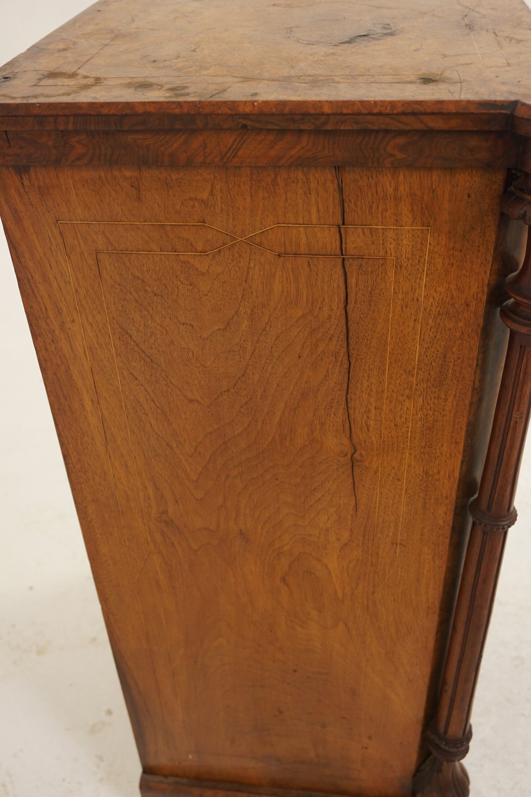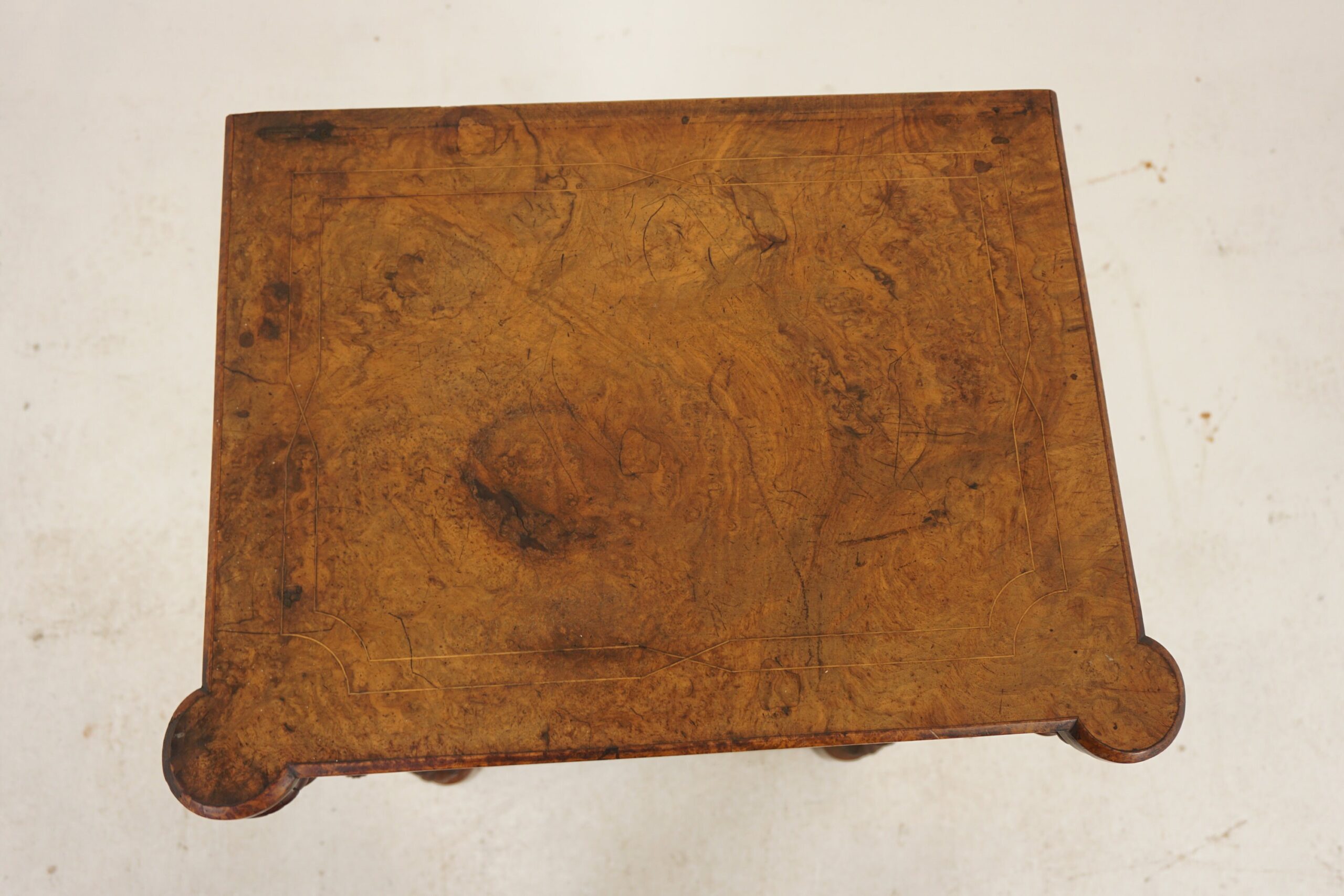 Inlaid burr walnut sides with satinwood stringing