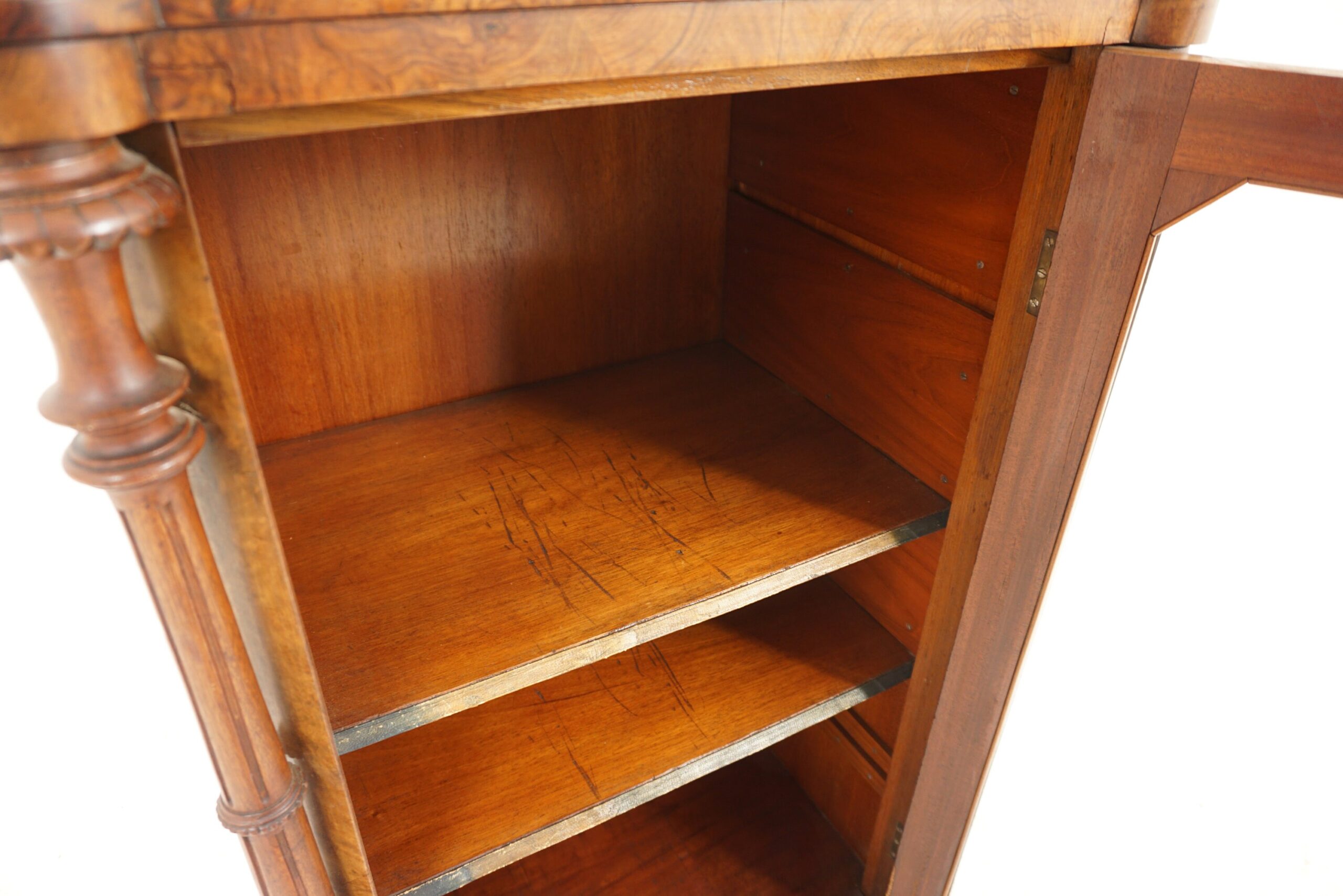 Flanked by carved walnut turned shaped columns