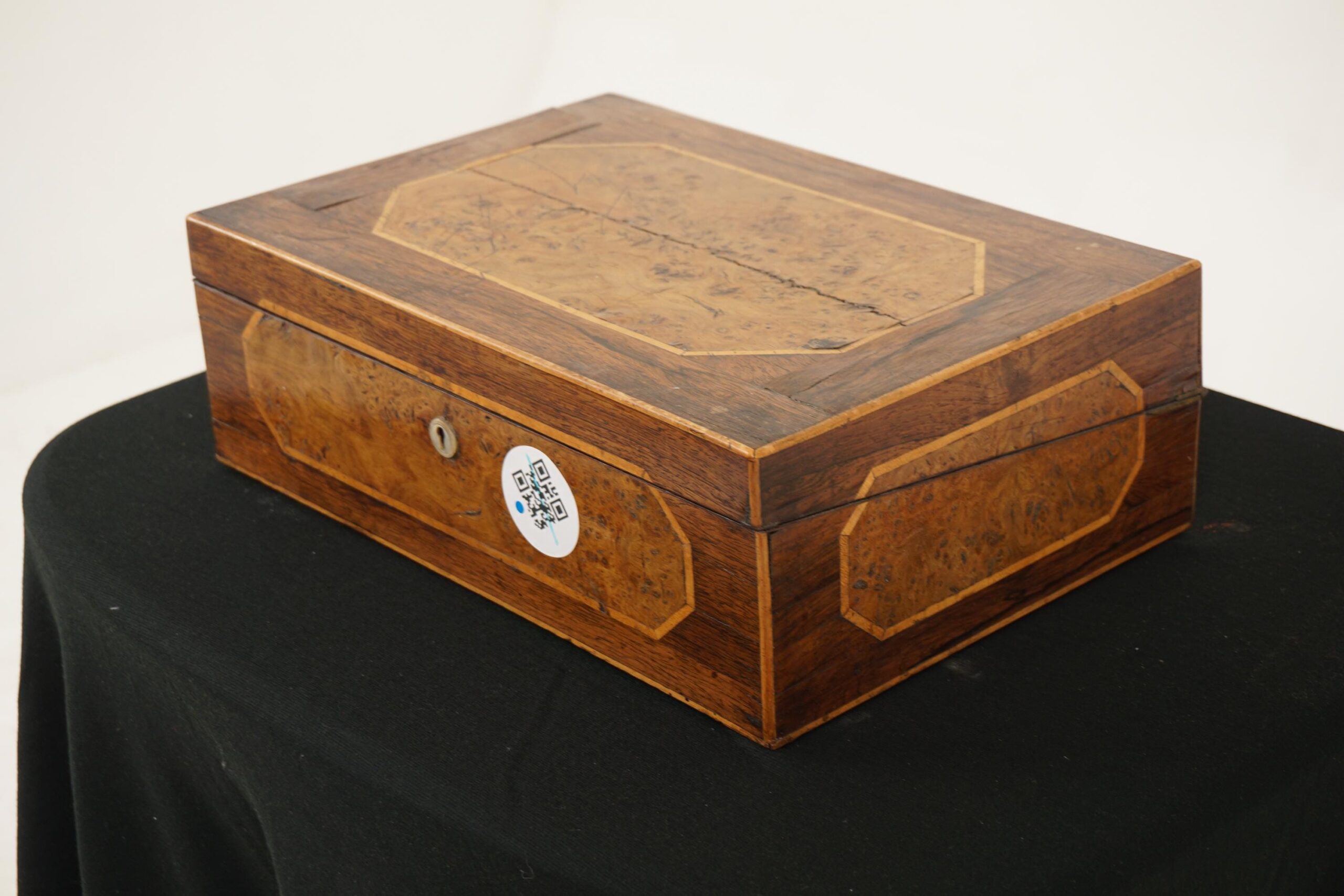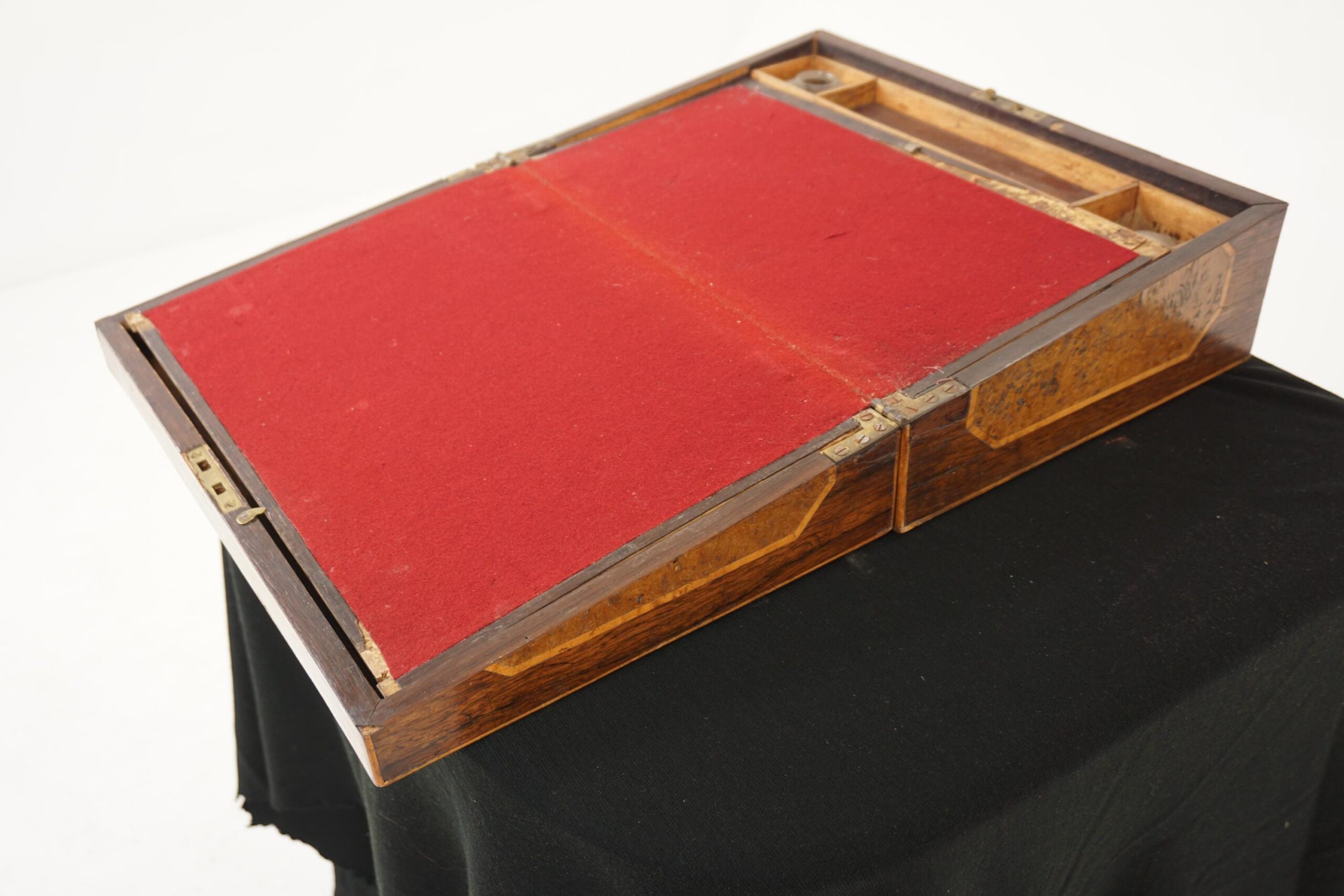 Antique Victorian Inlaid Rosewood with Pollard Oak Writing Box, Scotland 1870, F-170