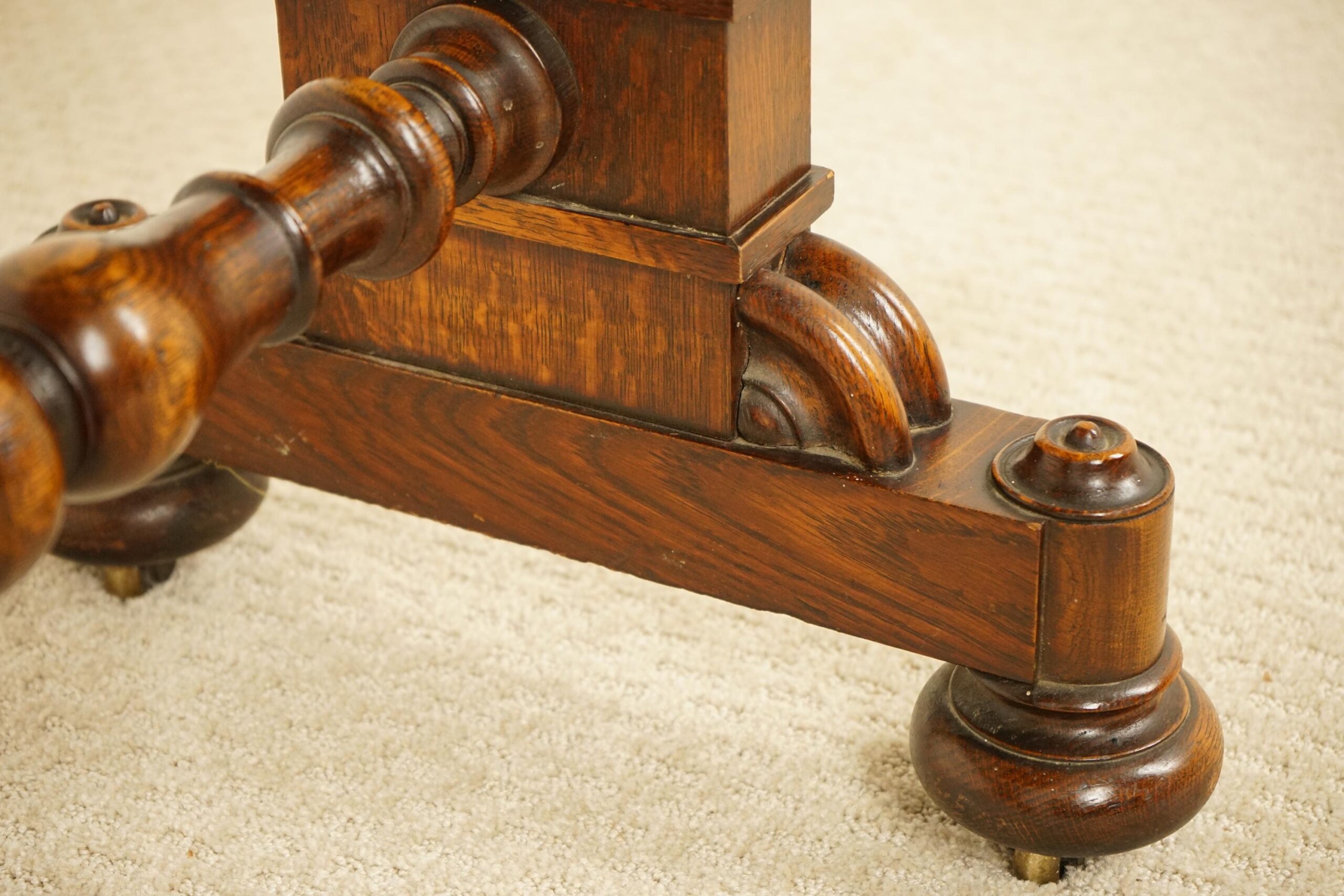 Standing on carved base with bun feet and original brass castors.