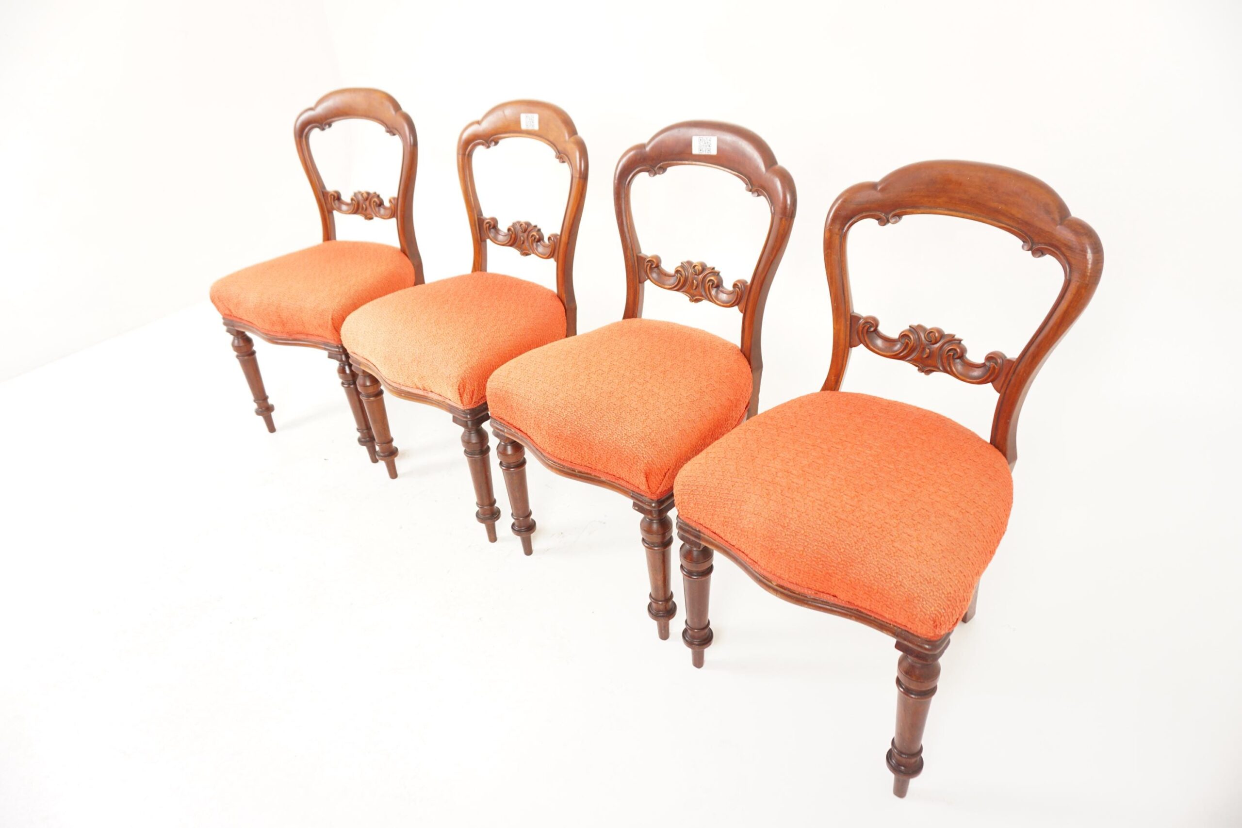 Antique Walnut Chairs, Set of 4 Victorian Balloon Back Dining Chairs, Antique Furniture, Scotland 1880, F-952