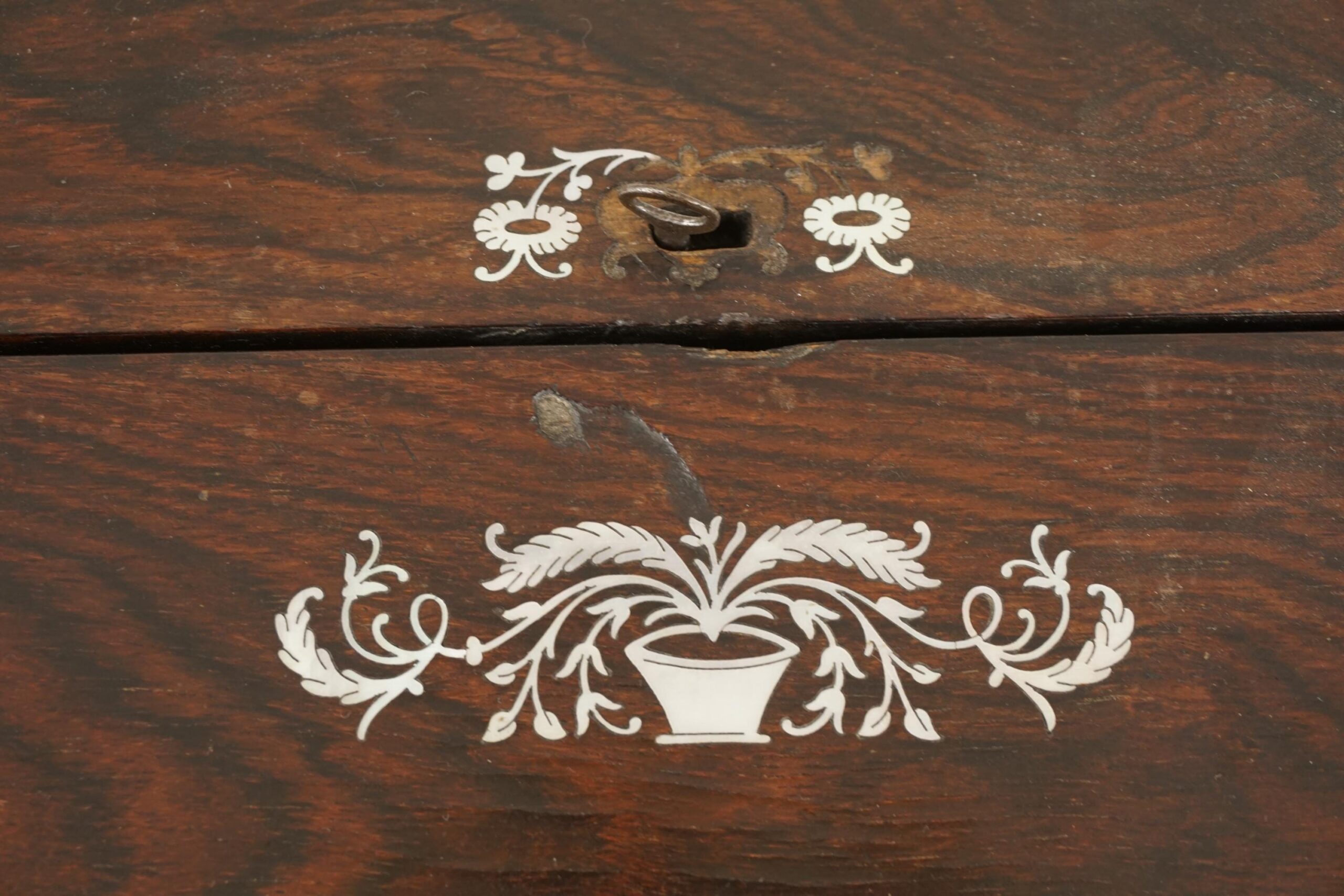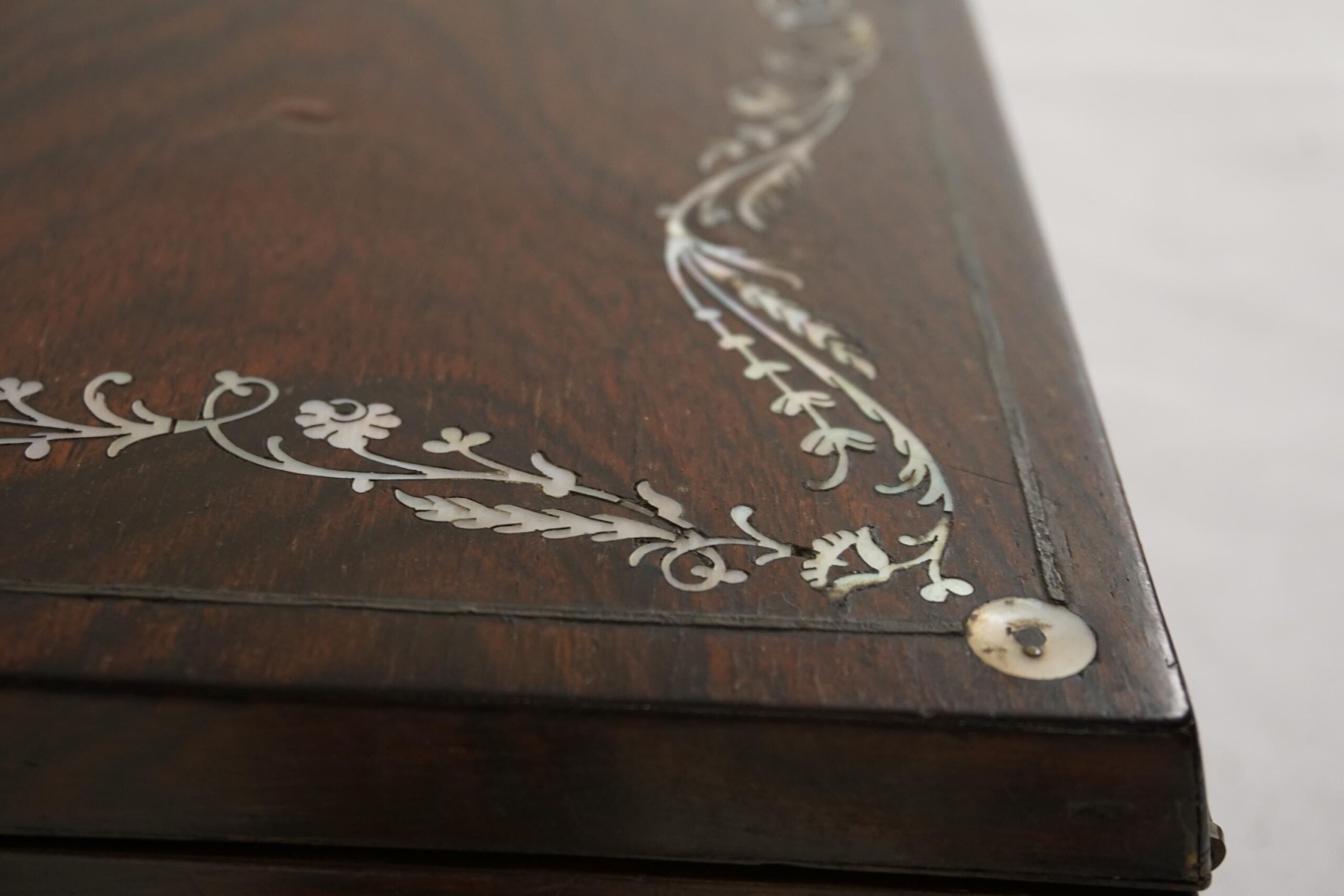 Antique Victorian Writing Slope, Wood And Mother Of Pearl, Scotland 1870, F-613