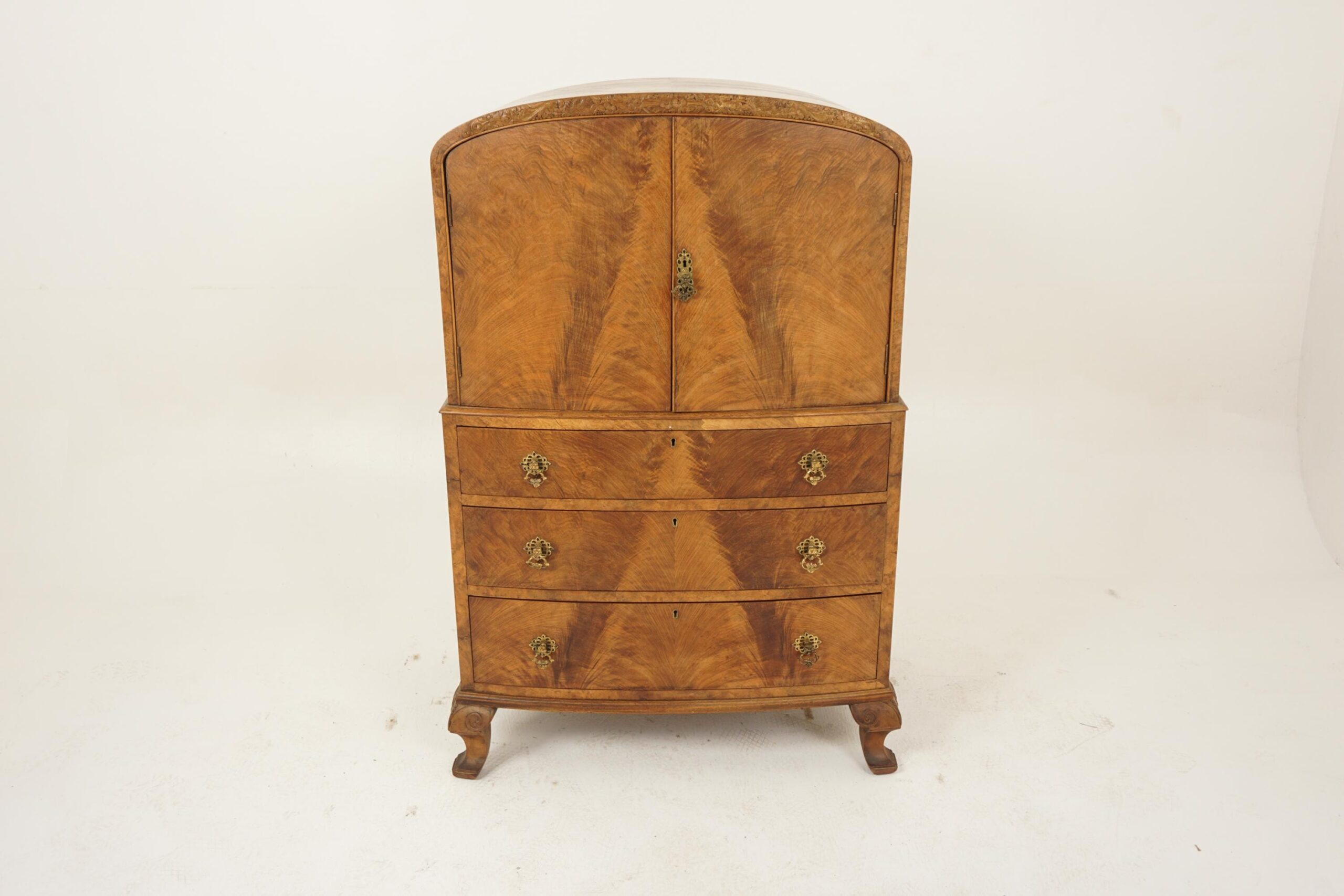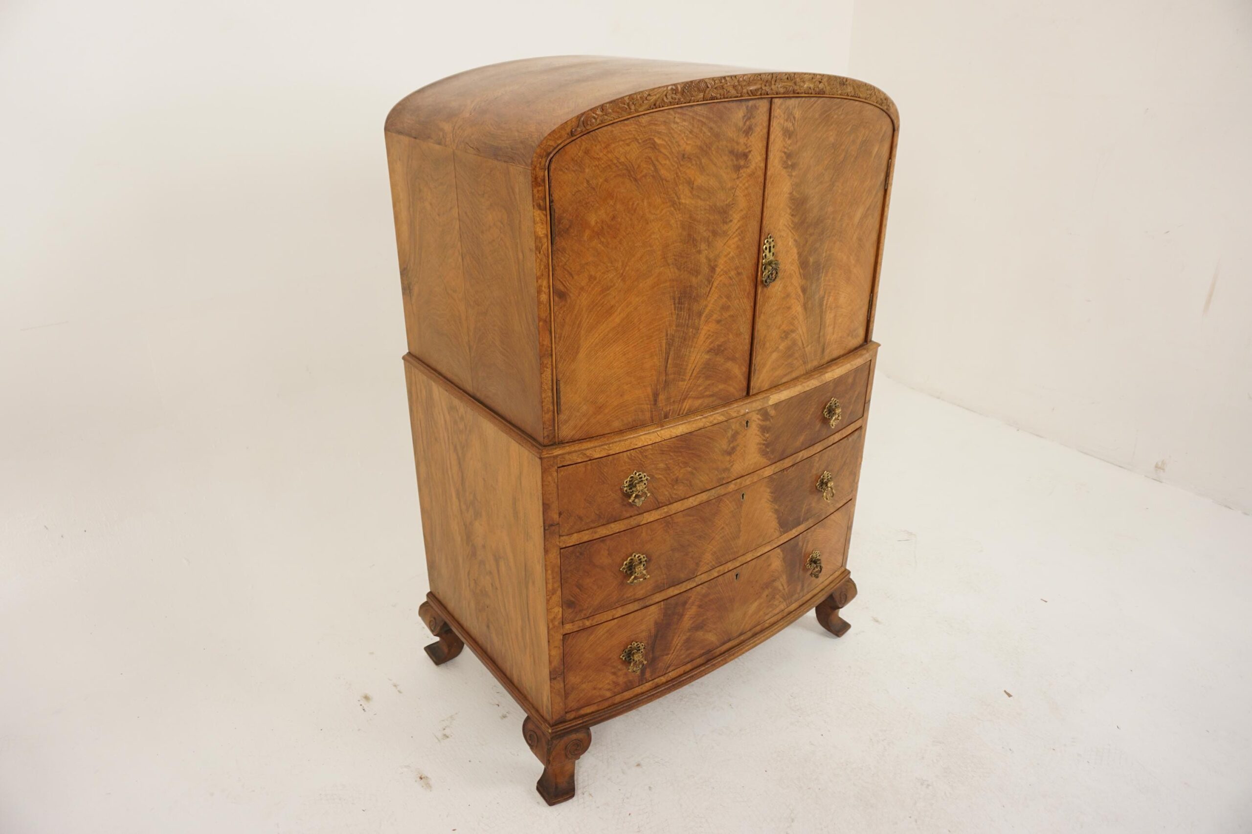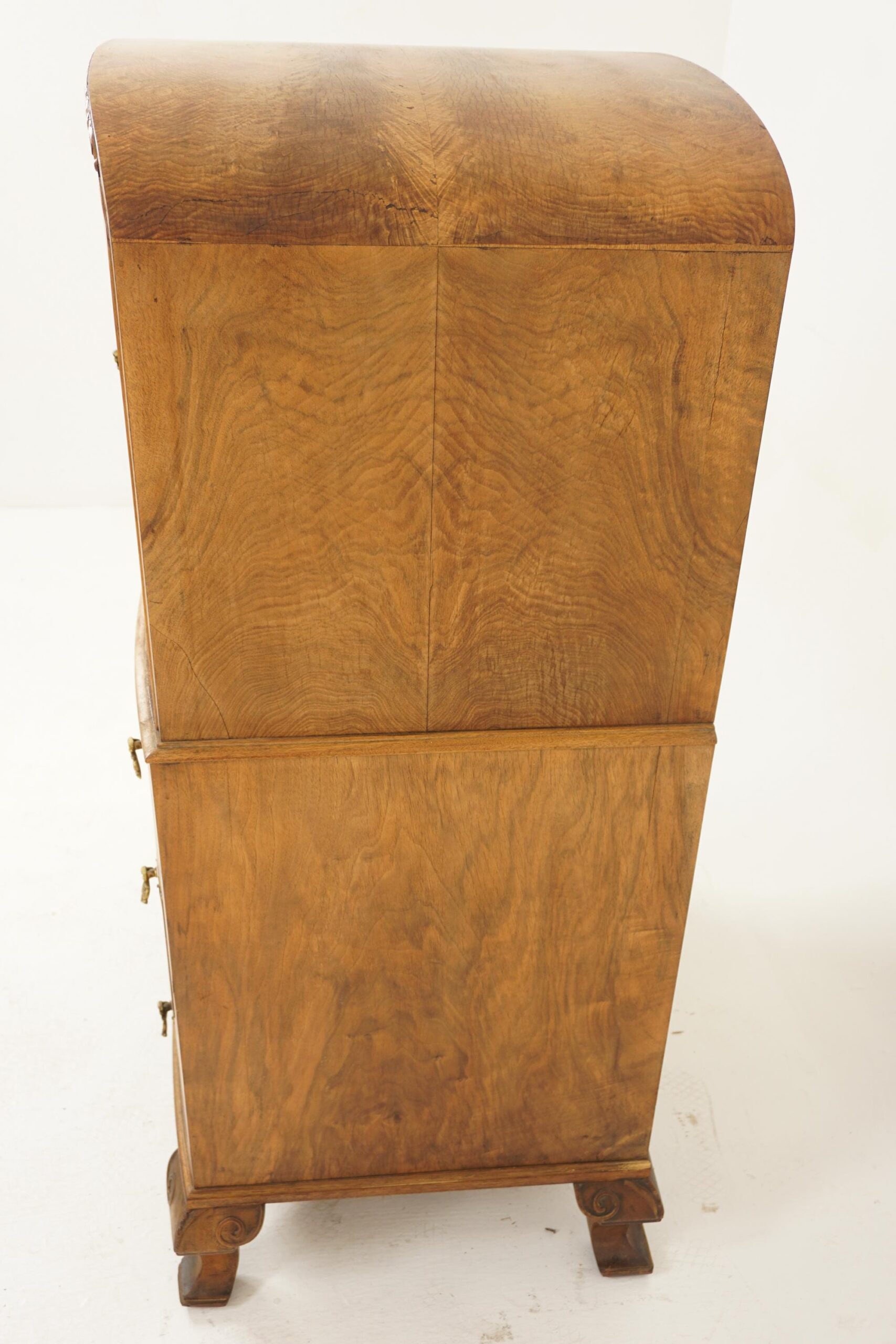 Art Deco Burr Walnut Two Door Tall Boy , Chest of Drawers Dome Top Scotland 1930 F-1216