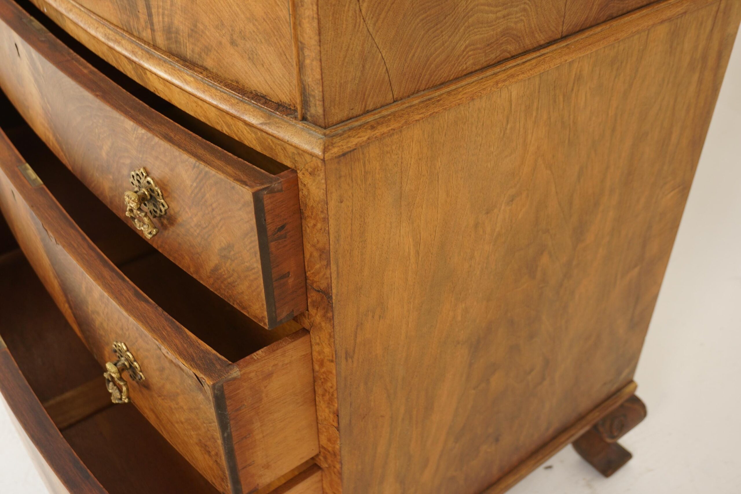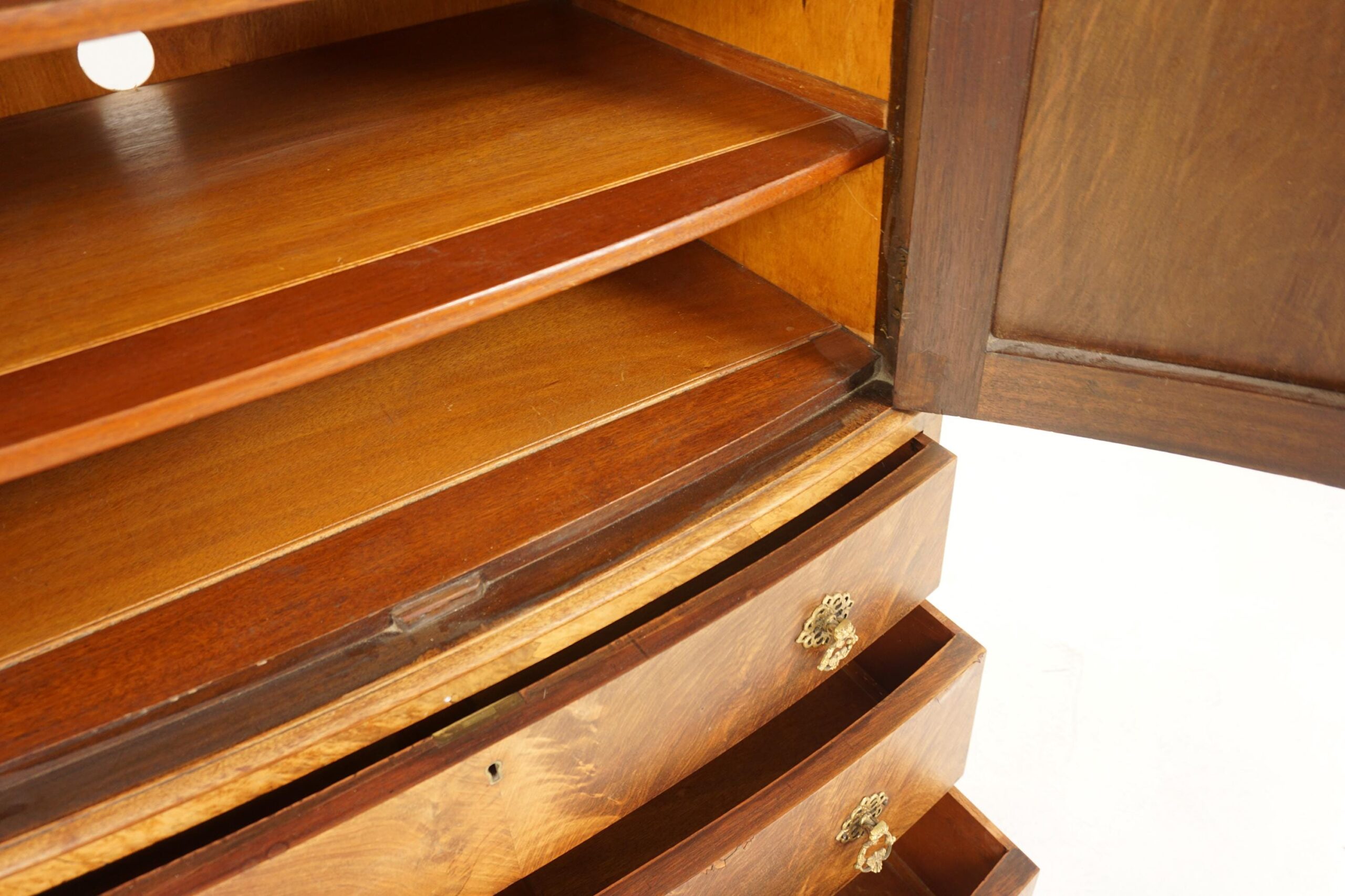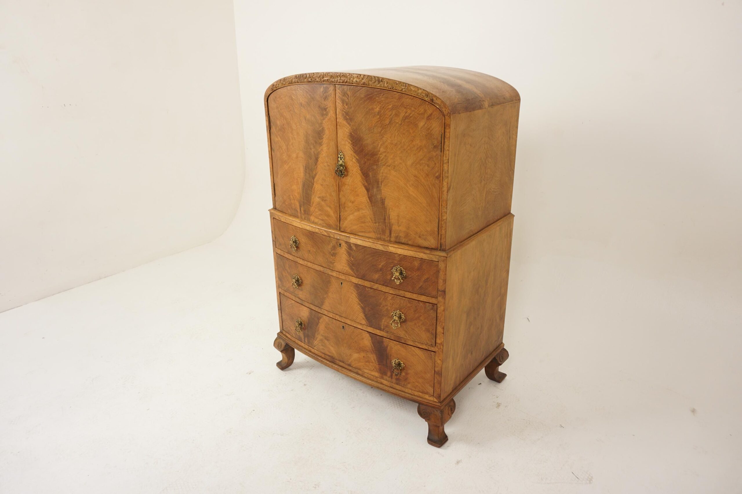 Art Deco Burr Walnut Two Door Tall Boy , Chest of Drawers Dome Top Scotland 1930 F-1216