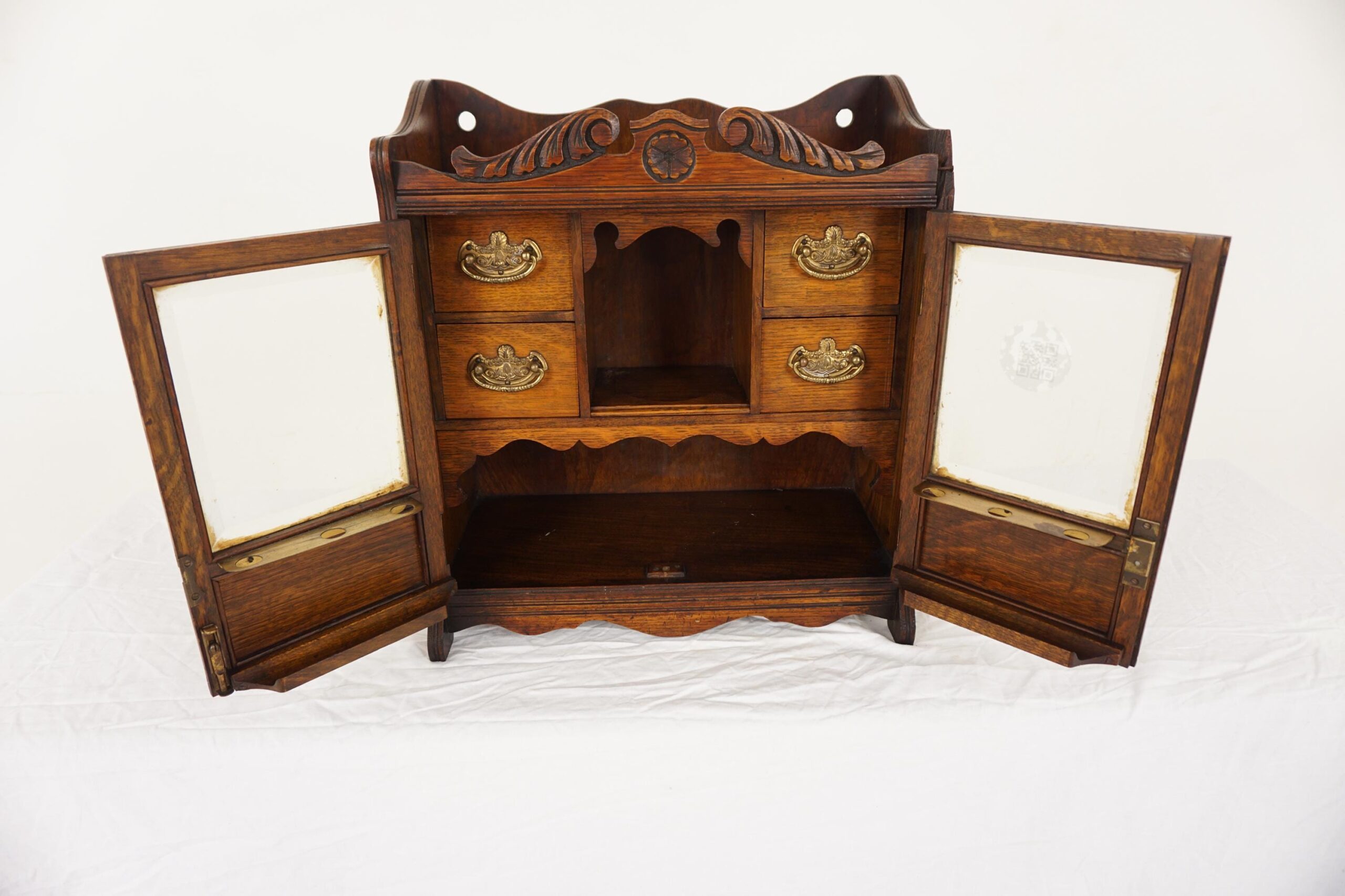 Arts & Crafts Oak Smokers Cabinet, Wall Cabinet, Scotland 1900, F-761