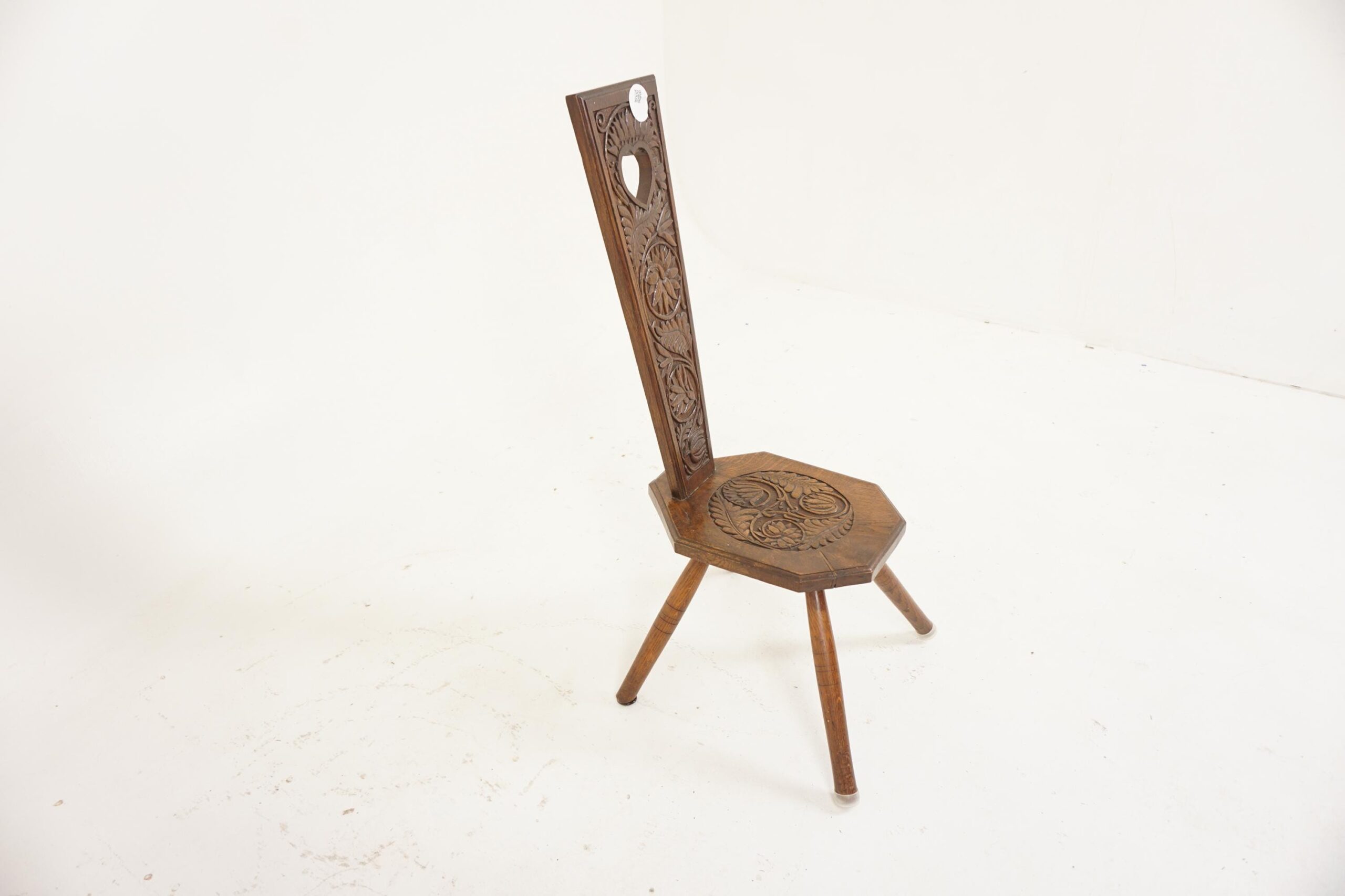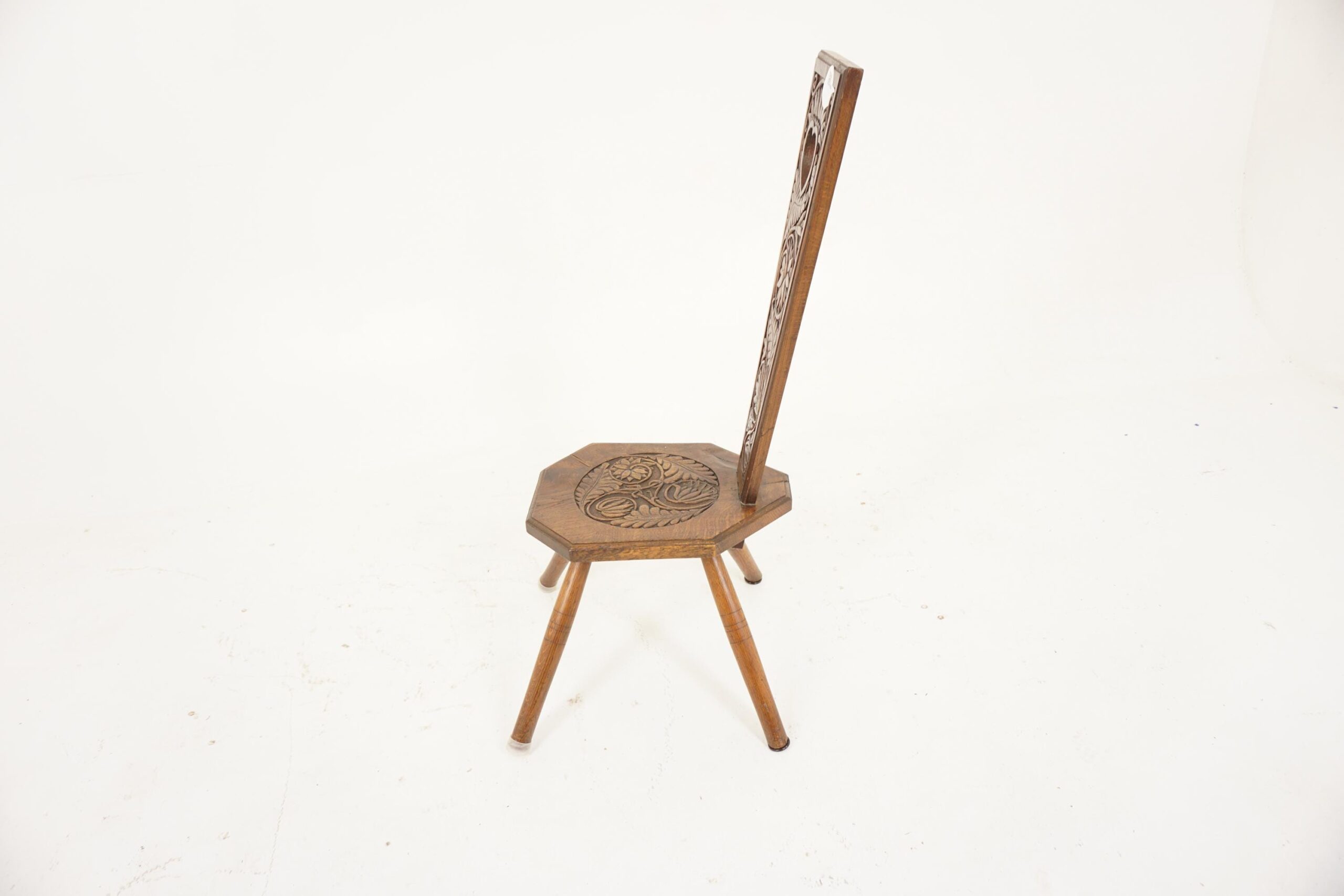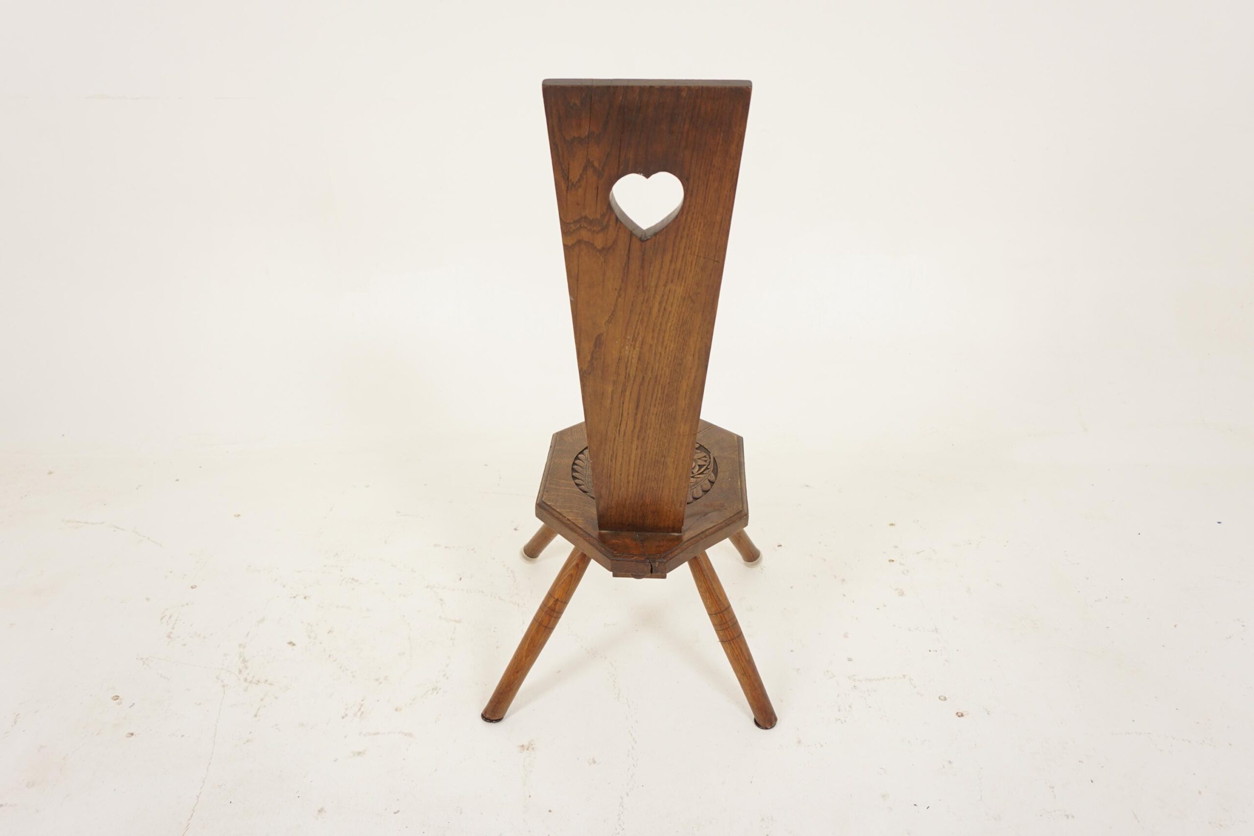 Large Antique Carved Oak Spinning Chair, Hall Chair, Scotland 1880, F-696
