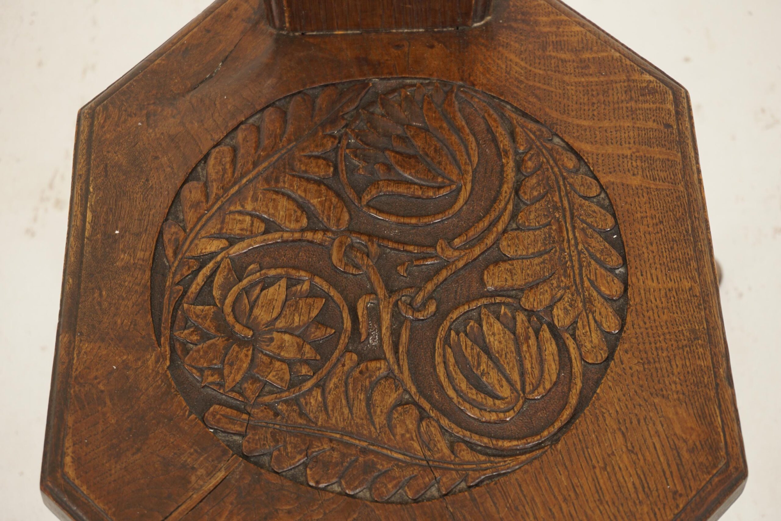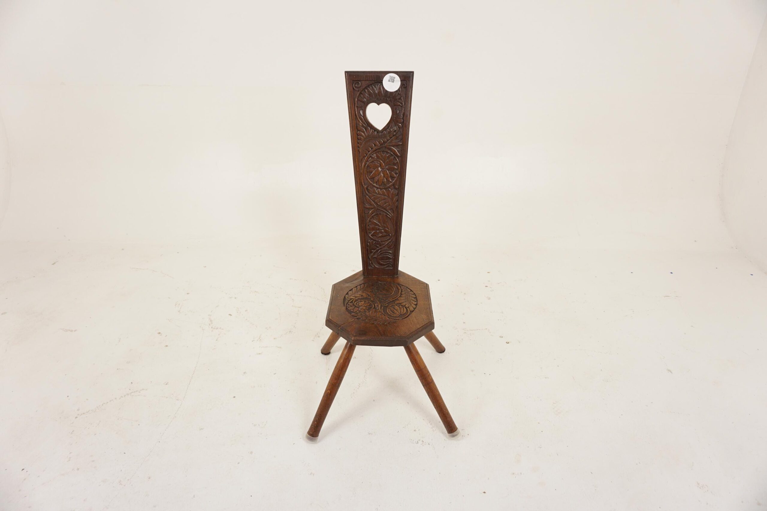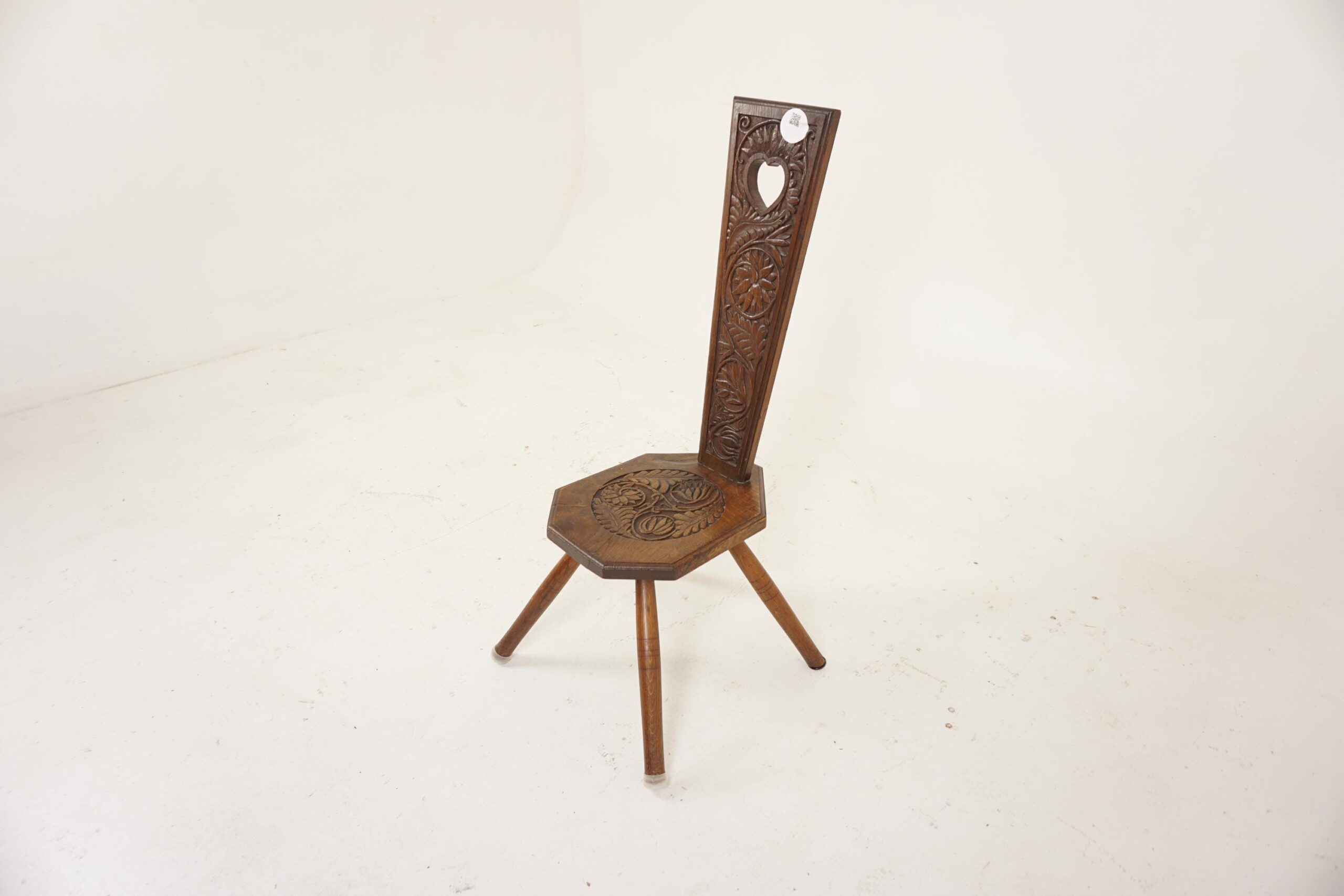 Large Antique Carved Oak Spinning Chair, Hall Chair, Scotland 1880, F-696