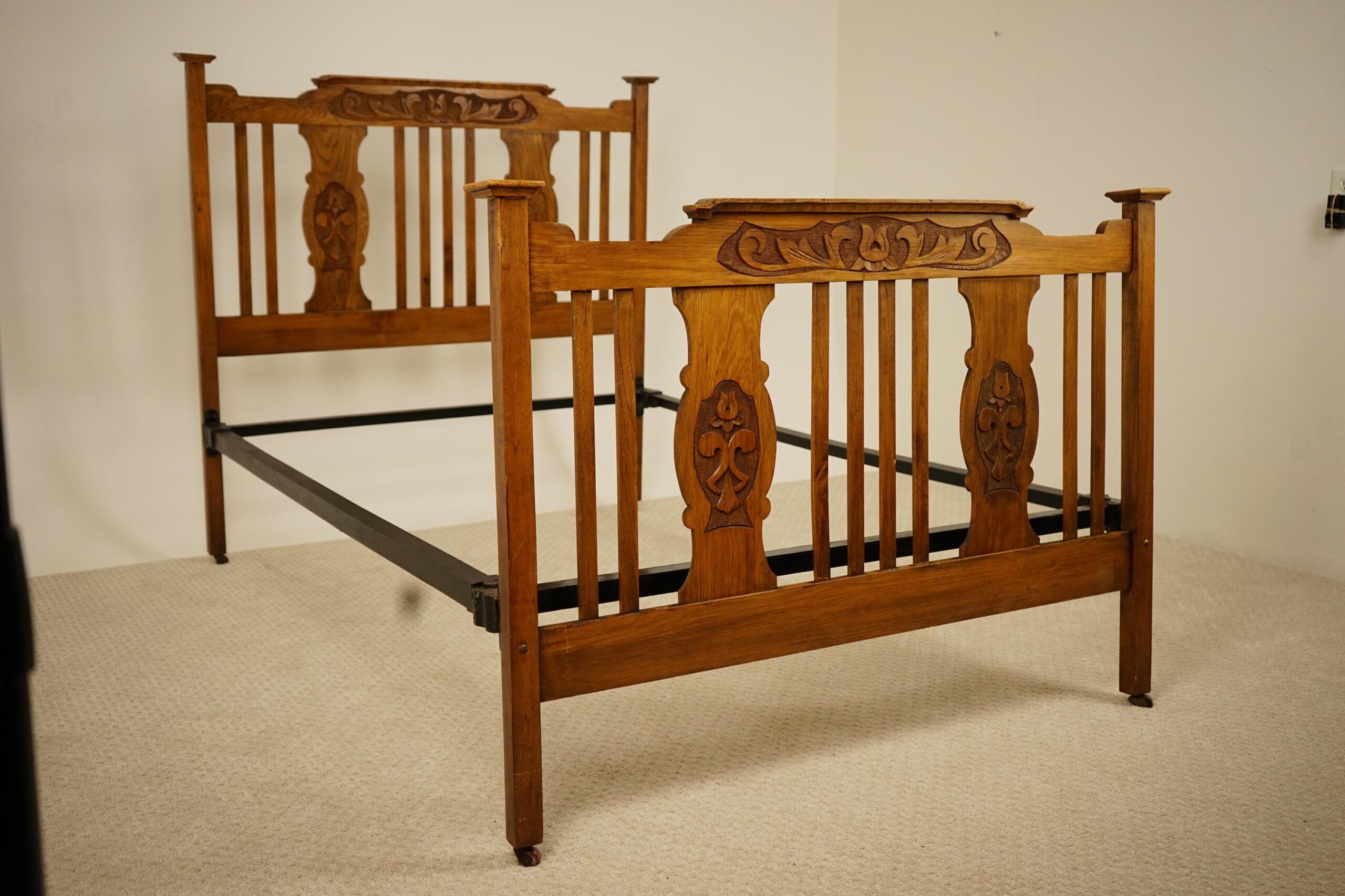 With decorative carved head and foot boards