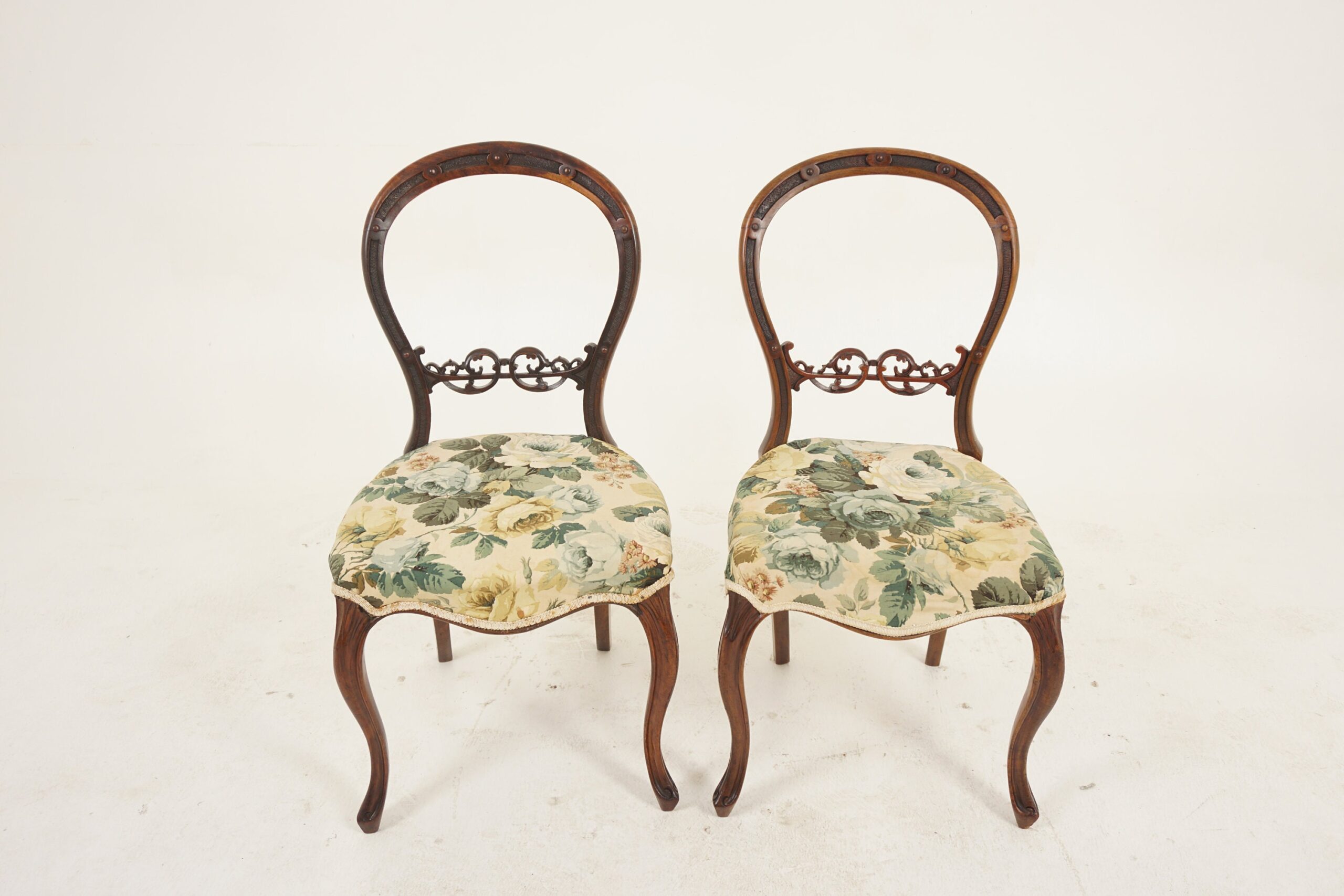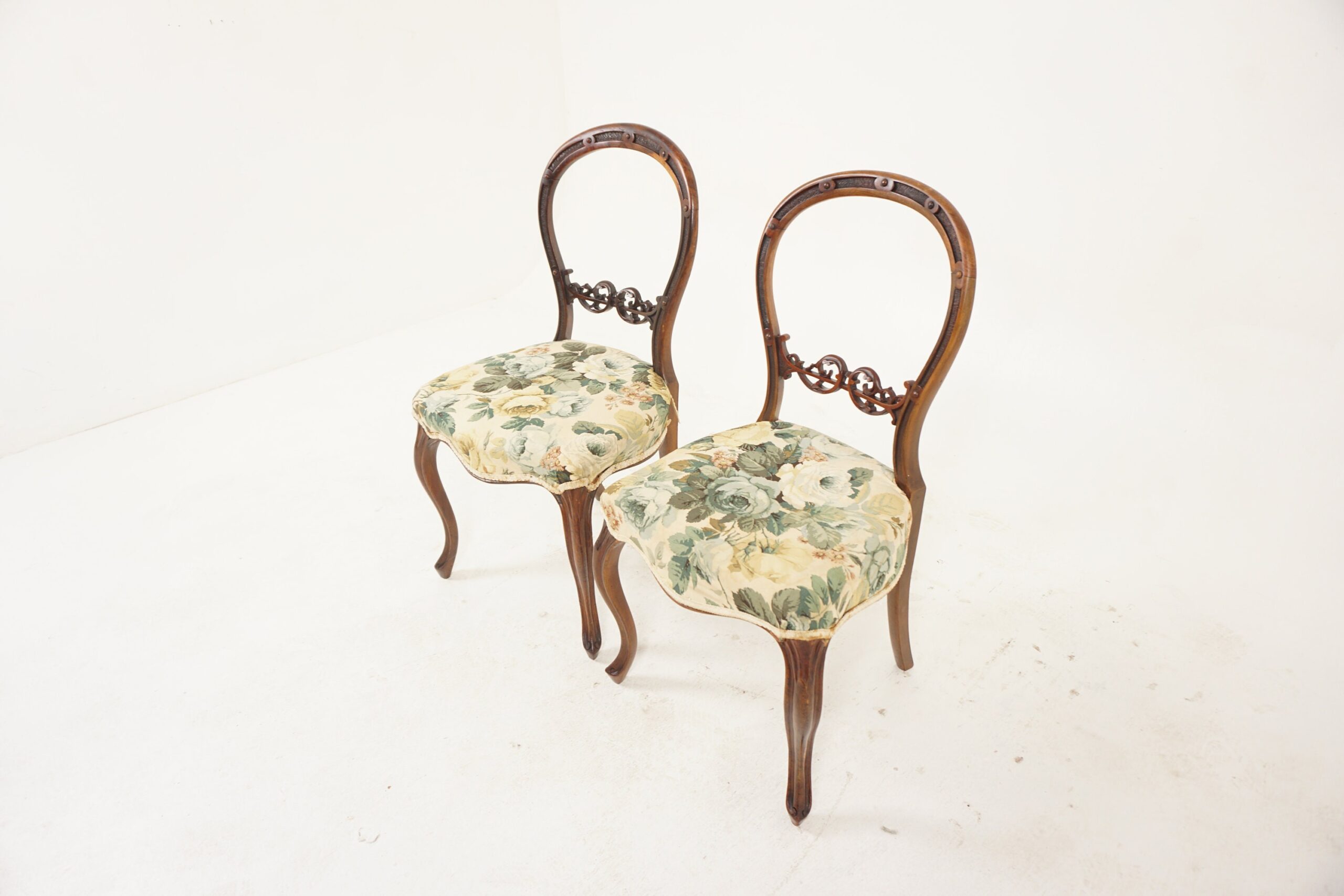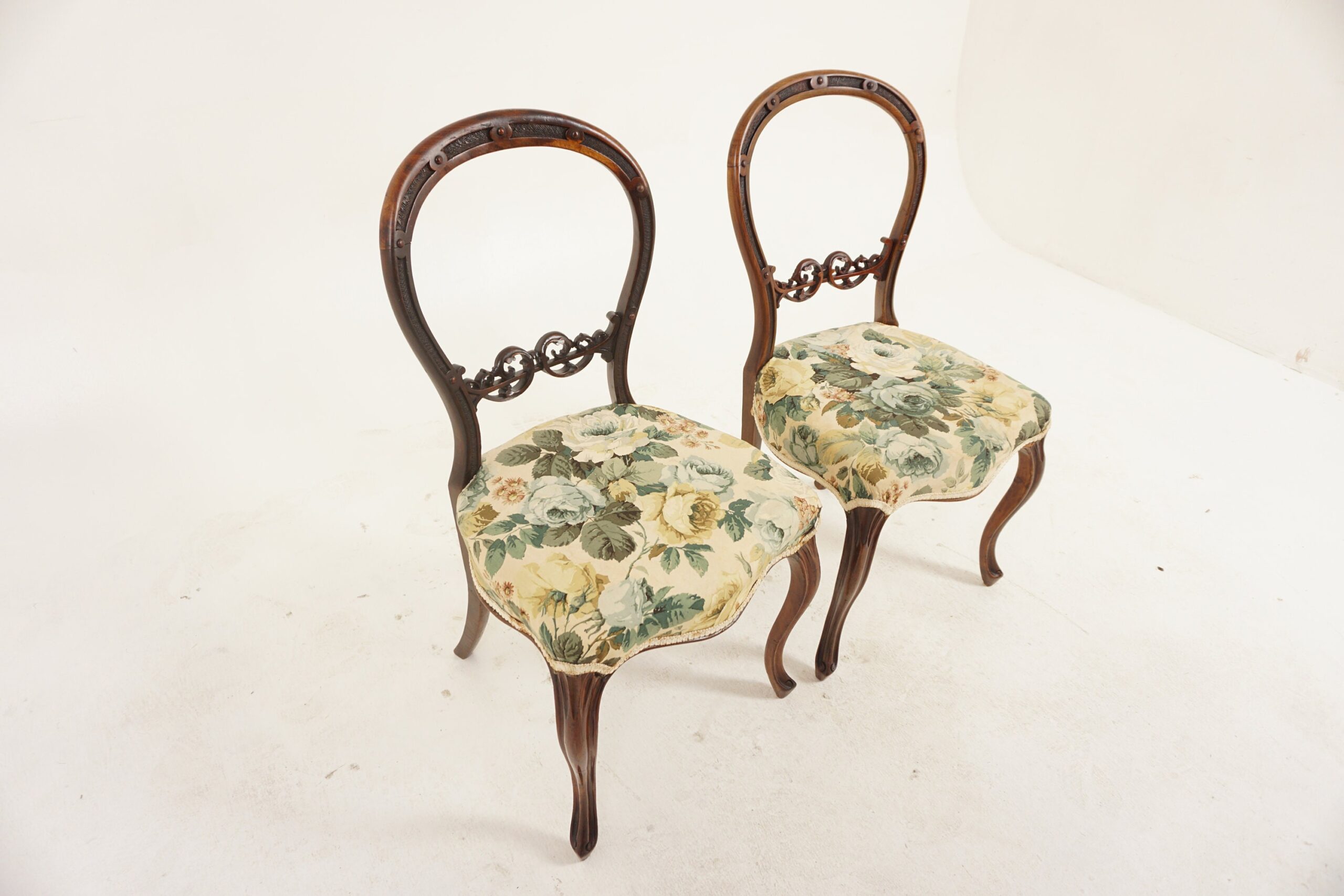 Pair of Victorian Carved Walnut Balloon Back Chairs, Scotland 1880 F-1164
