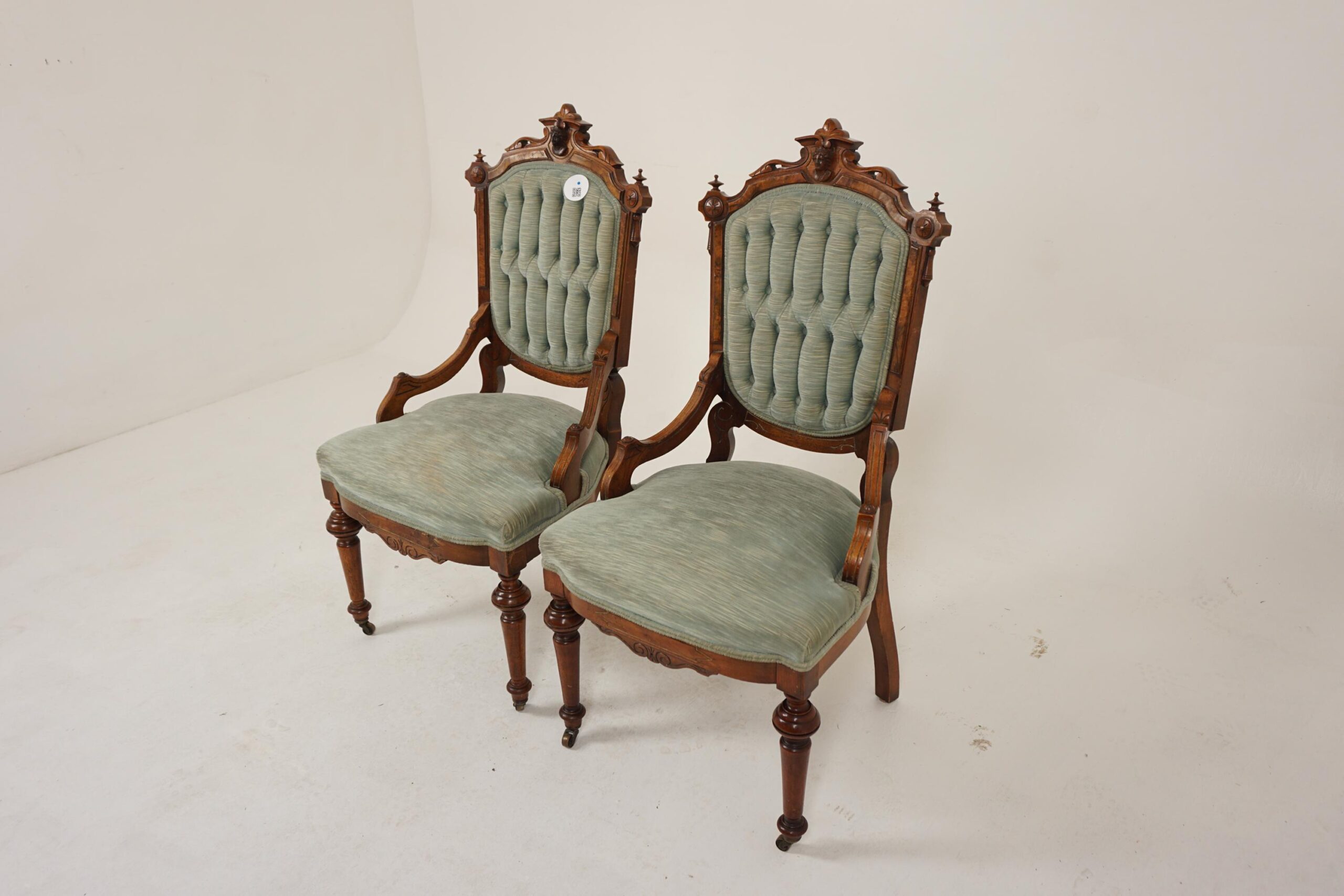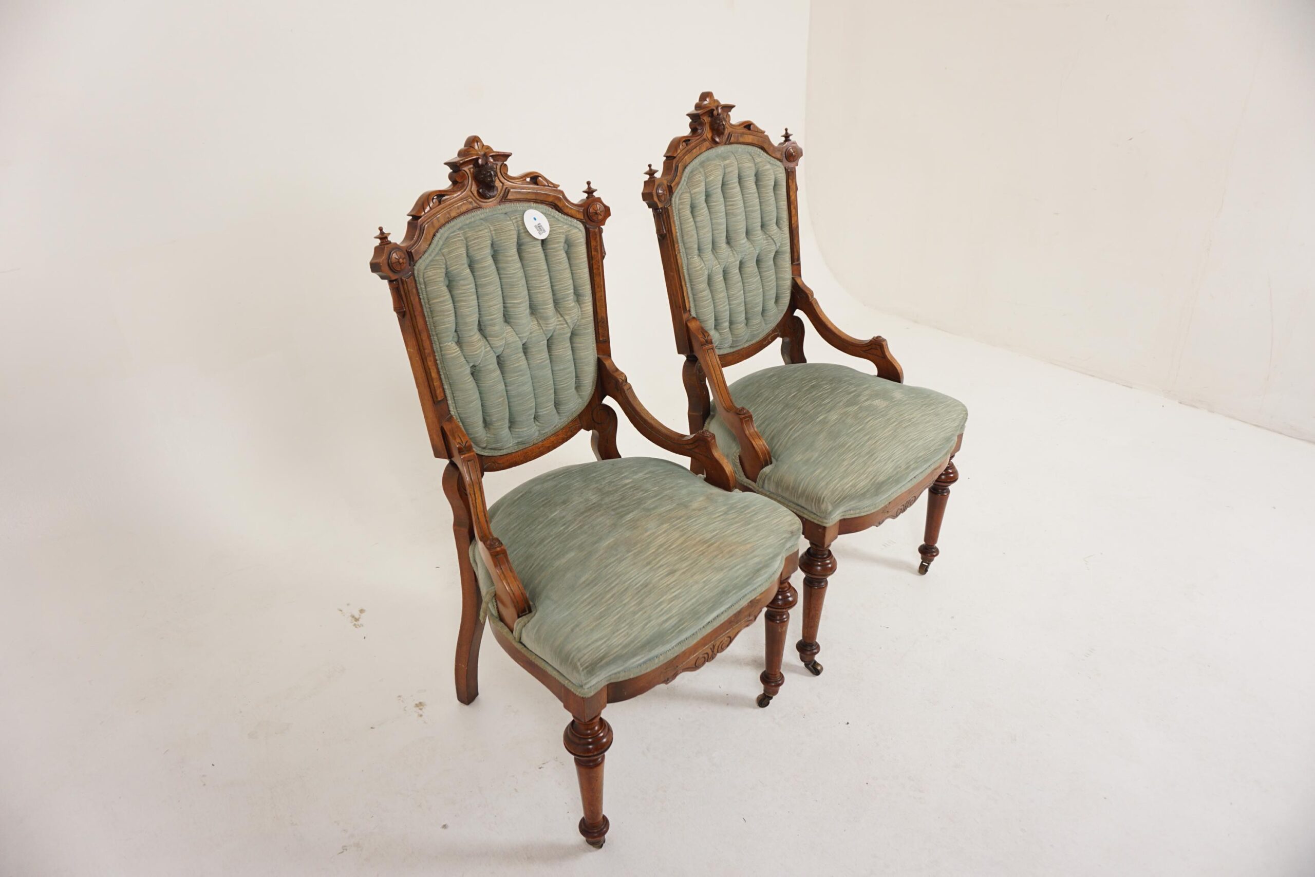 Pair of Victorian Walnut Upholstered East Lake Parlour Chairs, Side Chairs, American 1880, F-911