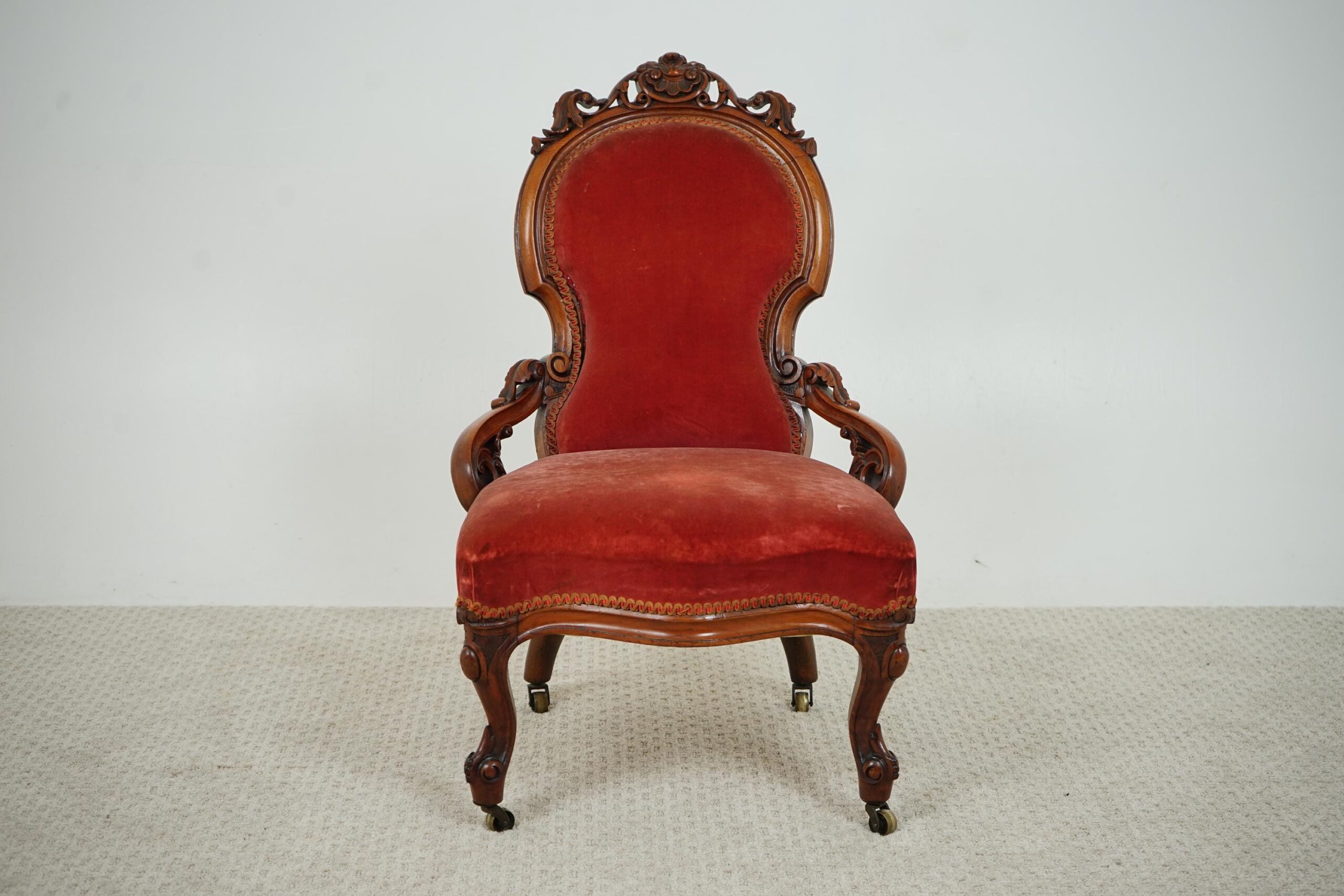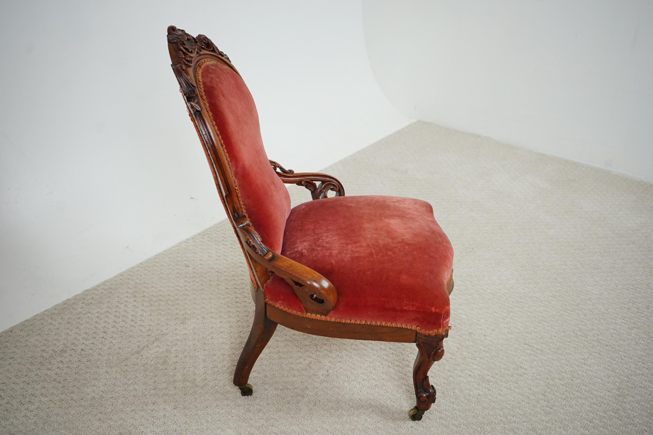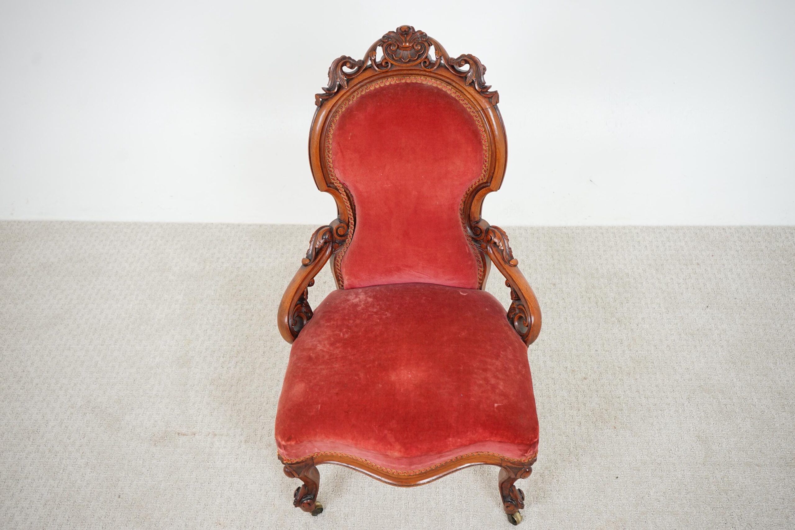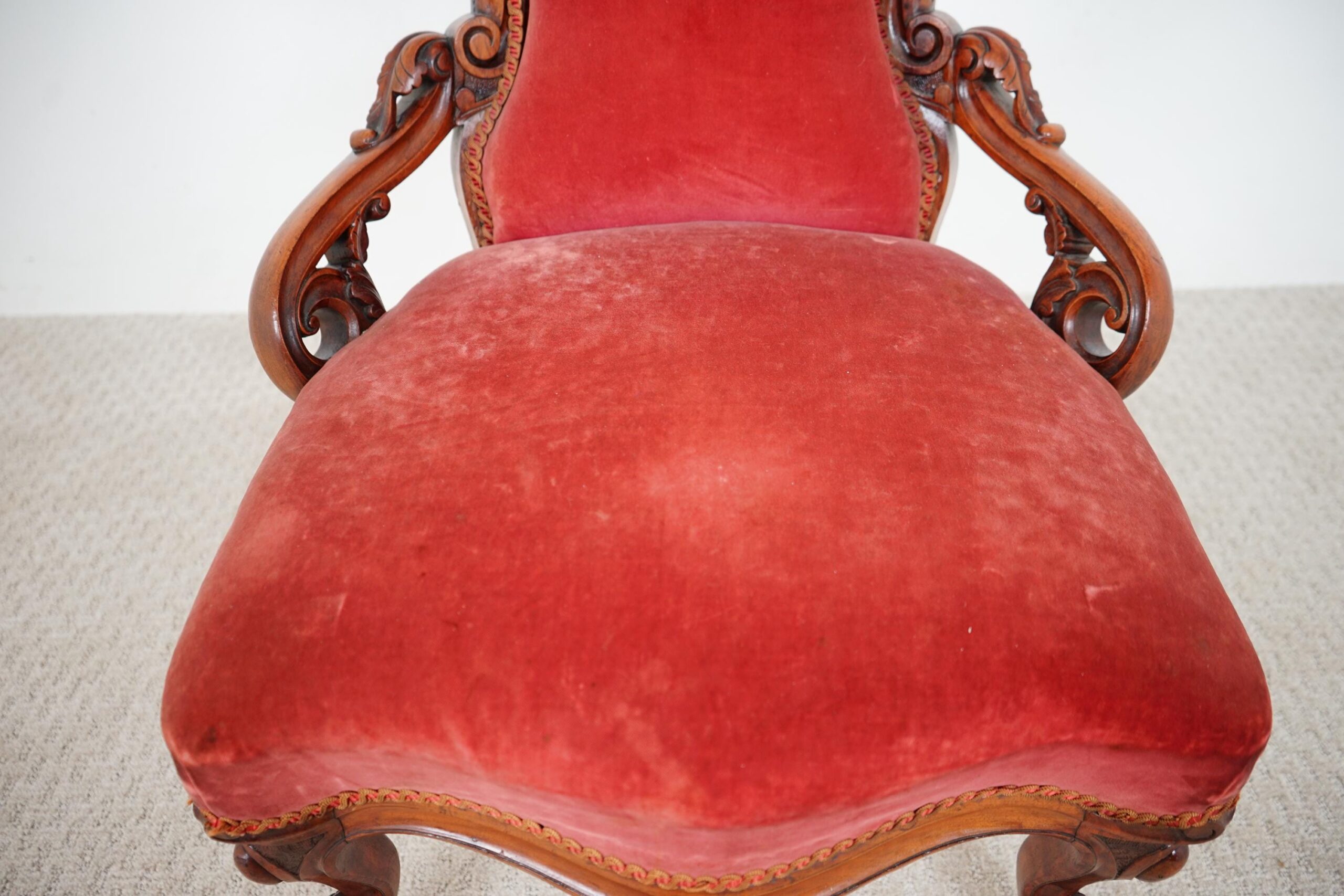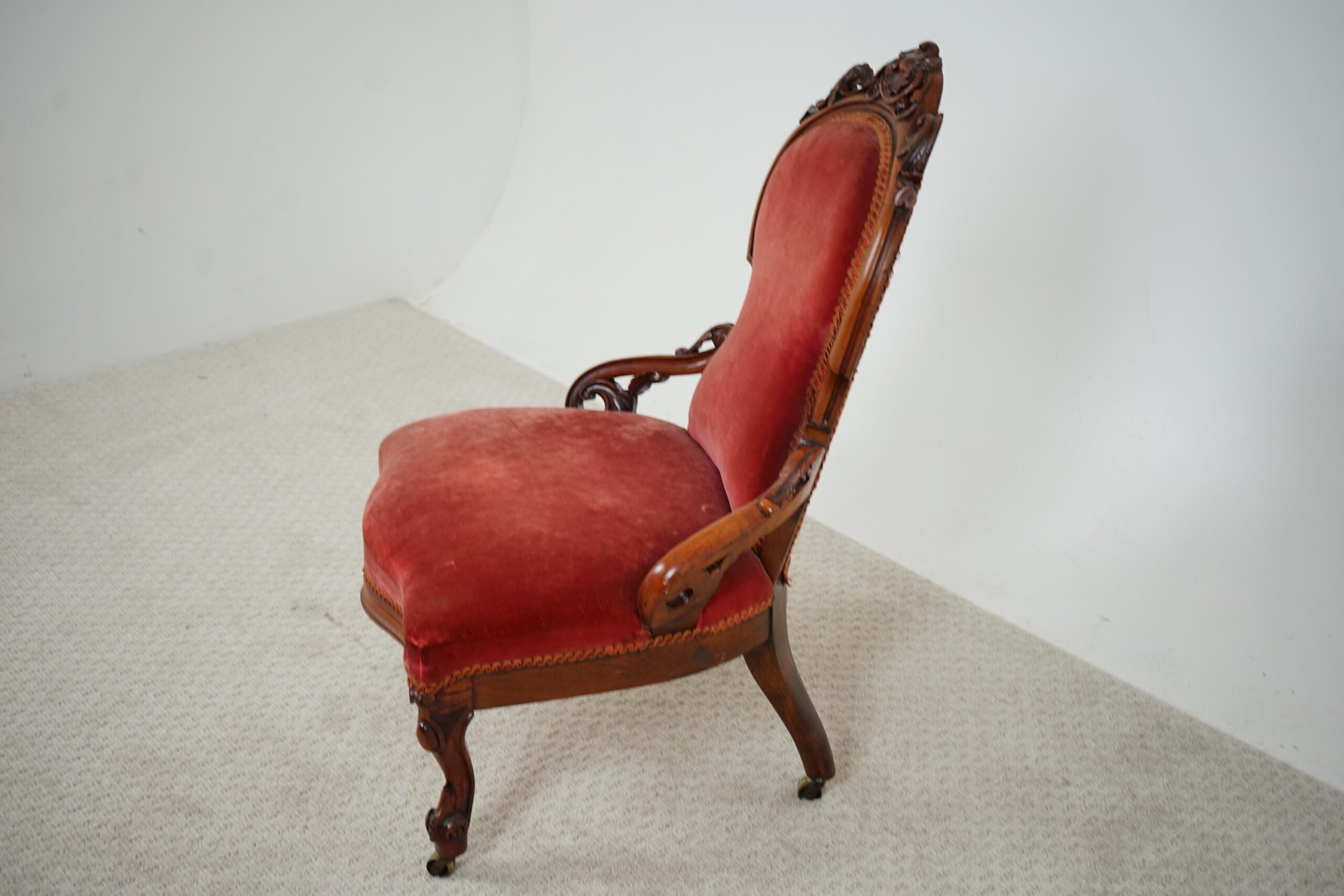 Quality Antique Carved Walnut Slipper, Nursing Chair Scotland 1870 F-1601