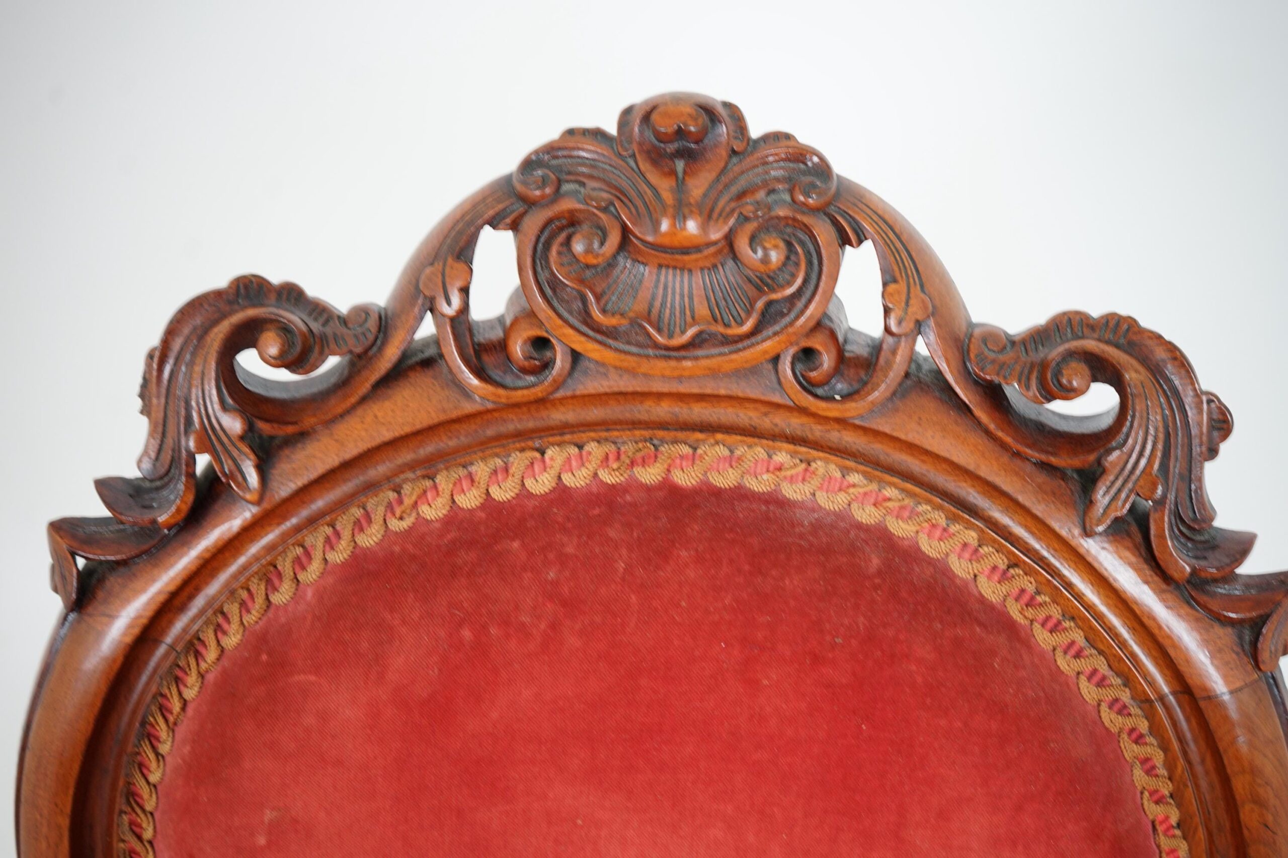 The walnut frame displays good color with nice carved detail and has warm patina