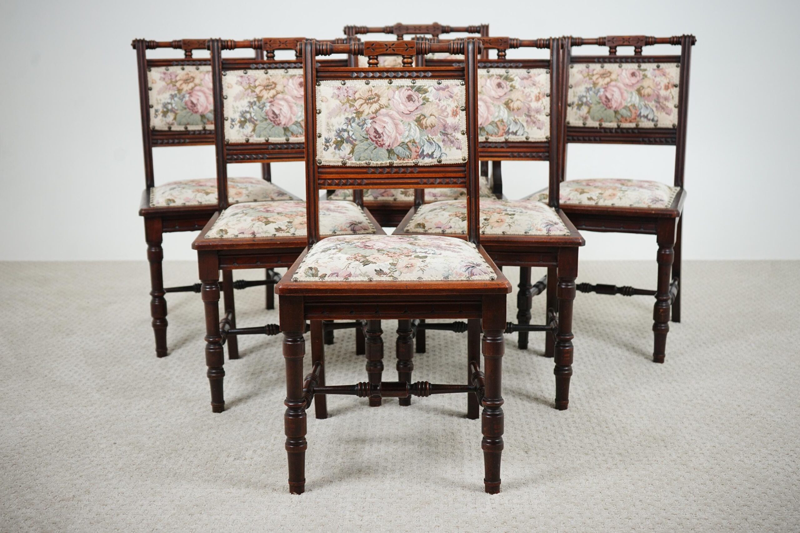 Set of 6 Antique Victorian Walnut East lake Dining Chairs – American 1880 F-1571B